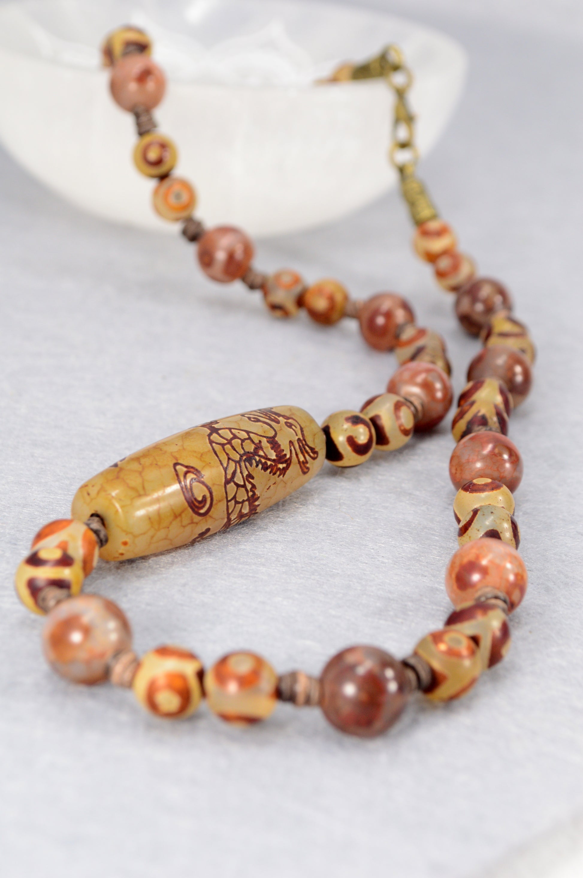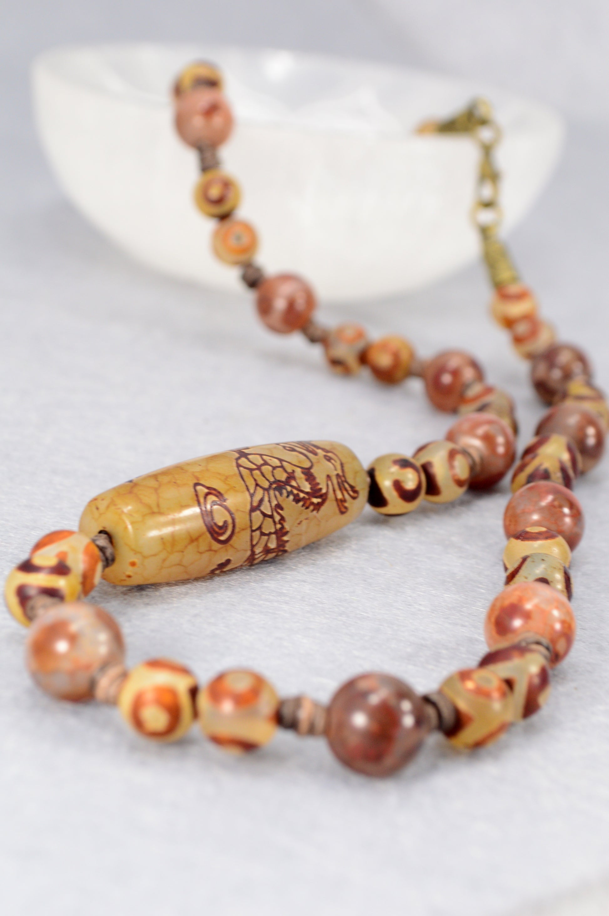 Umarme alte Energien und Schutz mit dieser Drachen-Dzi-Halskette.