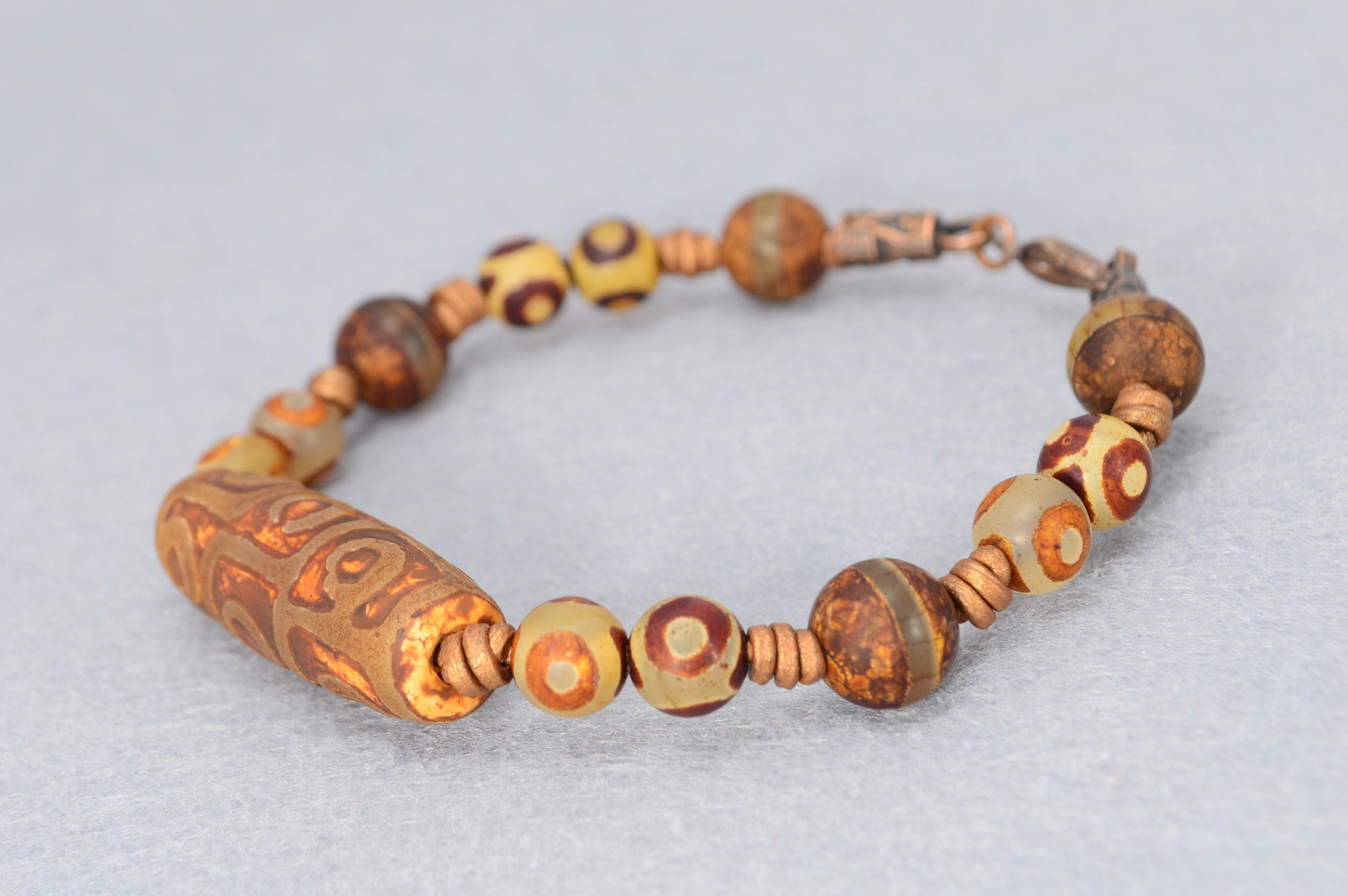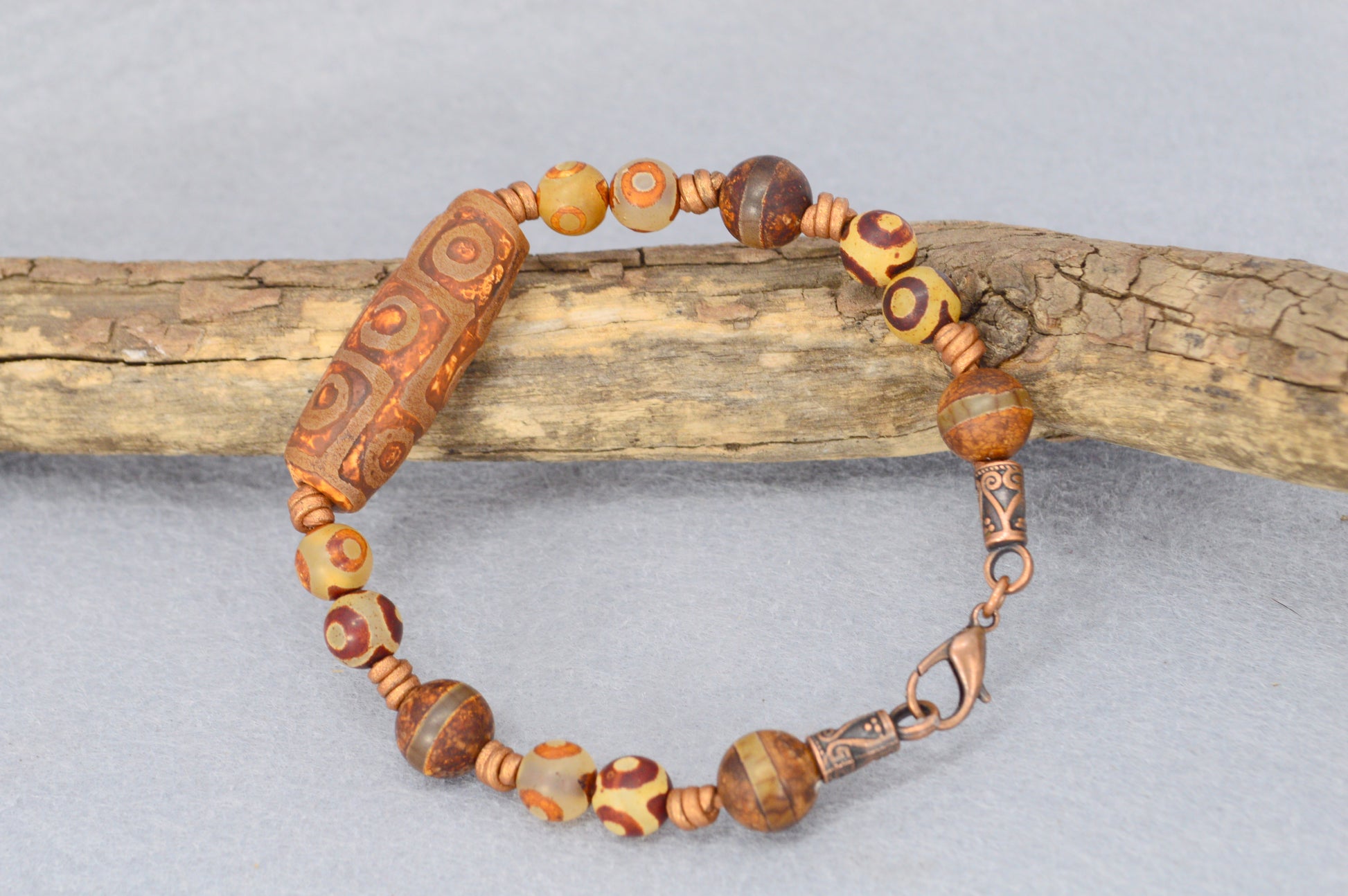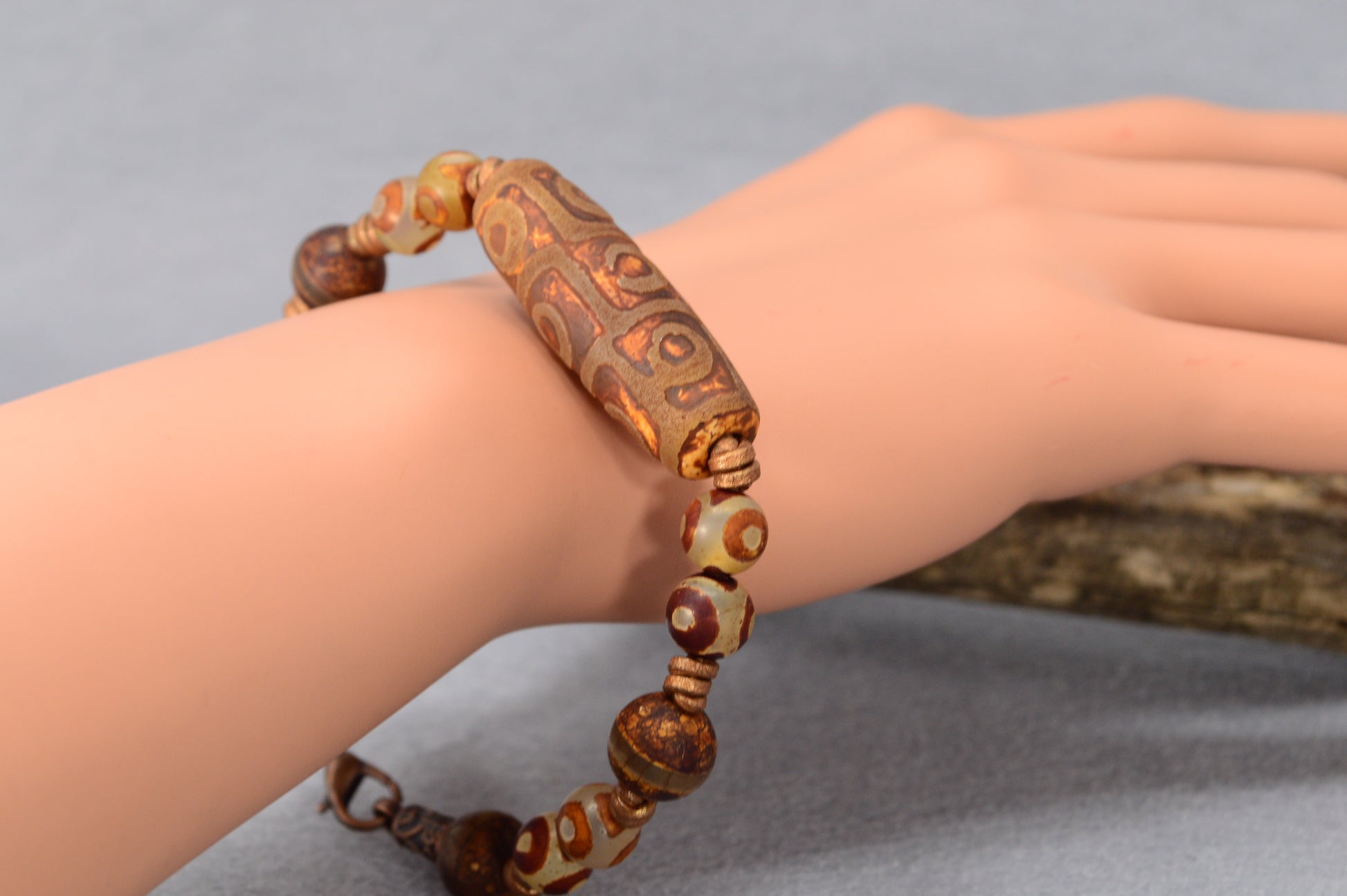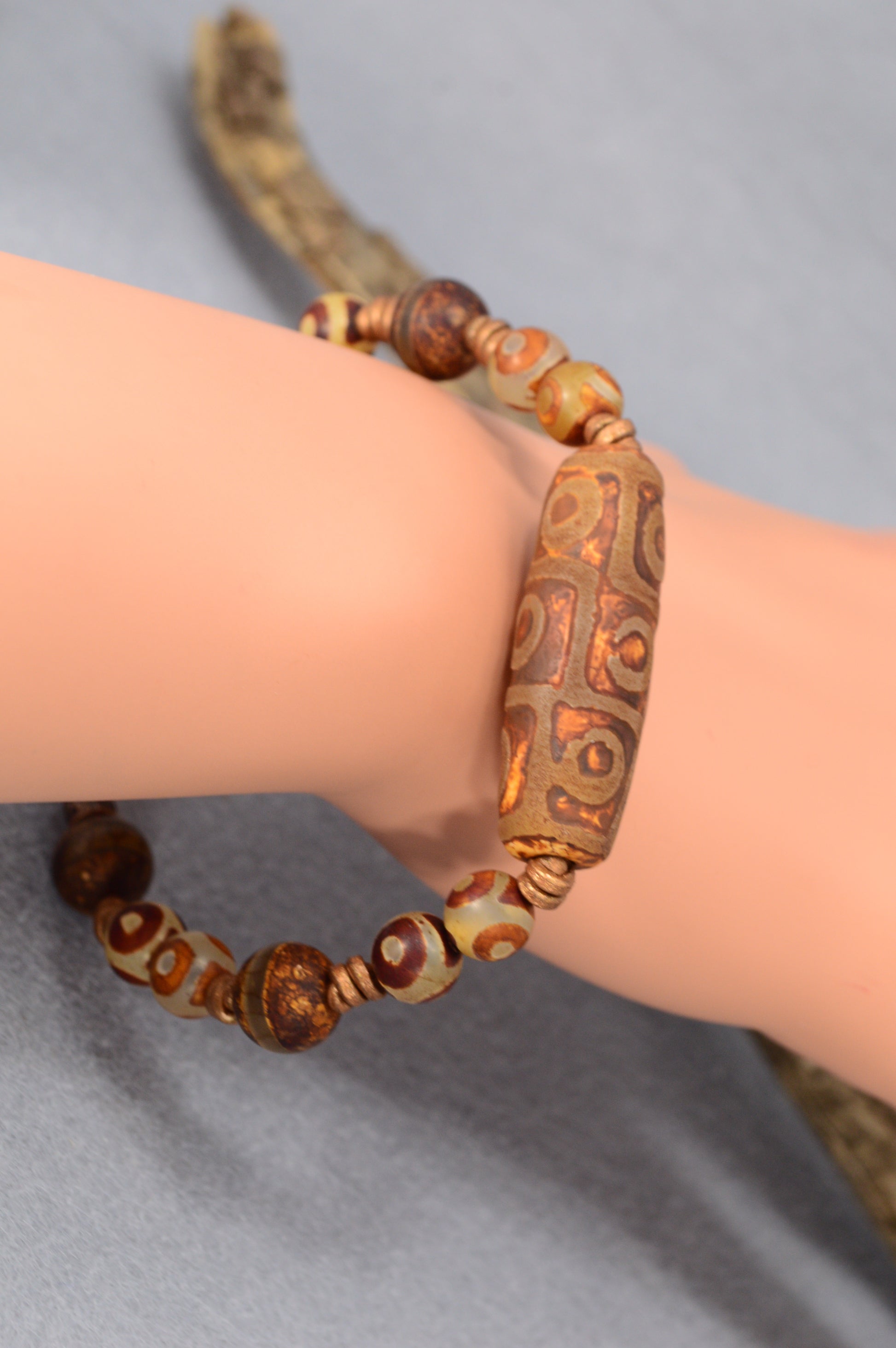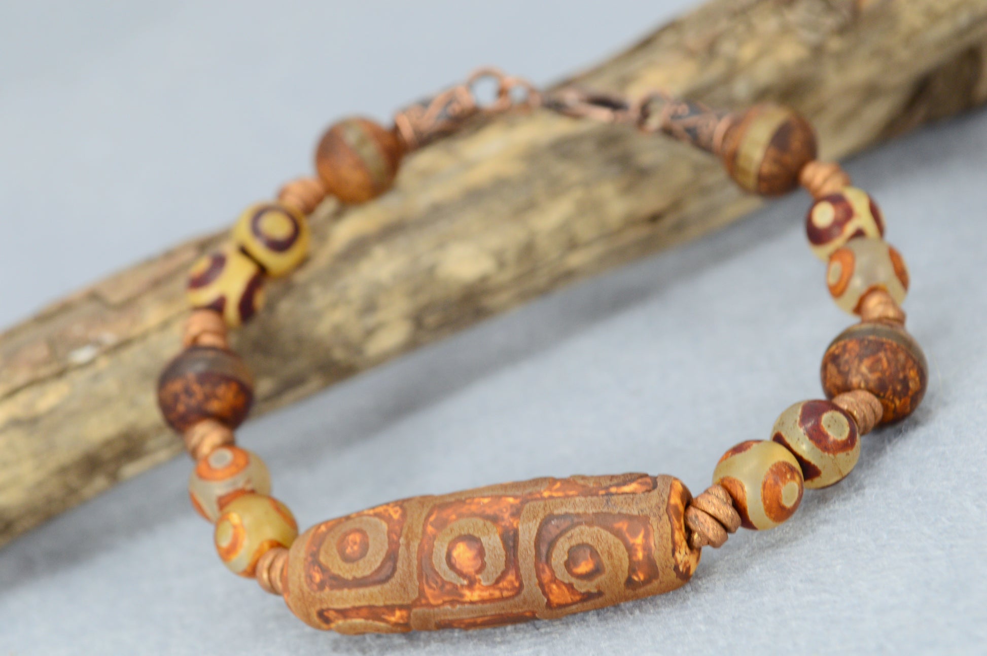 Tauche ein in die Energie uralter Weisheit mit diesem unisex tibetischen Dzi-Perlenarmband, handgefertigt aus kraftvollen Achatperlen und einem markanten Dzi-Mittelstück.