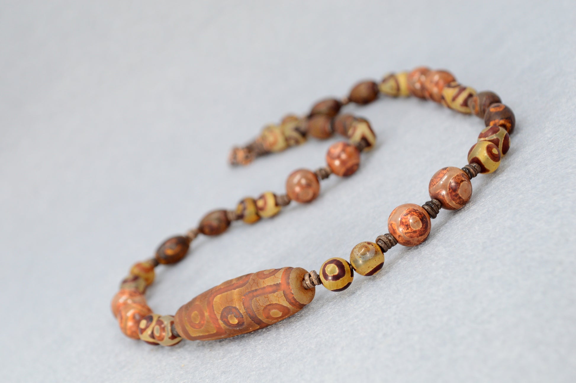 Unisex Tibetische Dzi-Perlen-Halskette – Achat-Schutzamulett, Spiritueller Boho-Schmuck