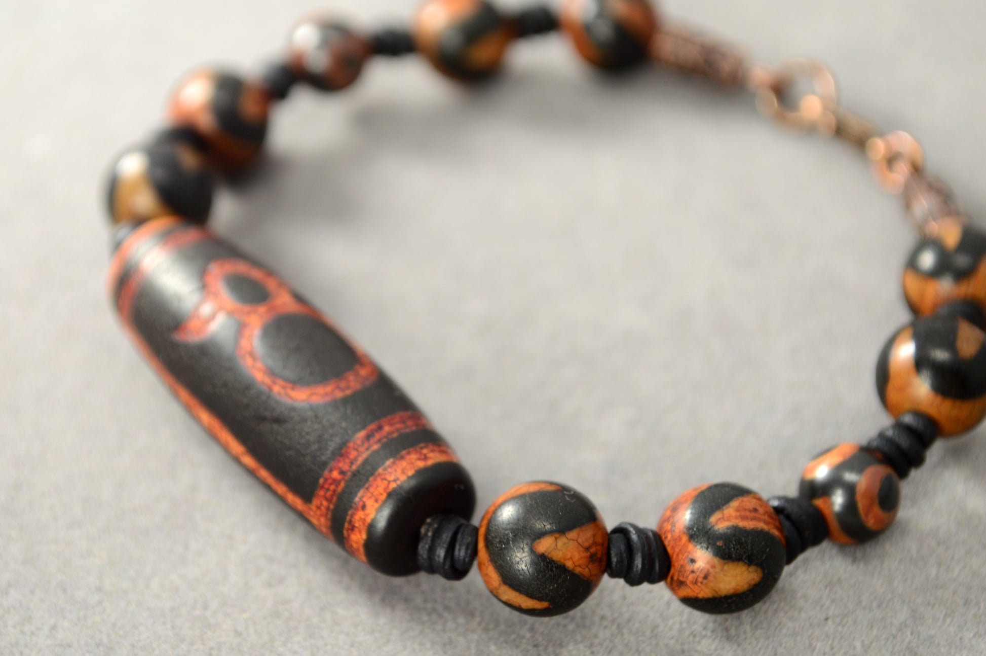 Bracelet Tribal en Perles Dzi Noires