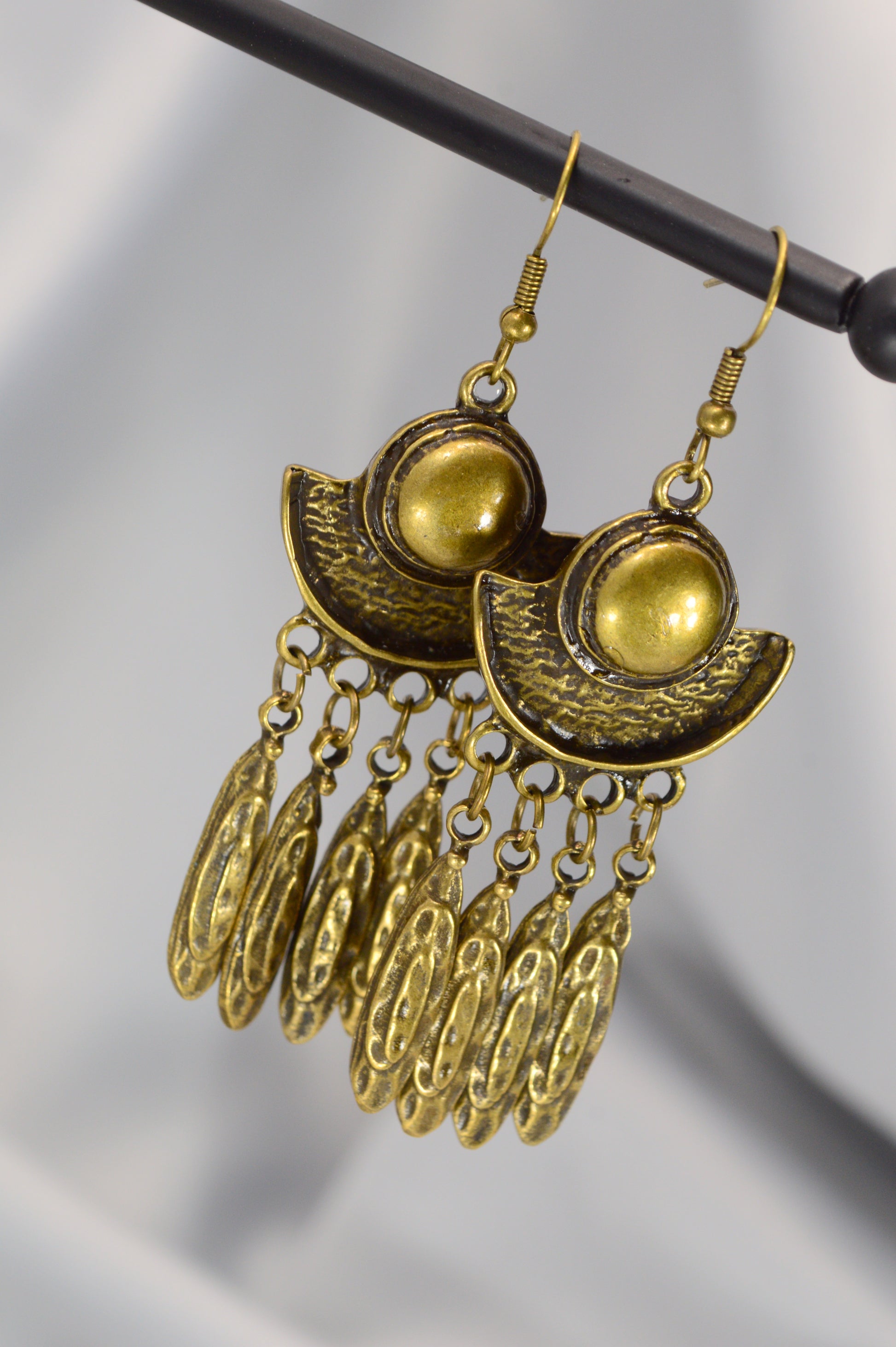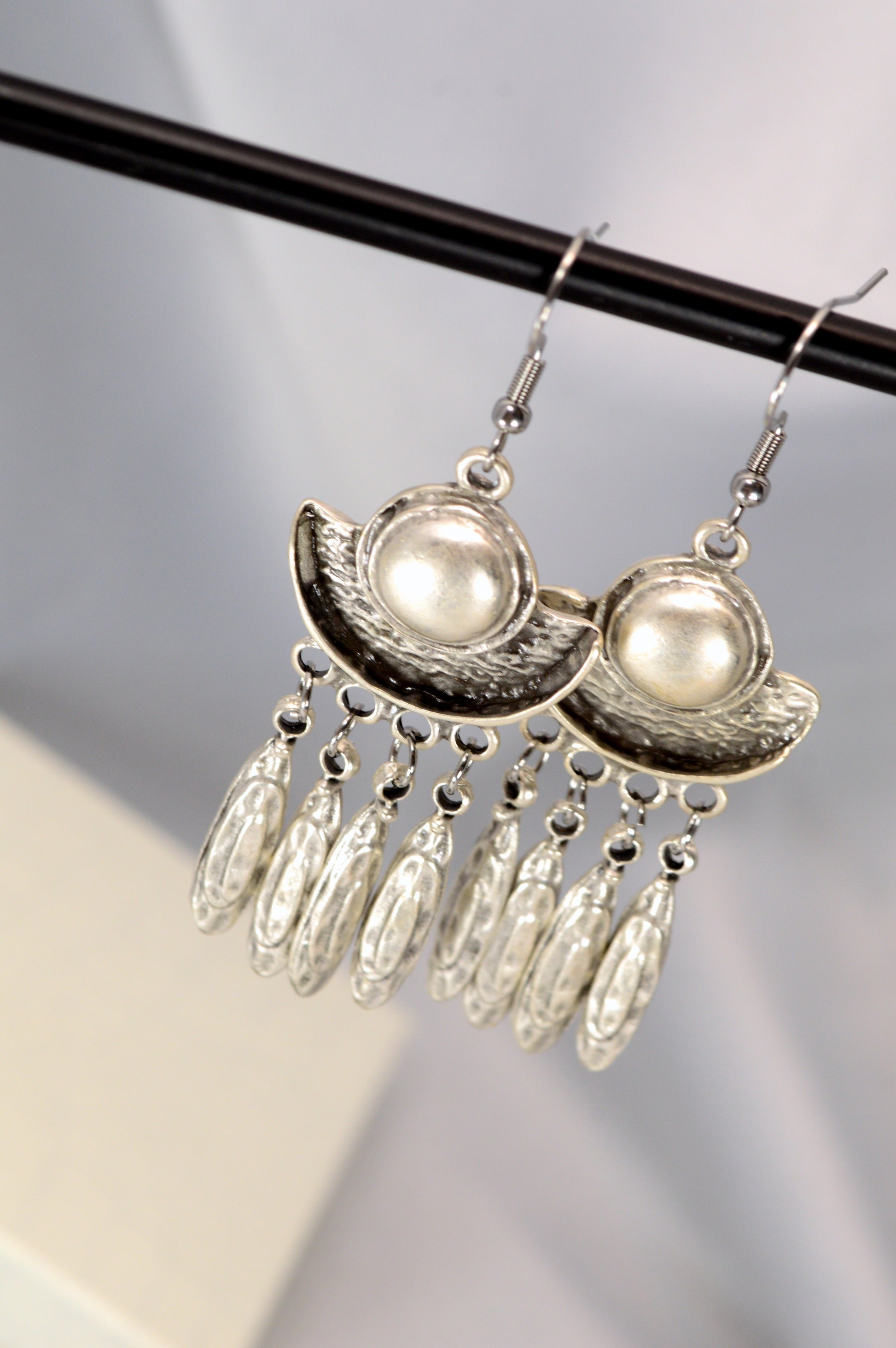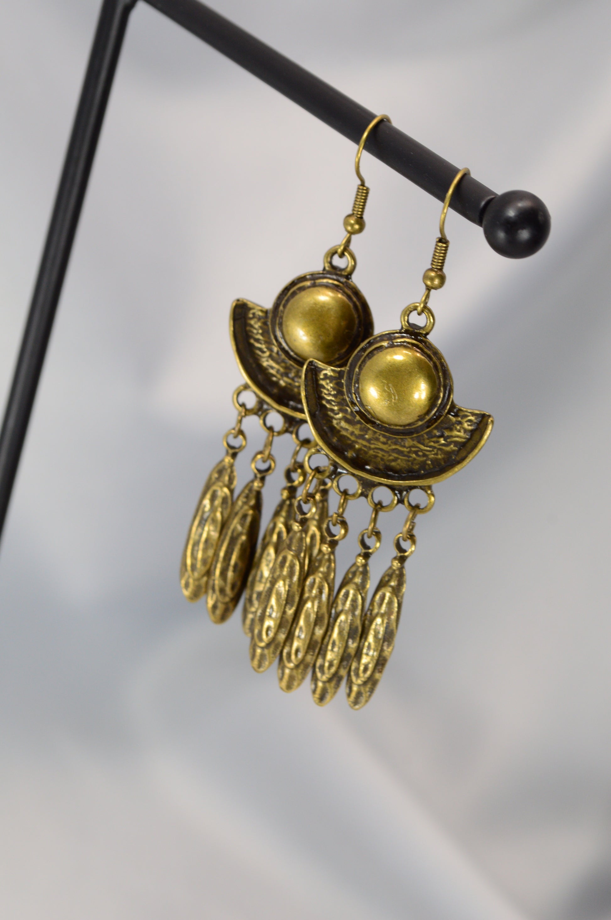 These boho crescent-shaped dangle earrings measure 7.5 cm (3") in length, giving them an elegant, eye-catching movement. Available in two expressive finishes — bright antique silver and warm aged bronze — they blend a bold vintage charm with a handcrafted ethnic, gypsy and tribal feel. The textured crescent top and dangling charms make them perfect for bohemian outfits, festivals, beach looks or adding character to simple everyday wear. A thoughtful gift for anyone who loves artistic statement jewelry with retro flair. The silver tone adds a cool shimmering accent, while the bronze finish brings depth and a warm rustic vibe, easy to style with natural fabrics and layered boho looks.
