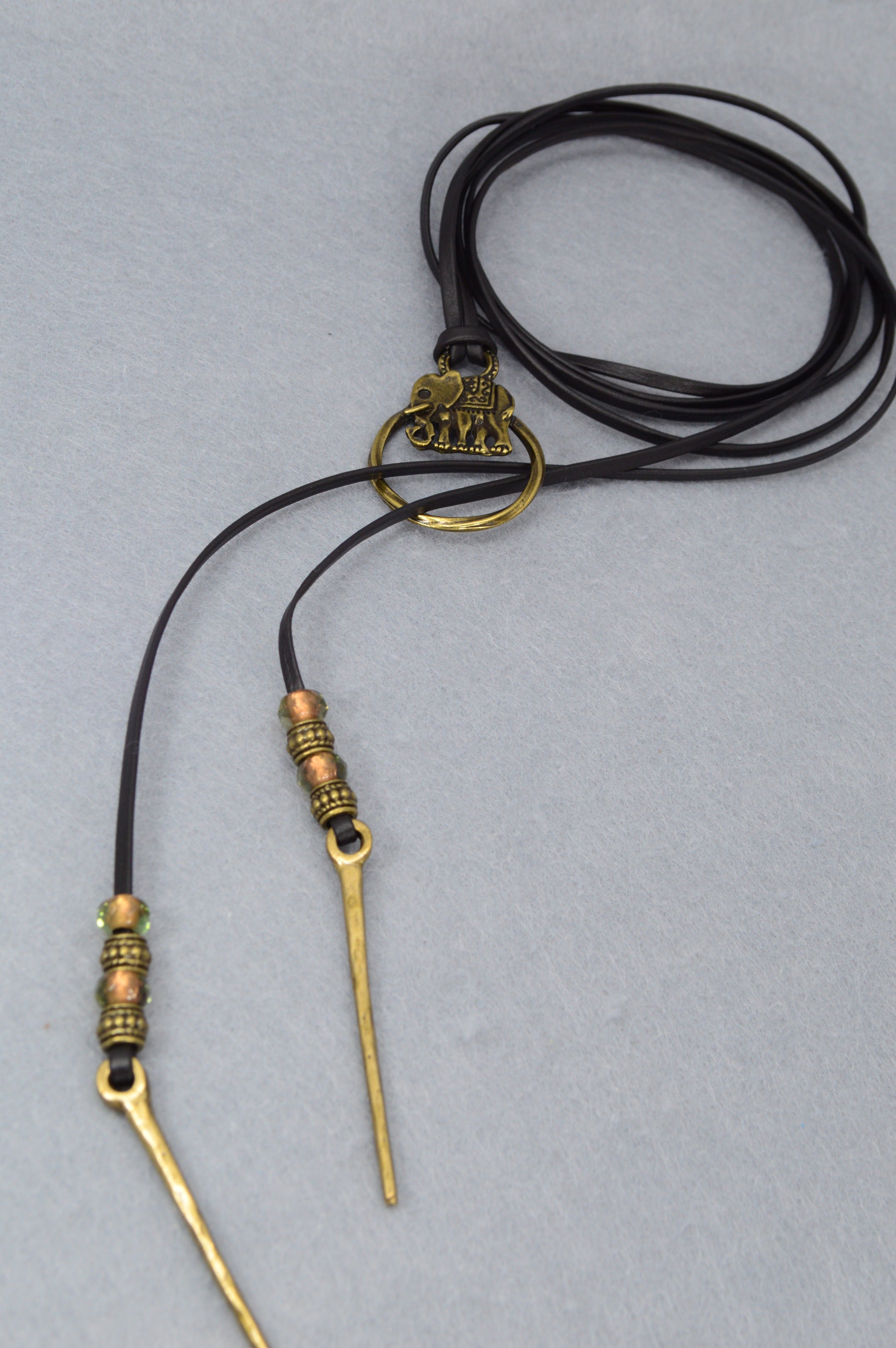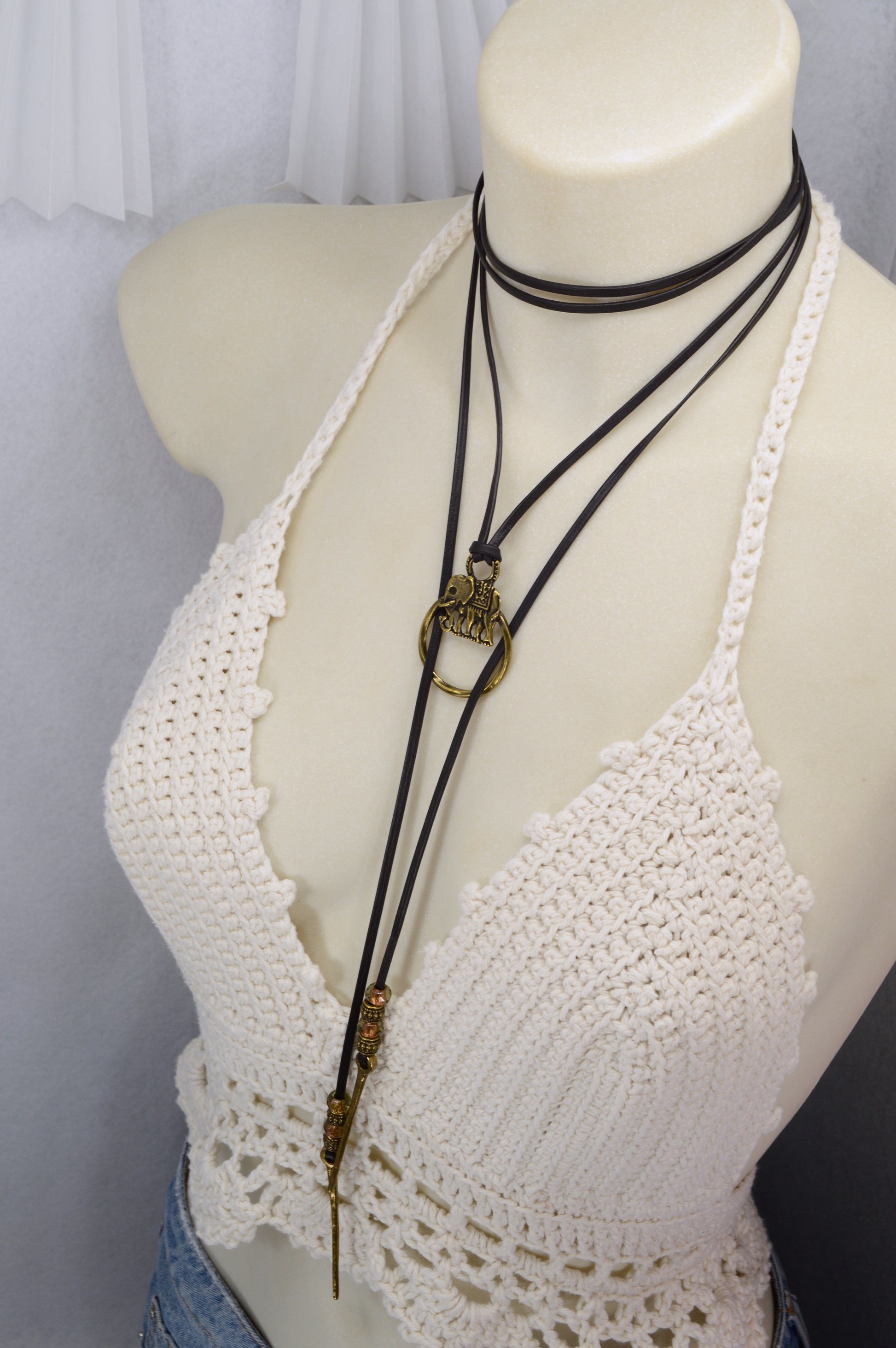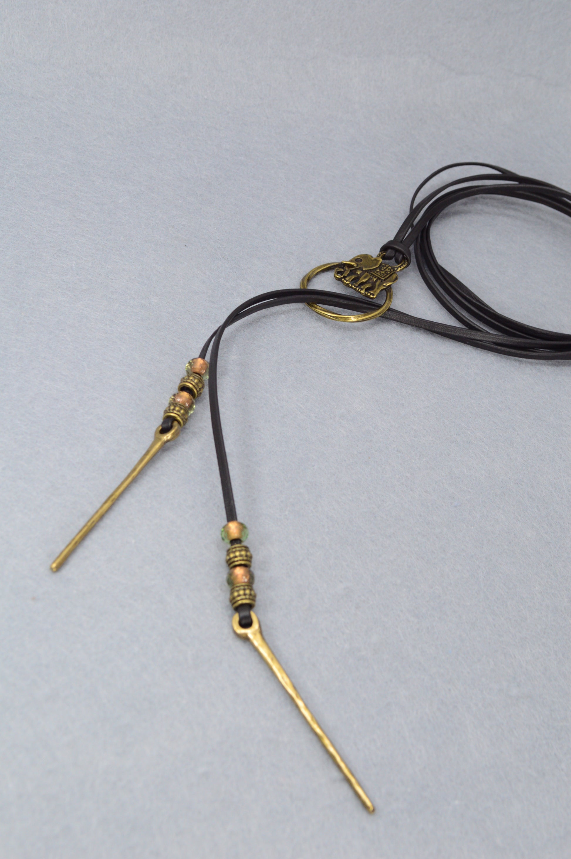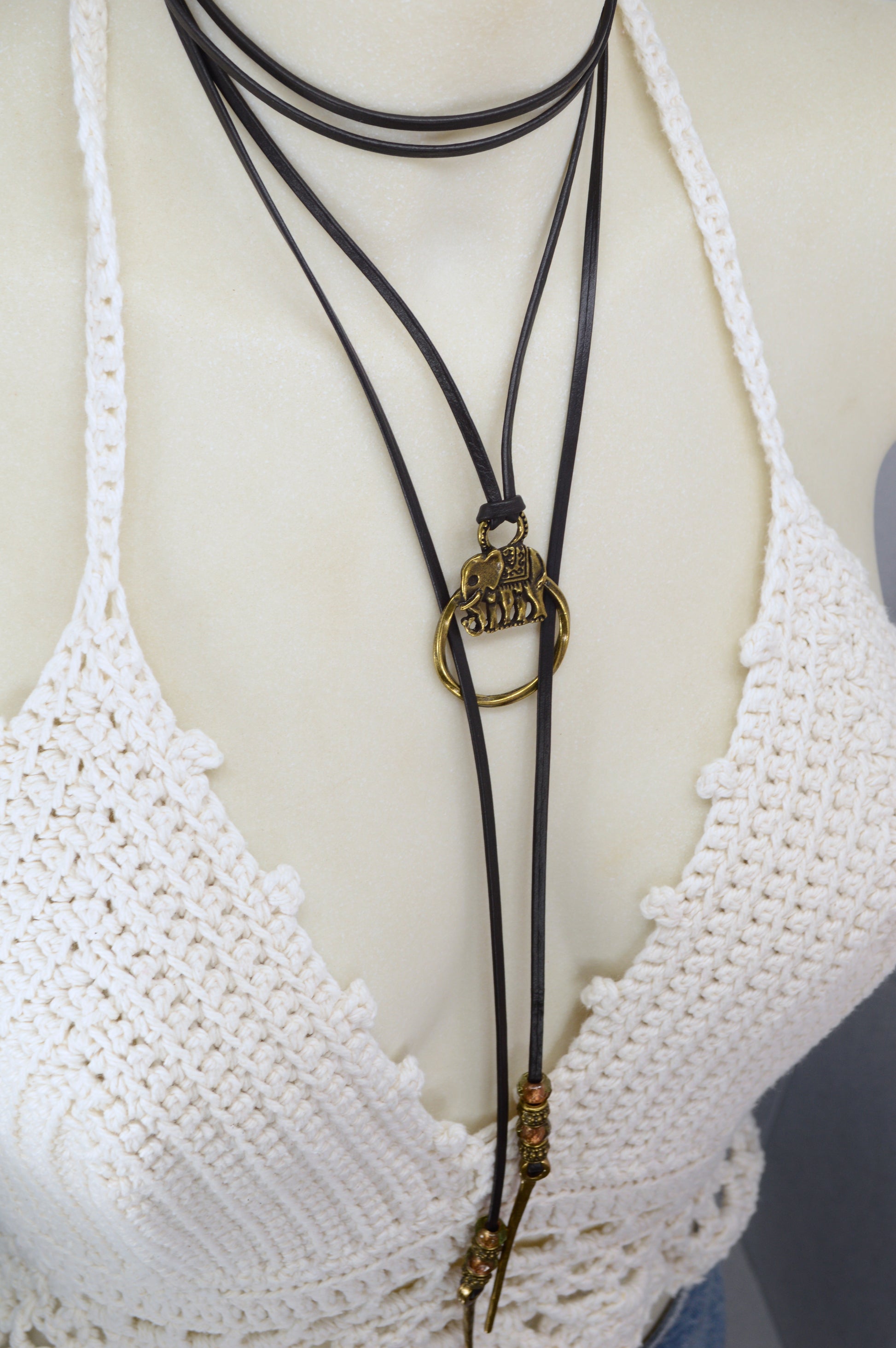 The long adjustable design allows you to wrap it multiple times around your neck and style it as a choker, lariat, or layered necklace. Adorned with bronze beads for extra texture, it instantly gives your outfit a free-spirited festival vibe.