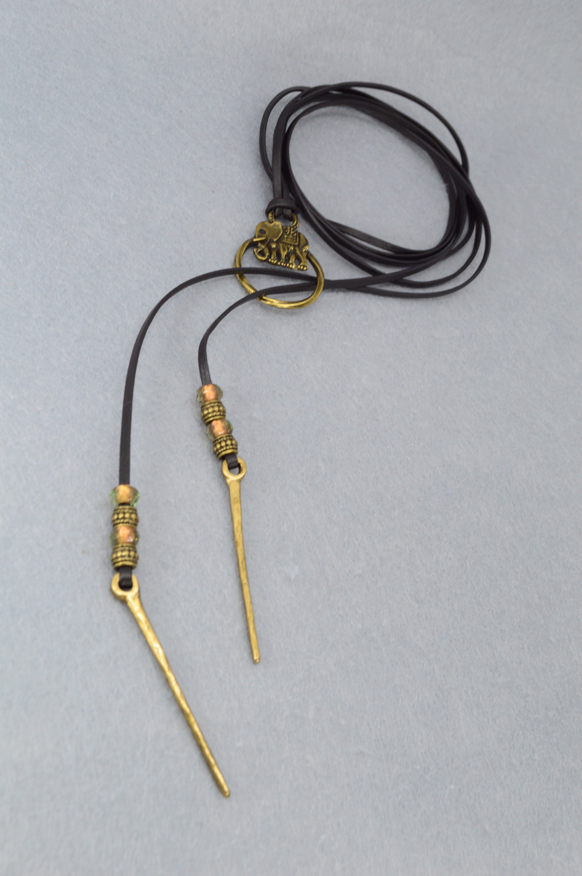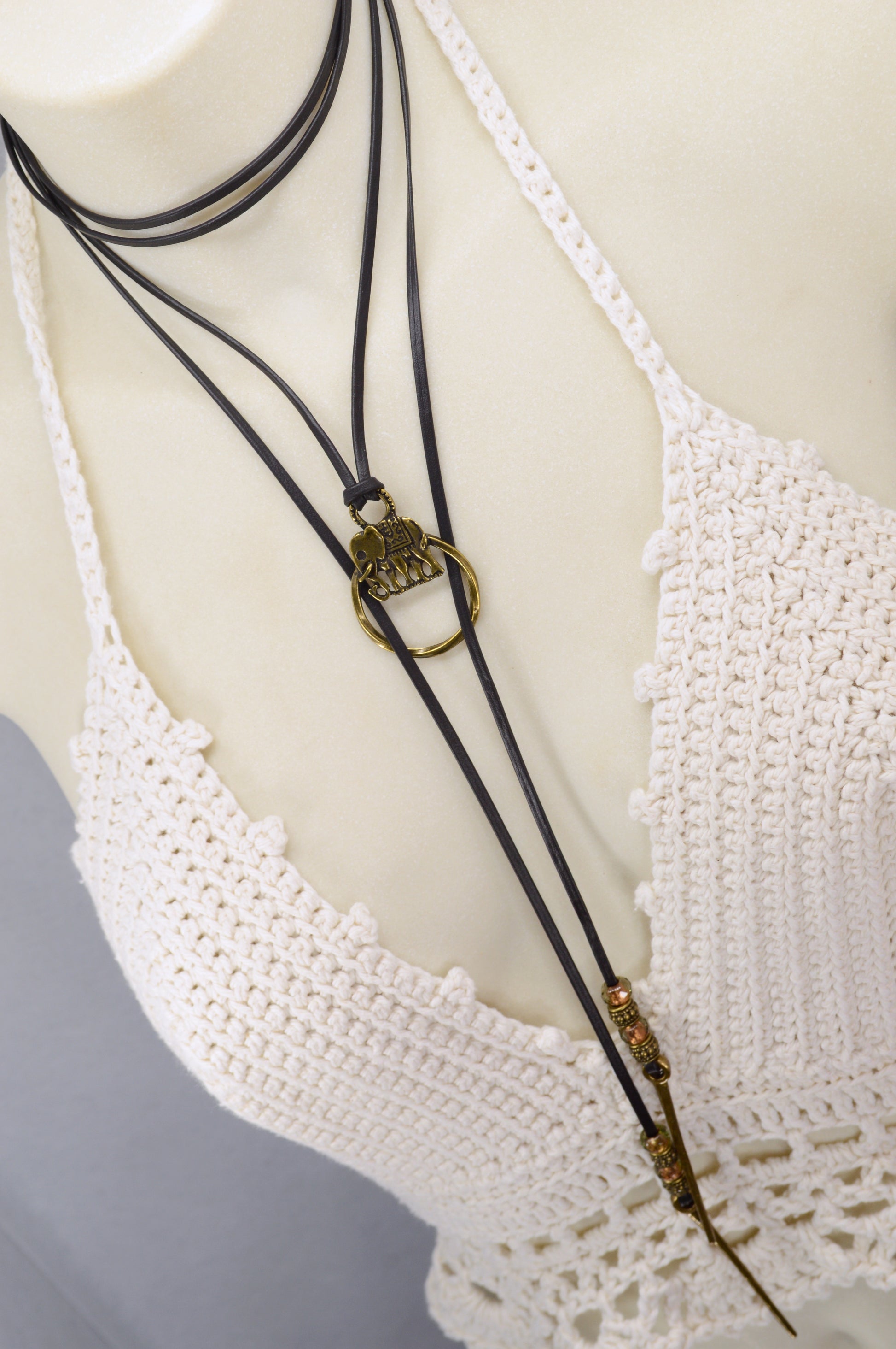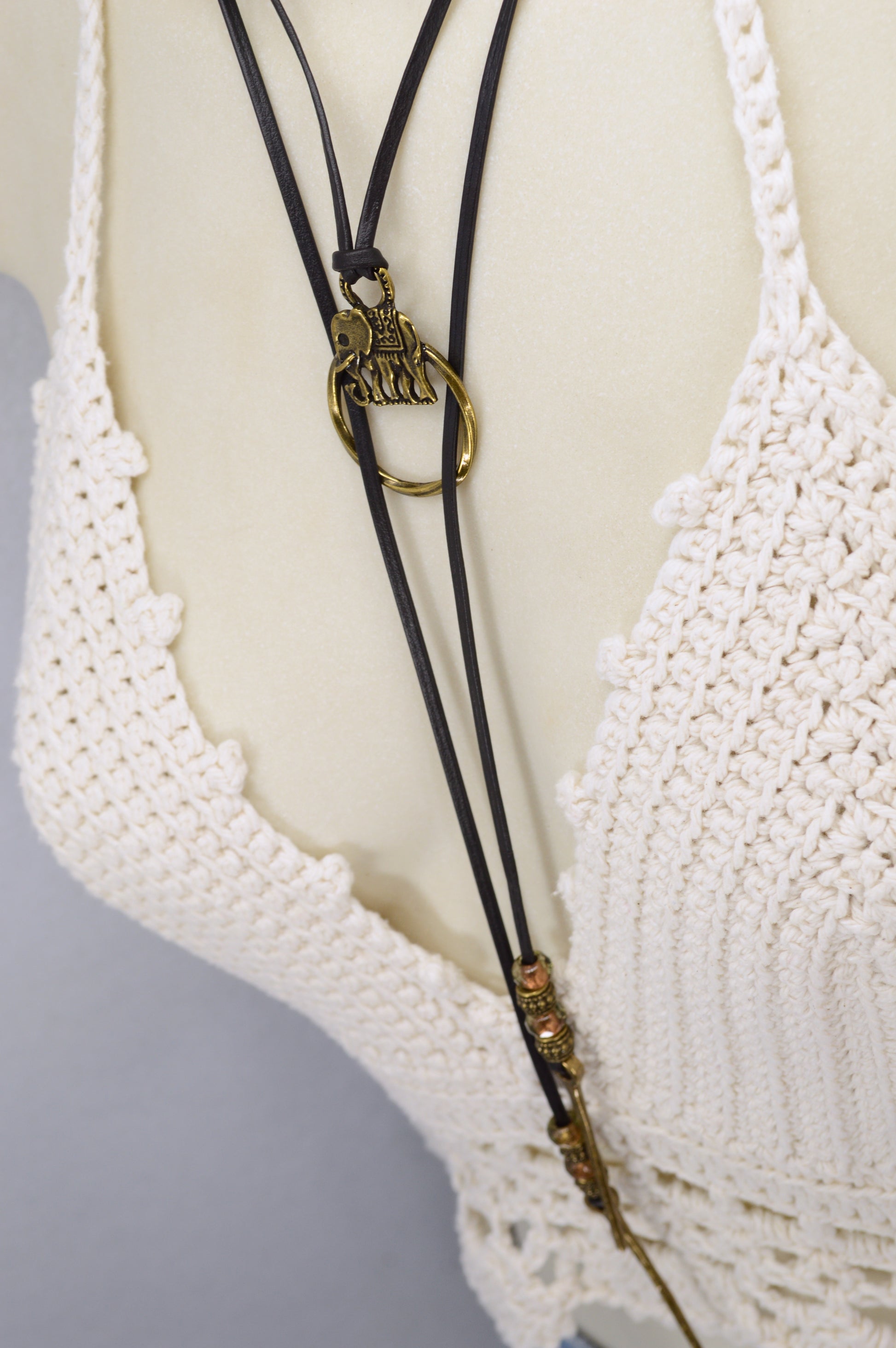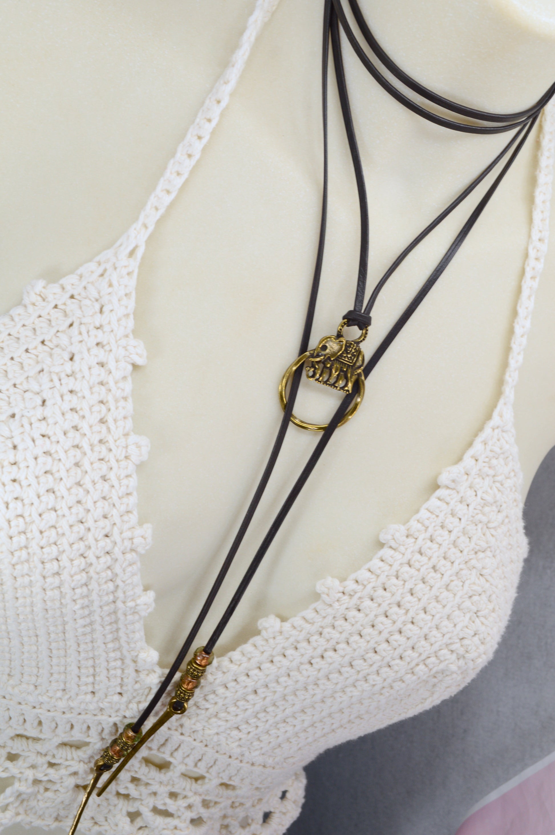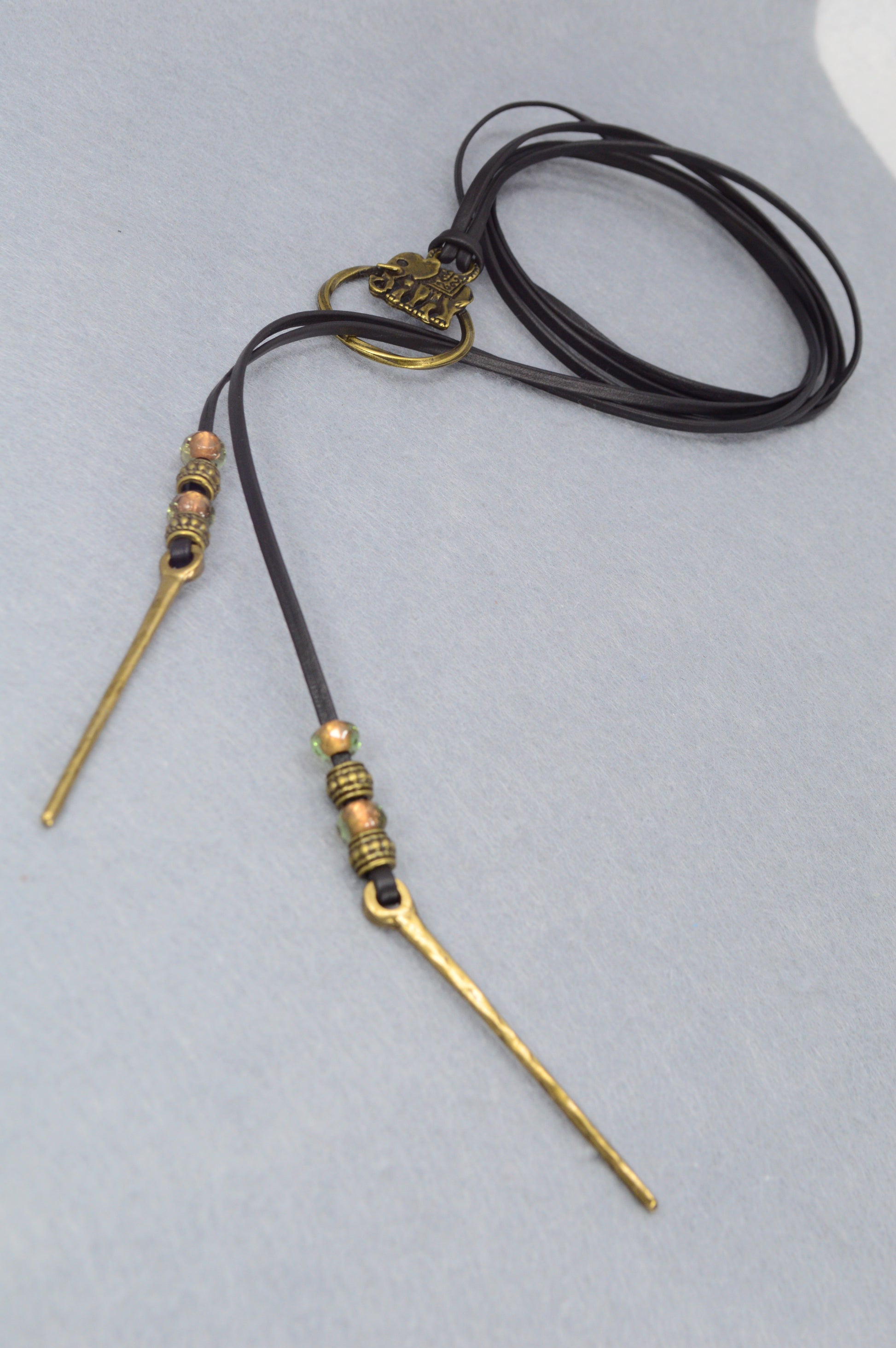 The long adjustable design allows you to wrap it multiple times around your neck and style it as a choker, lariat, or layered necklace. Adorned with bronze beads for extra texture, it instantly gives your outfit a free-spirited festival vibe.