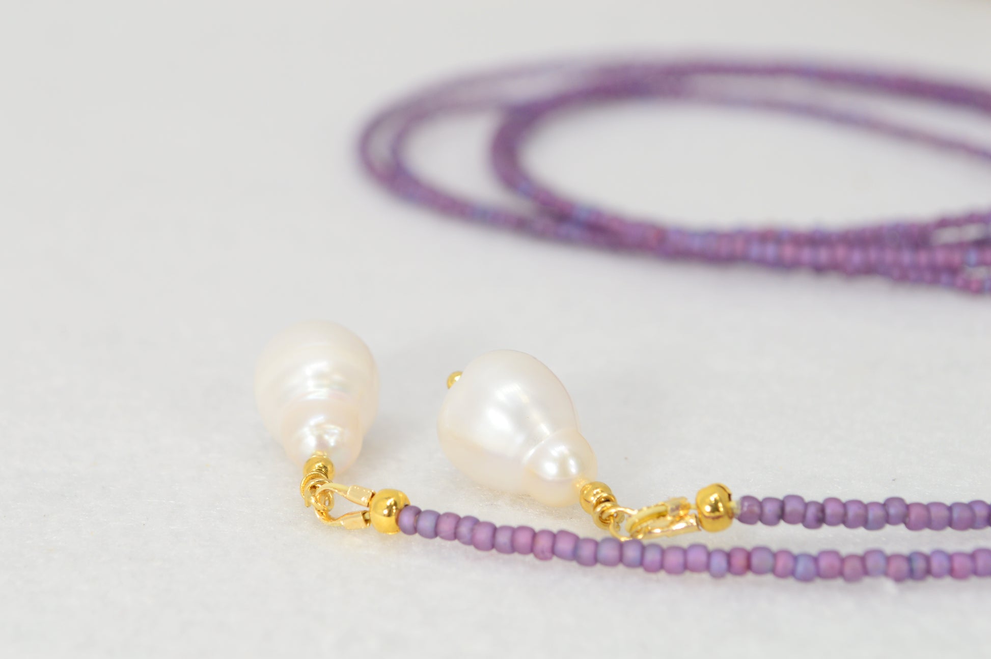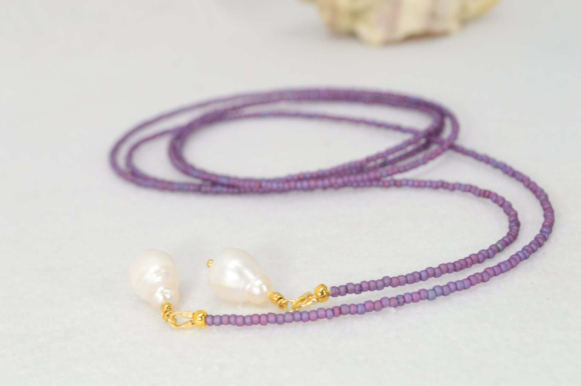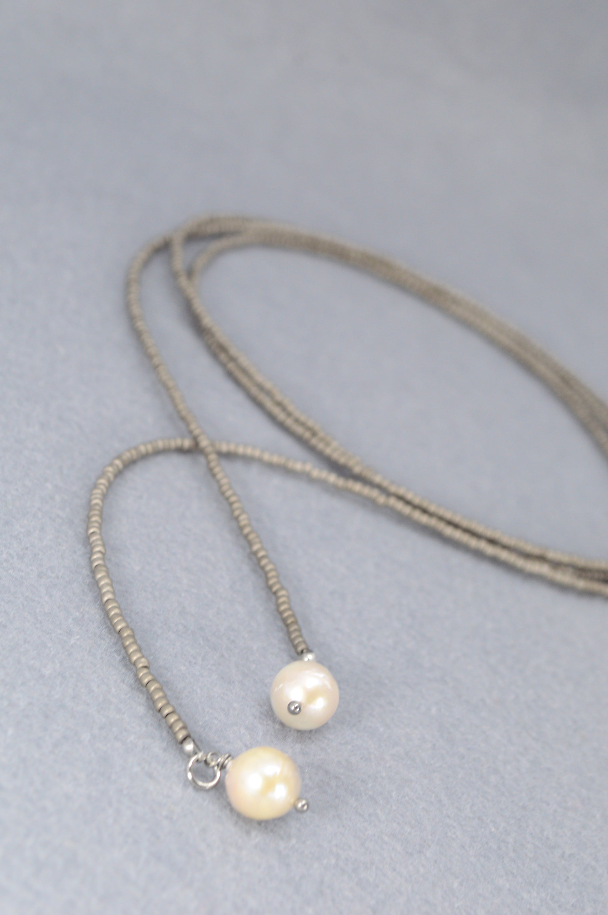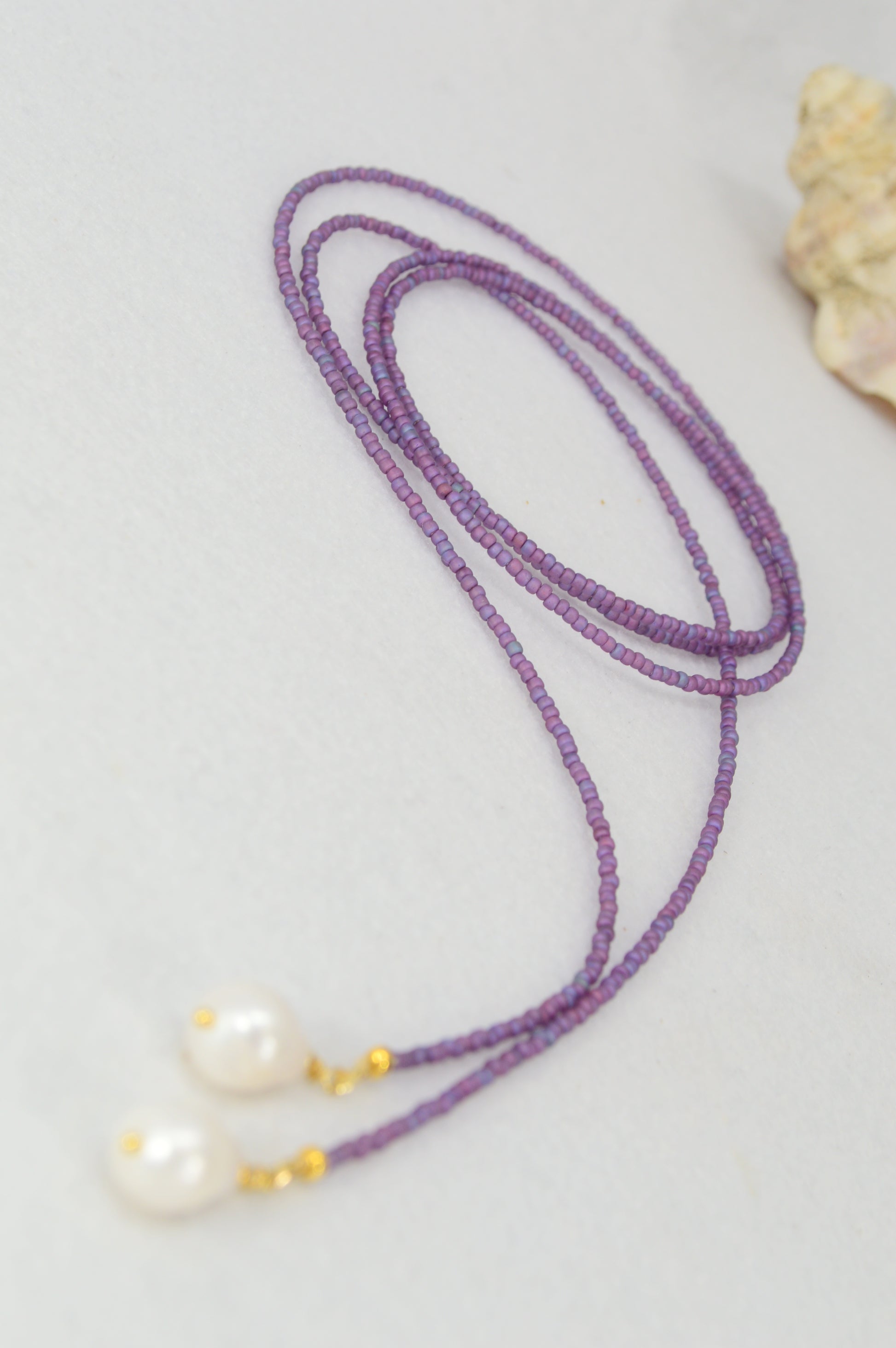 This handmade lariat necklace features beautiful black pearls combined with a sleek long chain, creating a unique boho-inspired Y necklace. Perfect for layering or wearing as a statement piece, it blends elegance and modern fashion.