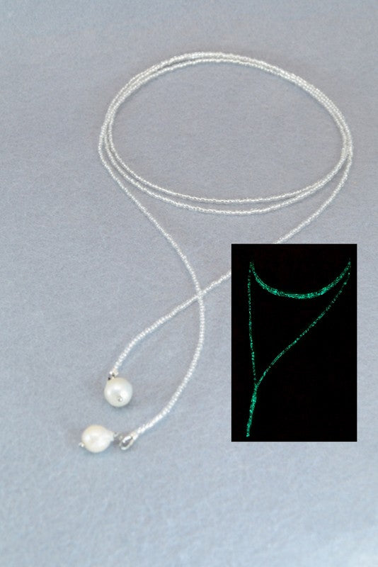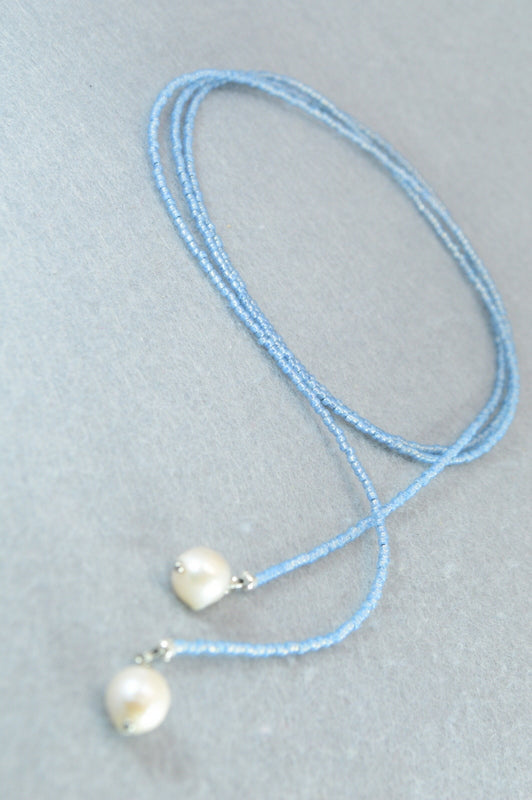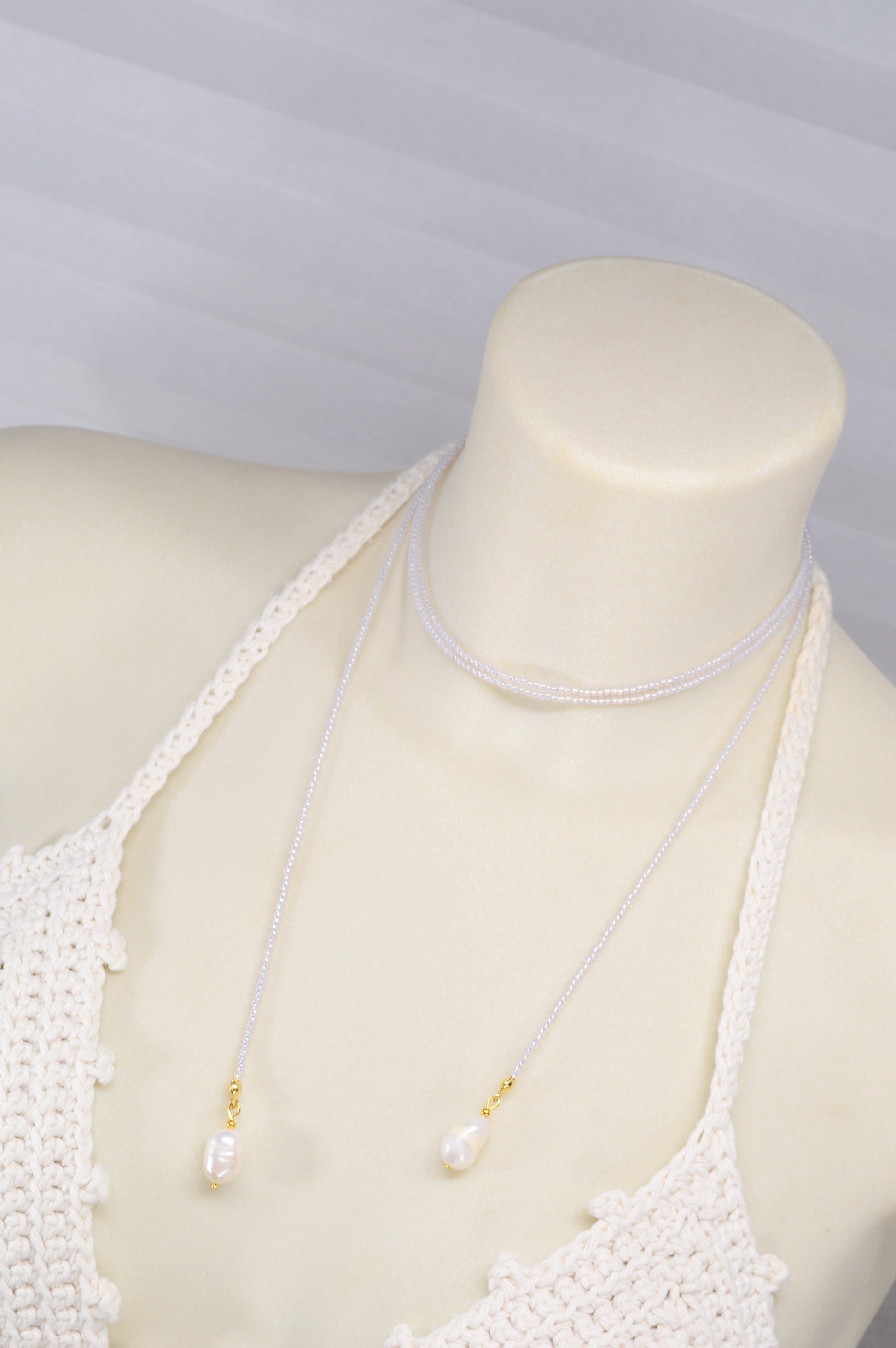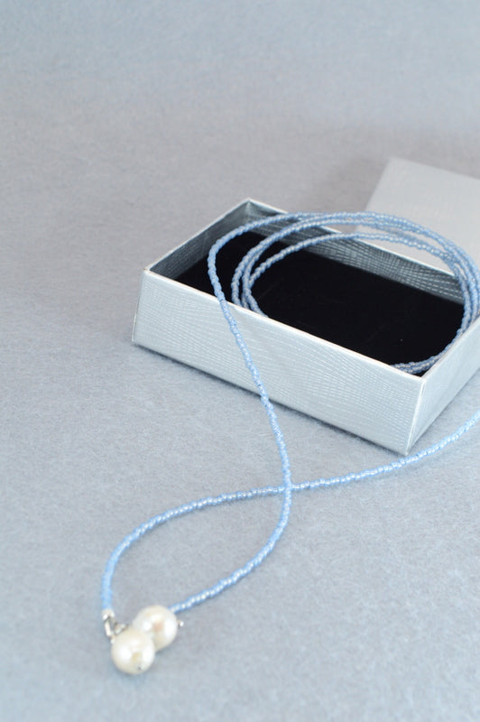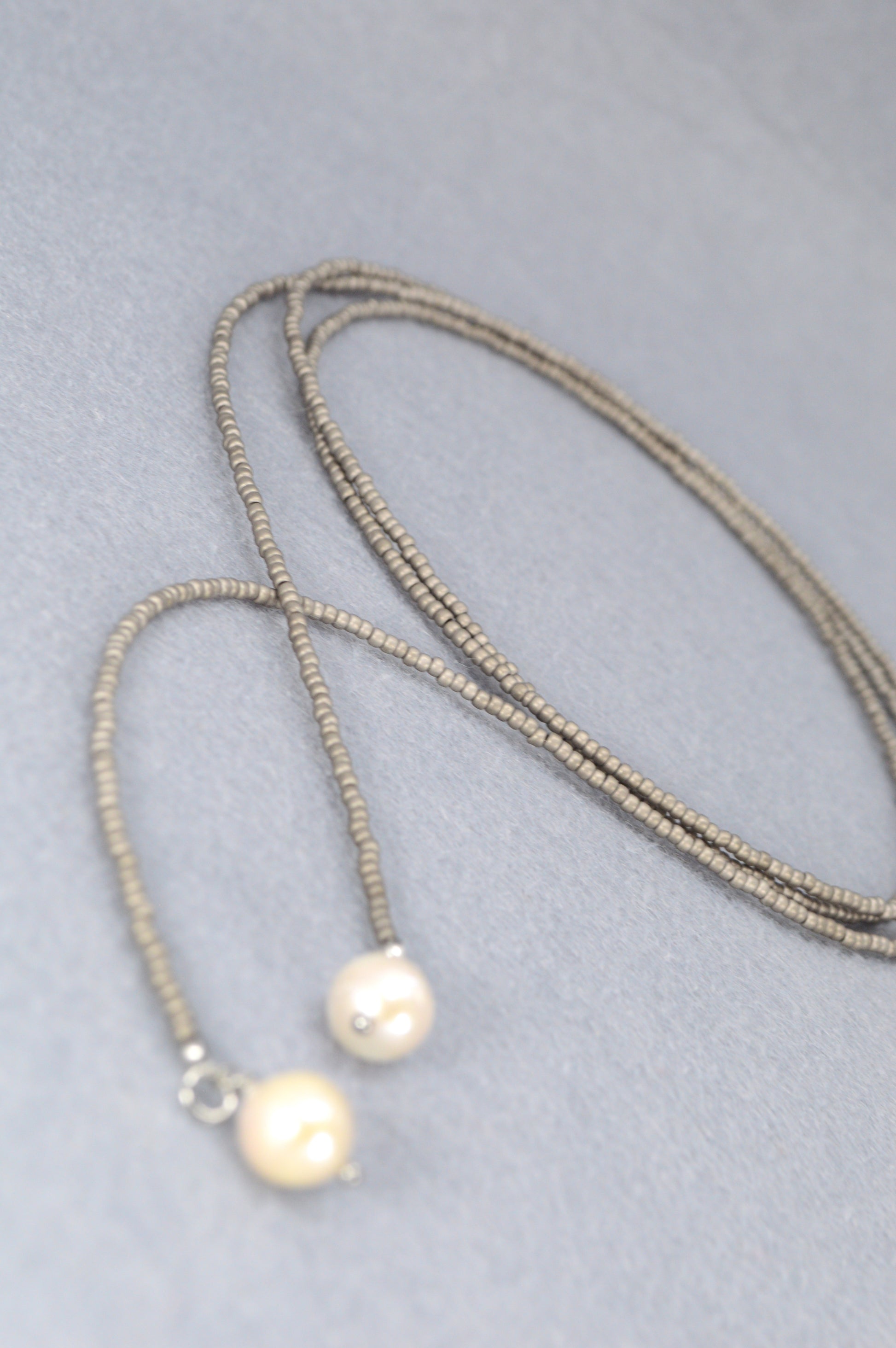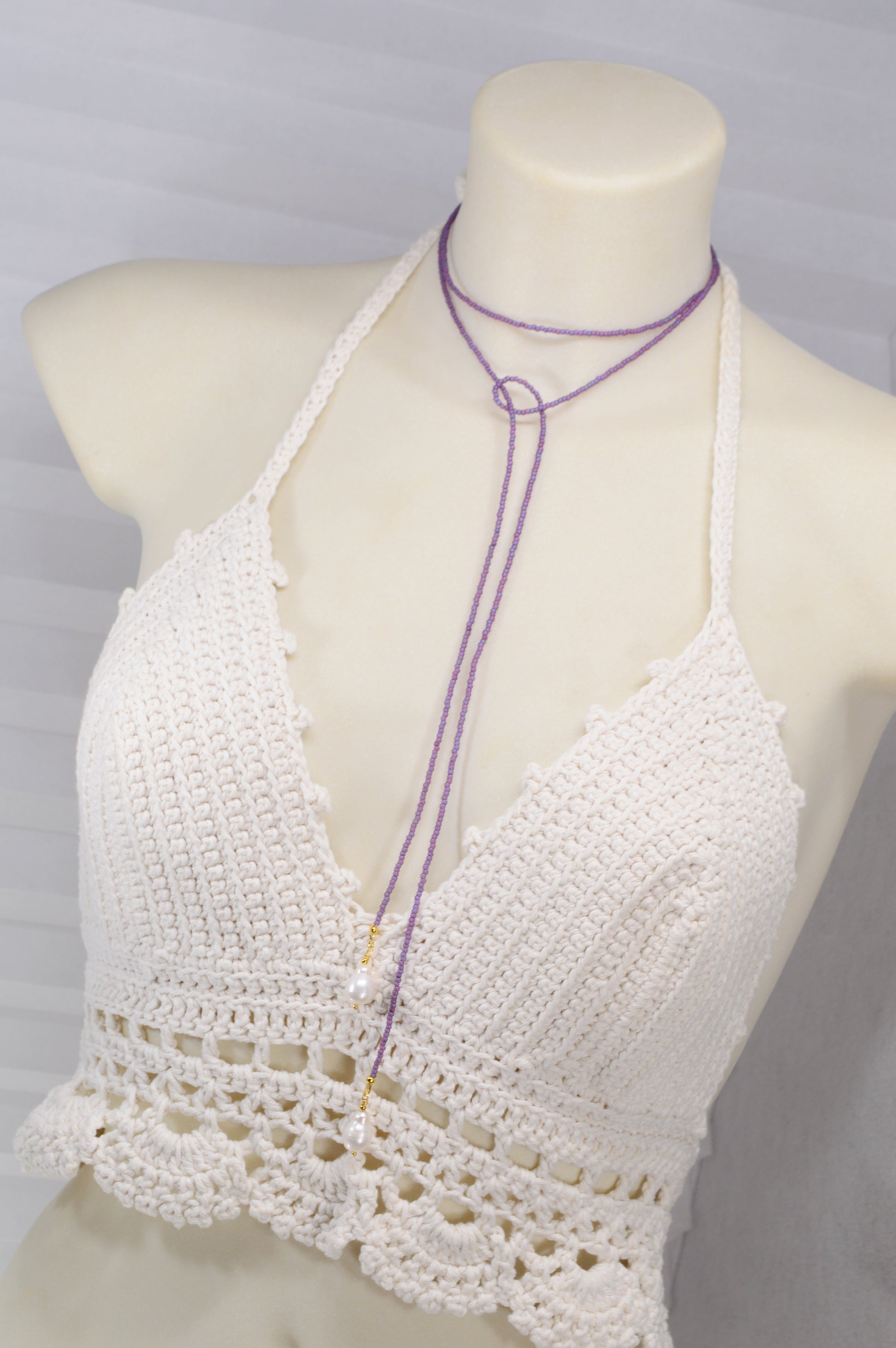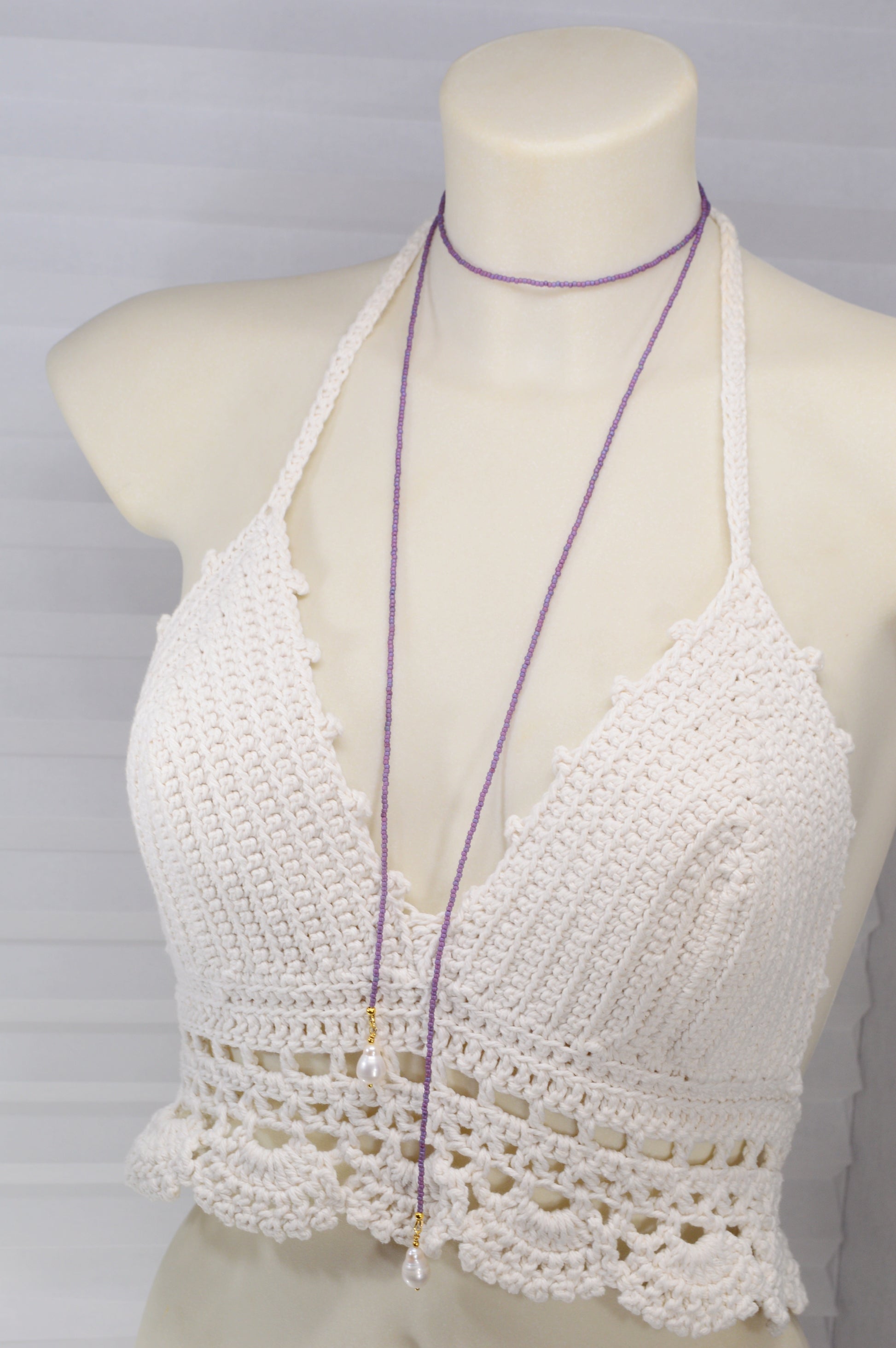 This handmade lariat necklace features beautiful black pearls combined with a sleek long chain, creating a unique boho-inspired Y necklace. Perfect for layering or wearing as a statement piece, it blends elegance and modern fashion.