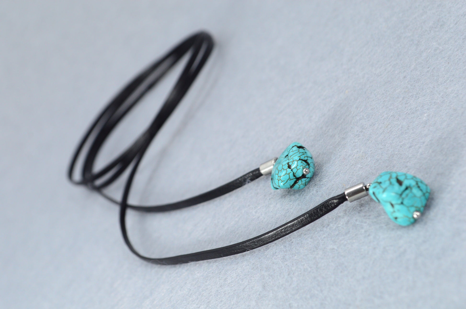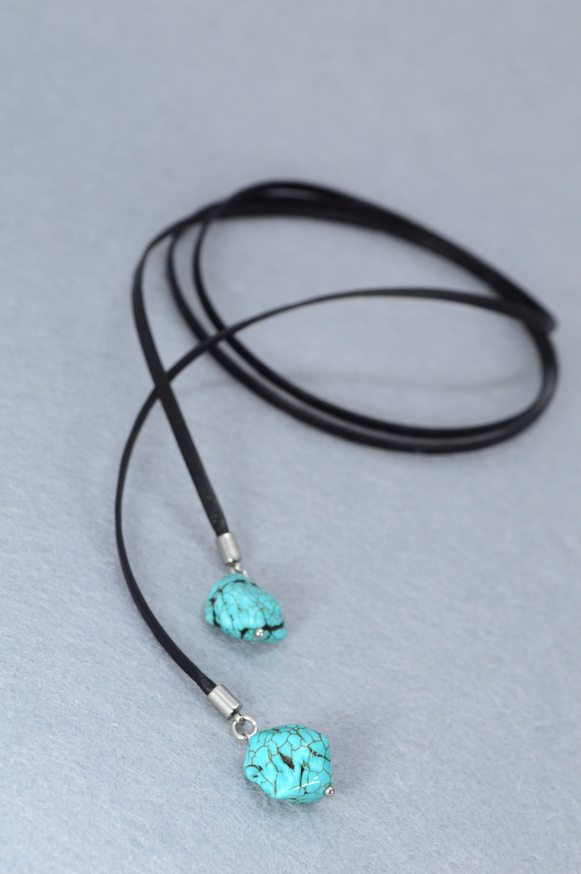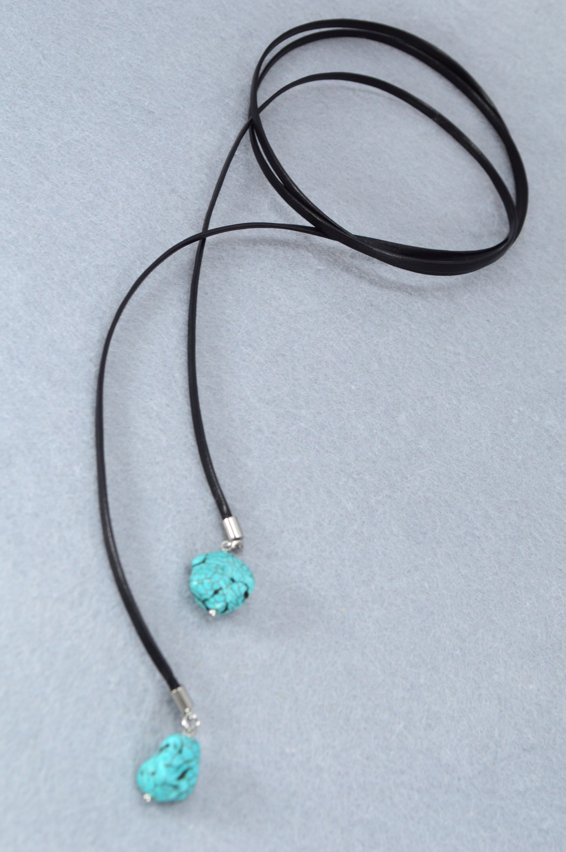 Material: Genuine leather cord, natural turquoise gemstones, stainless steel accents