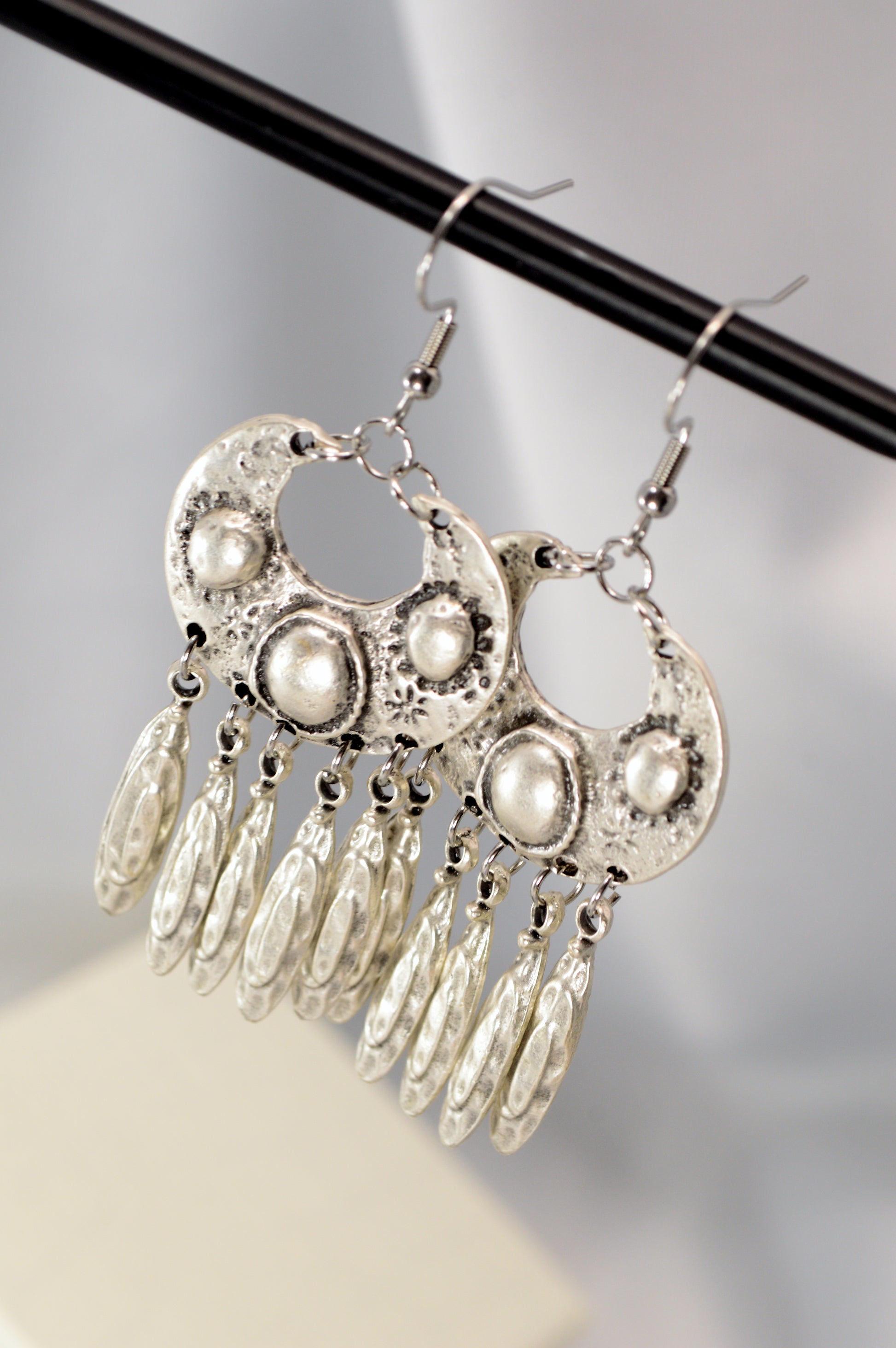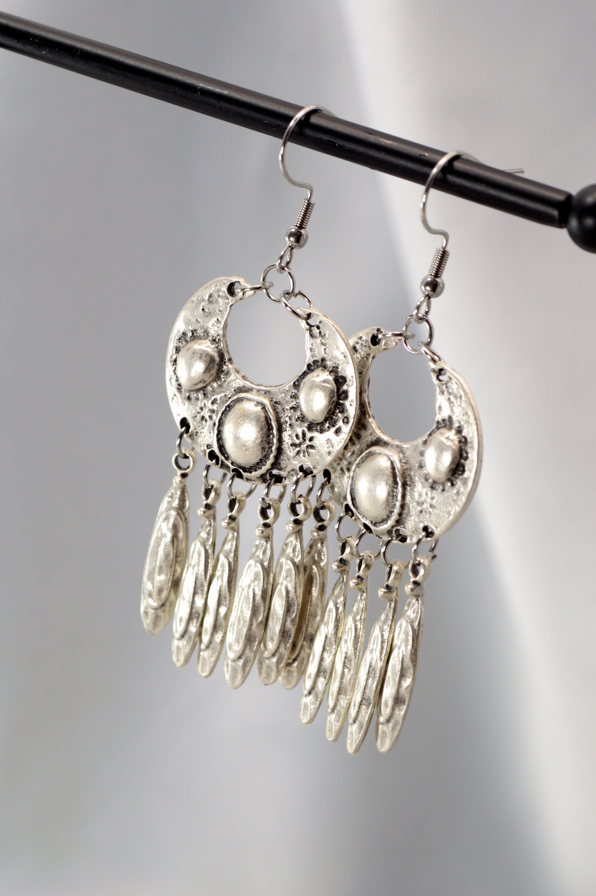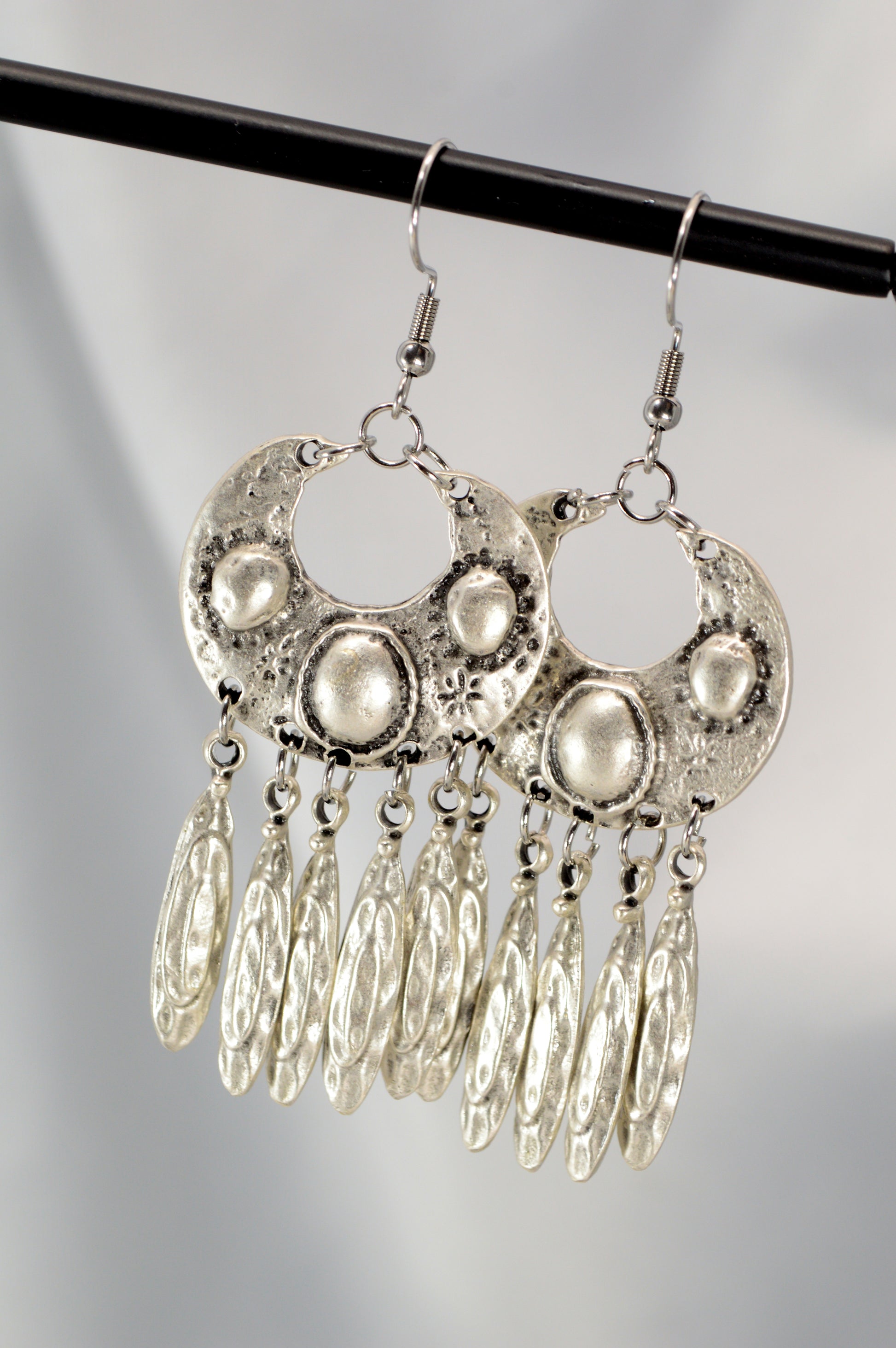 Boho Vintage Silver Dangle Earrings with Stainless Steel Hooks 7.5cm - 3"