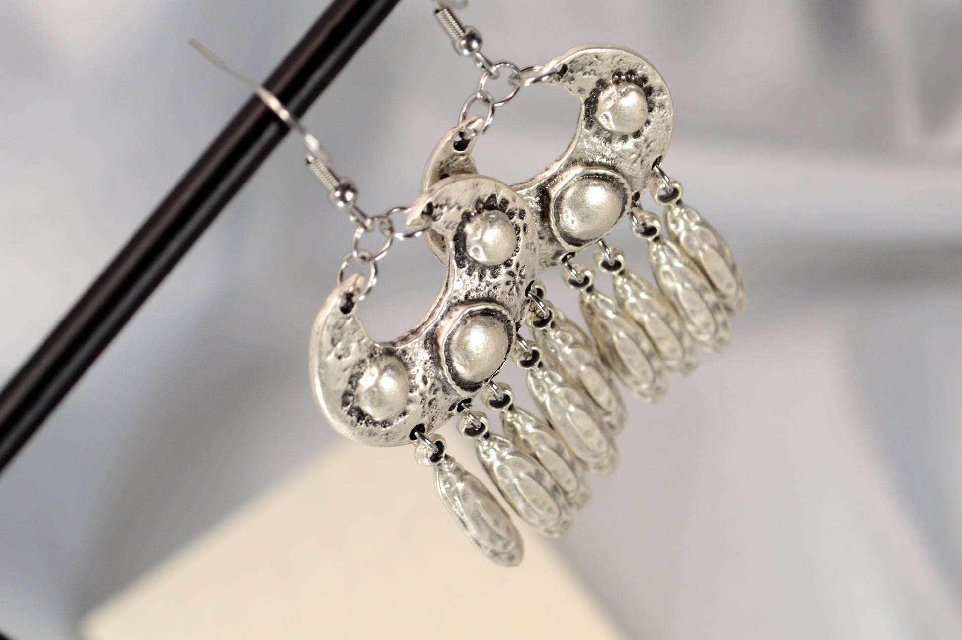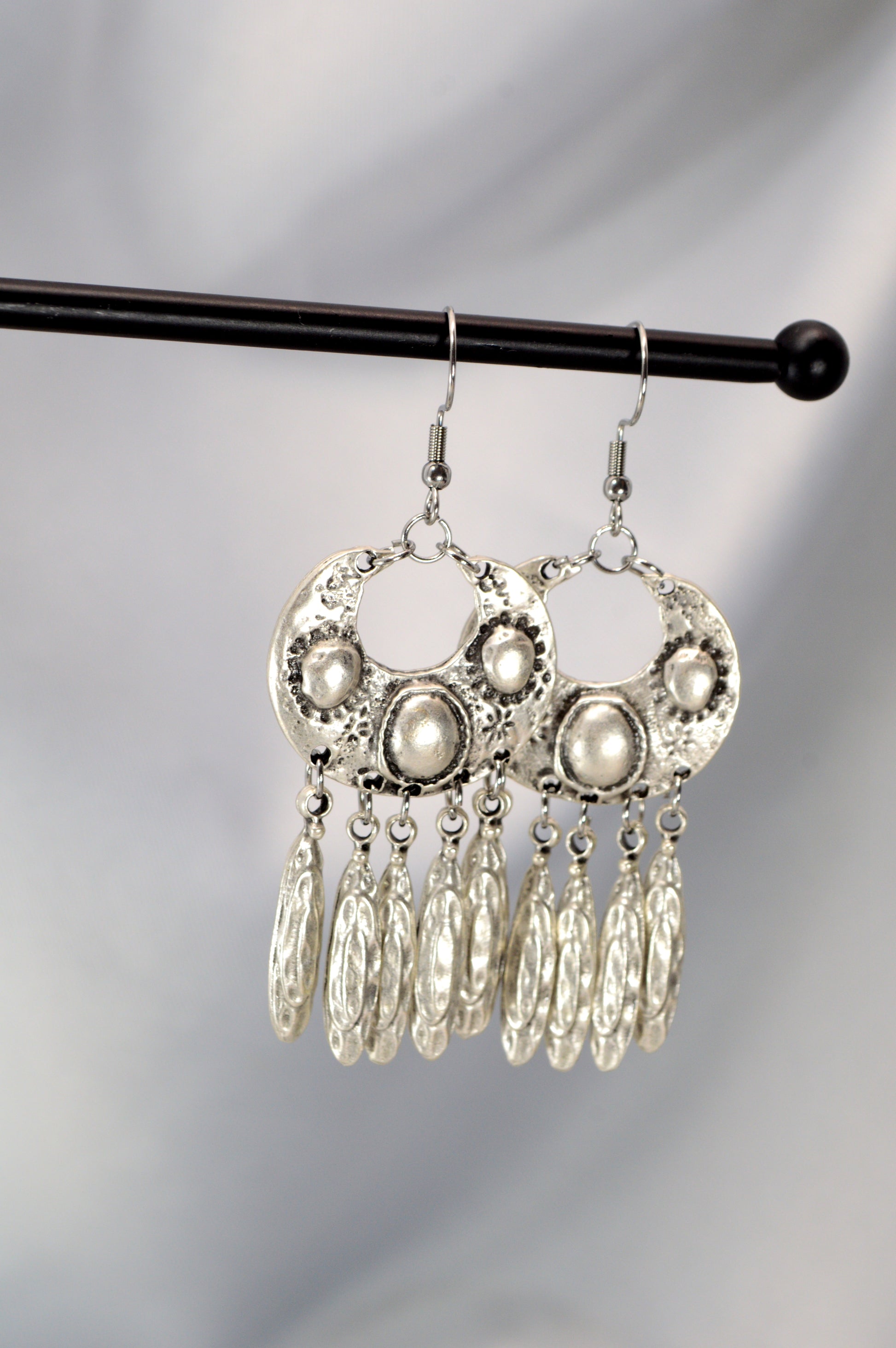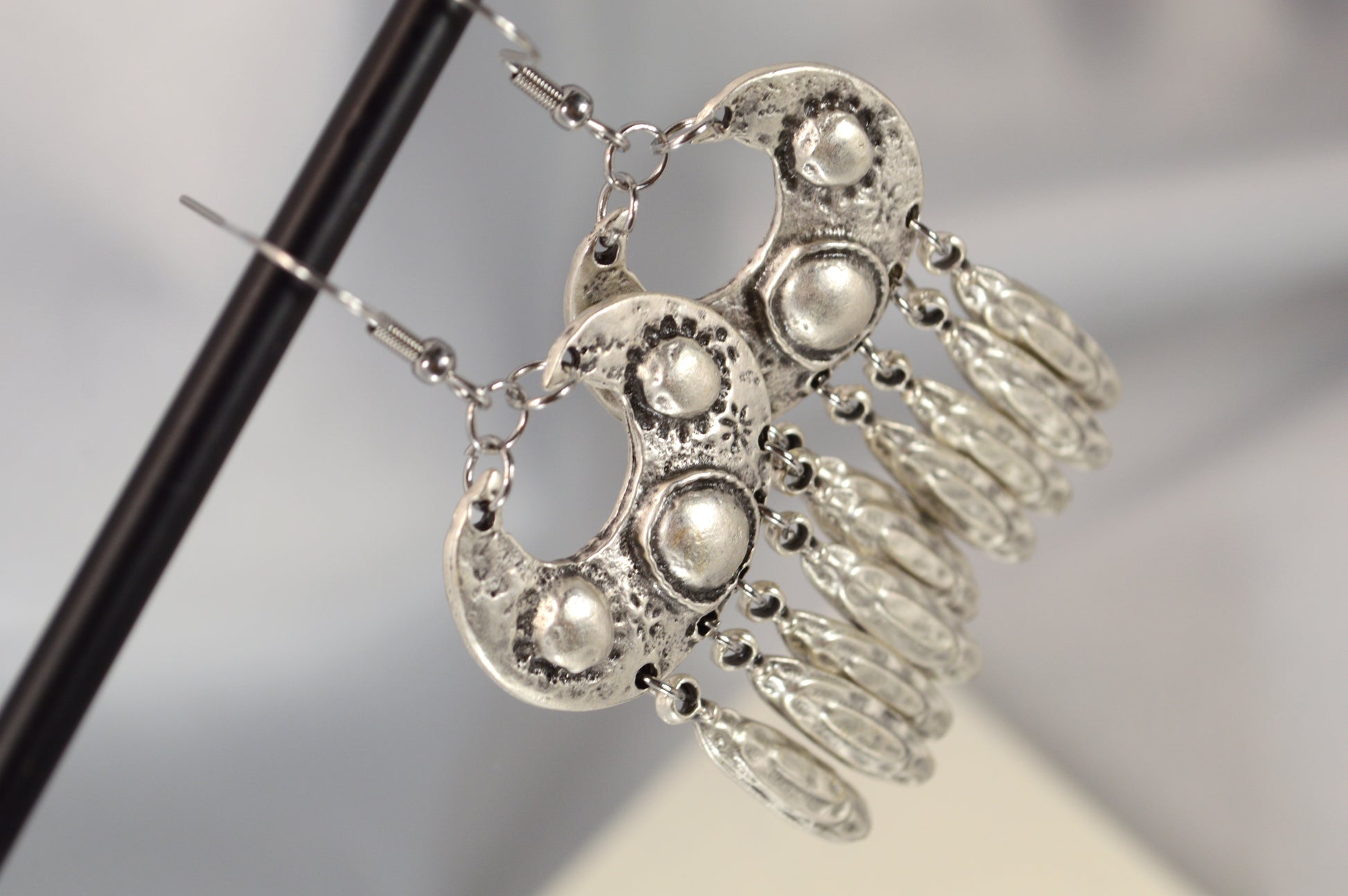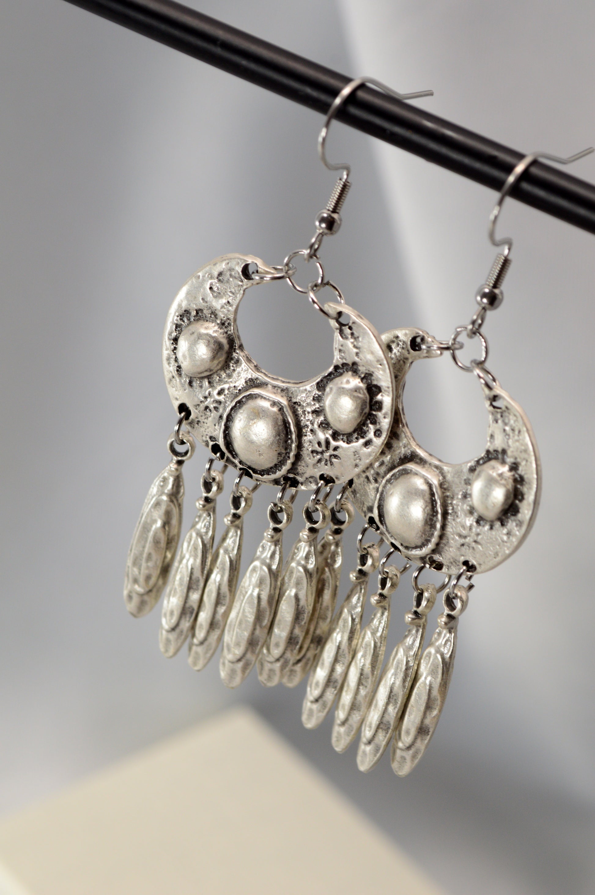 Boho Vintage Silver Dangle Earrings with Stainless Steel Hooks 7.5cm - 3"