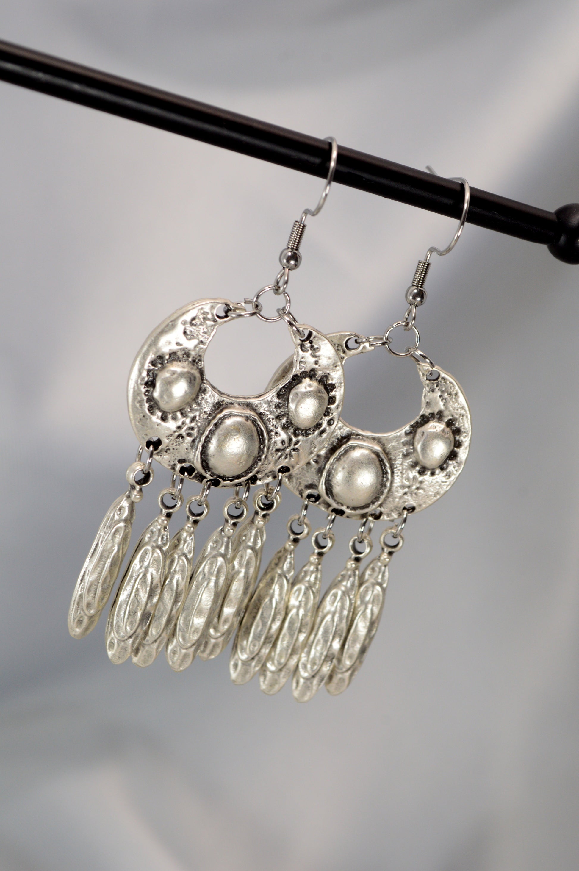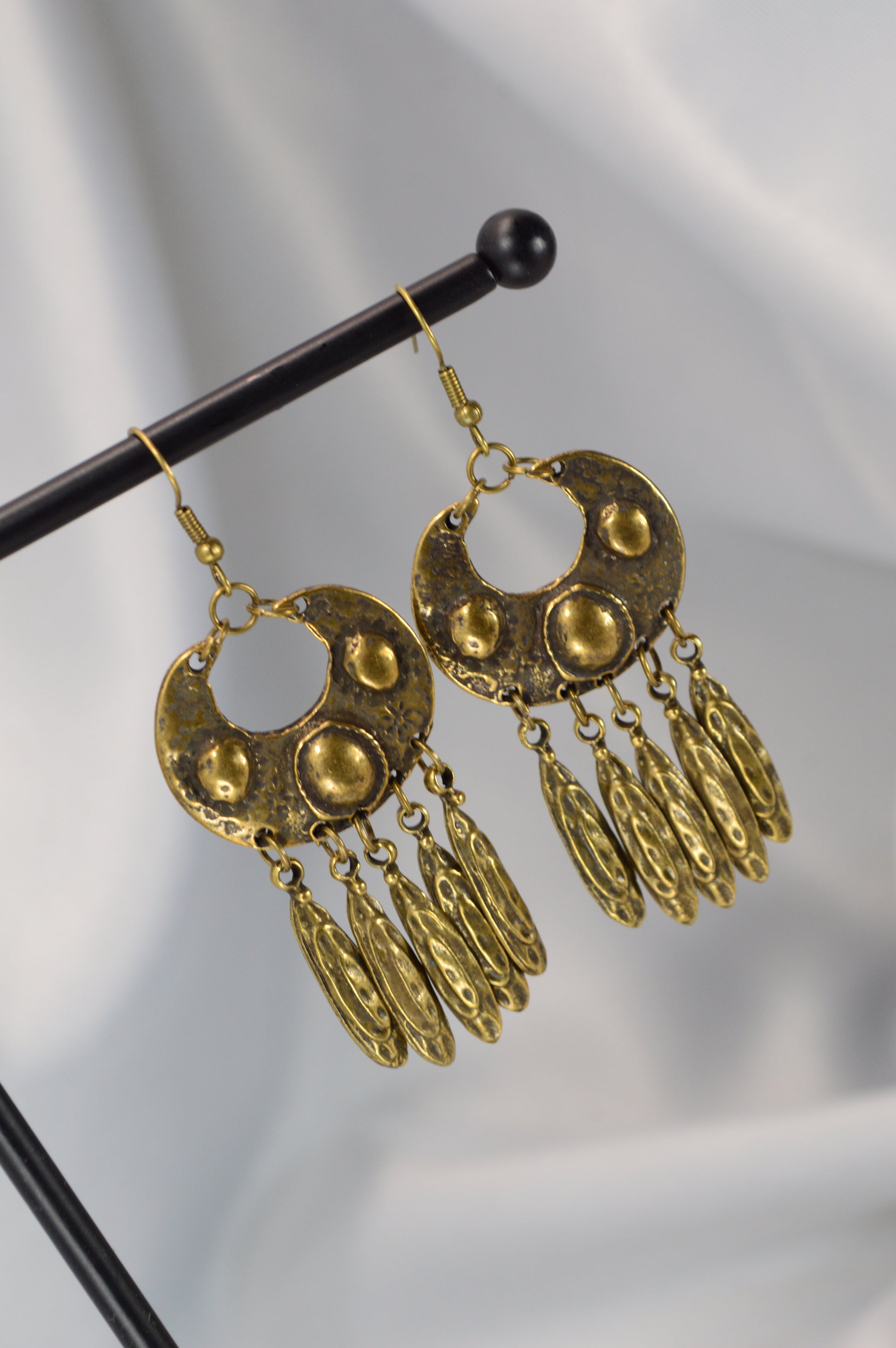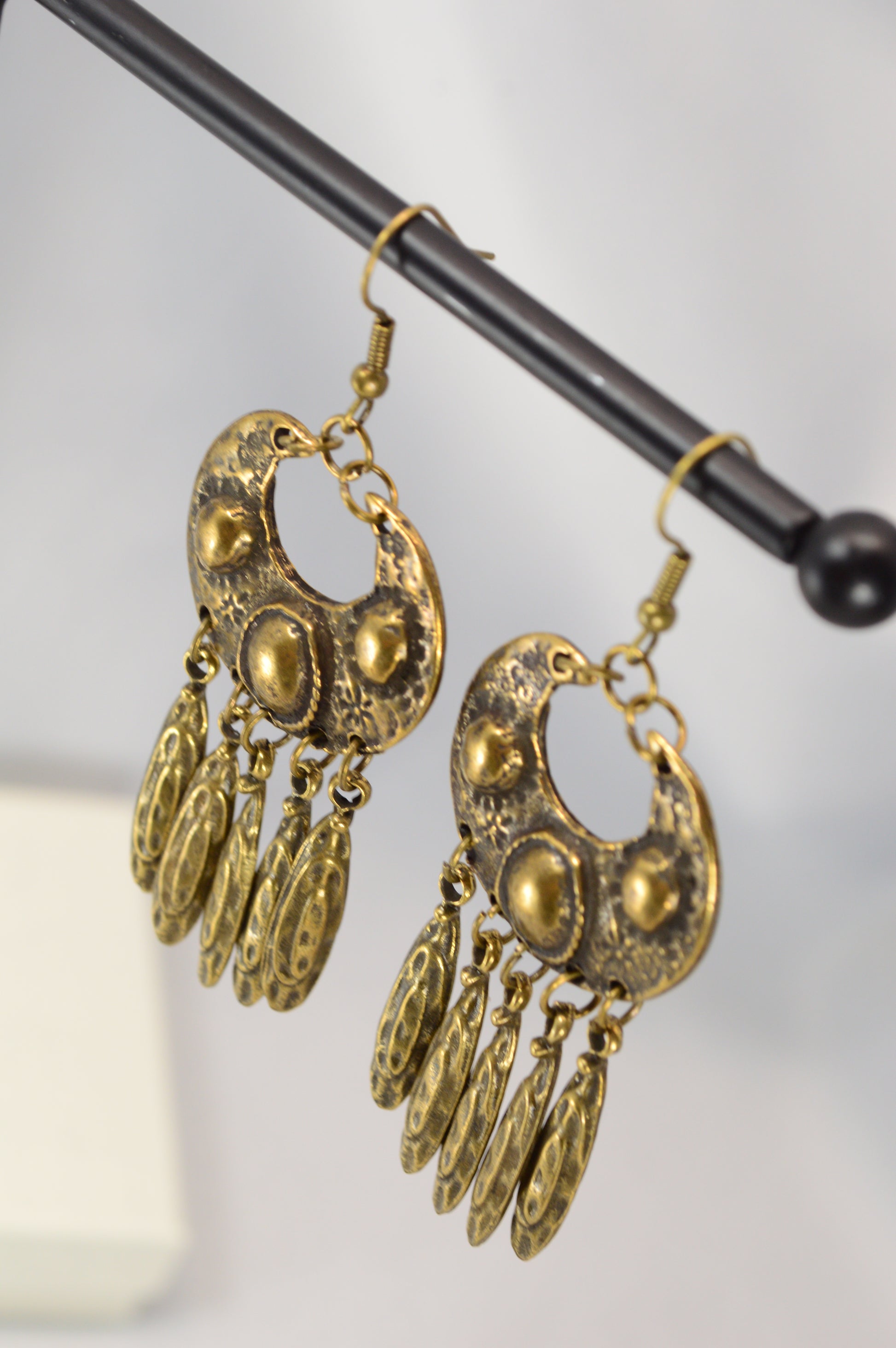 These boho vintage-inspired dangle earrings come in two rich finishes — classic antique silver and warm aged bronze — giving you a choice of mood and style. The textured crescent shape and long dangling charms create a handcrafted ethnic look, perfect for bohemian, festival, gypsy, tribal or retro outfits. Stainless steel hooks ensure comfort, durability and everyday wearability. A thoughtful gift for anyone who loves expressive statement jewelry; ideal for music festivals, beach trips, weekend markets or adding a bold accent to a minimalist outfit. Wear the silver pair with cool-toned dresses for a bright shimmer, or choose the bronze finish to complement earthy colors and warm evening looks.