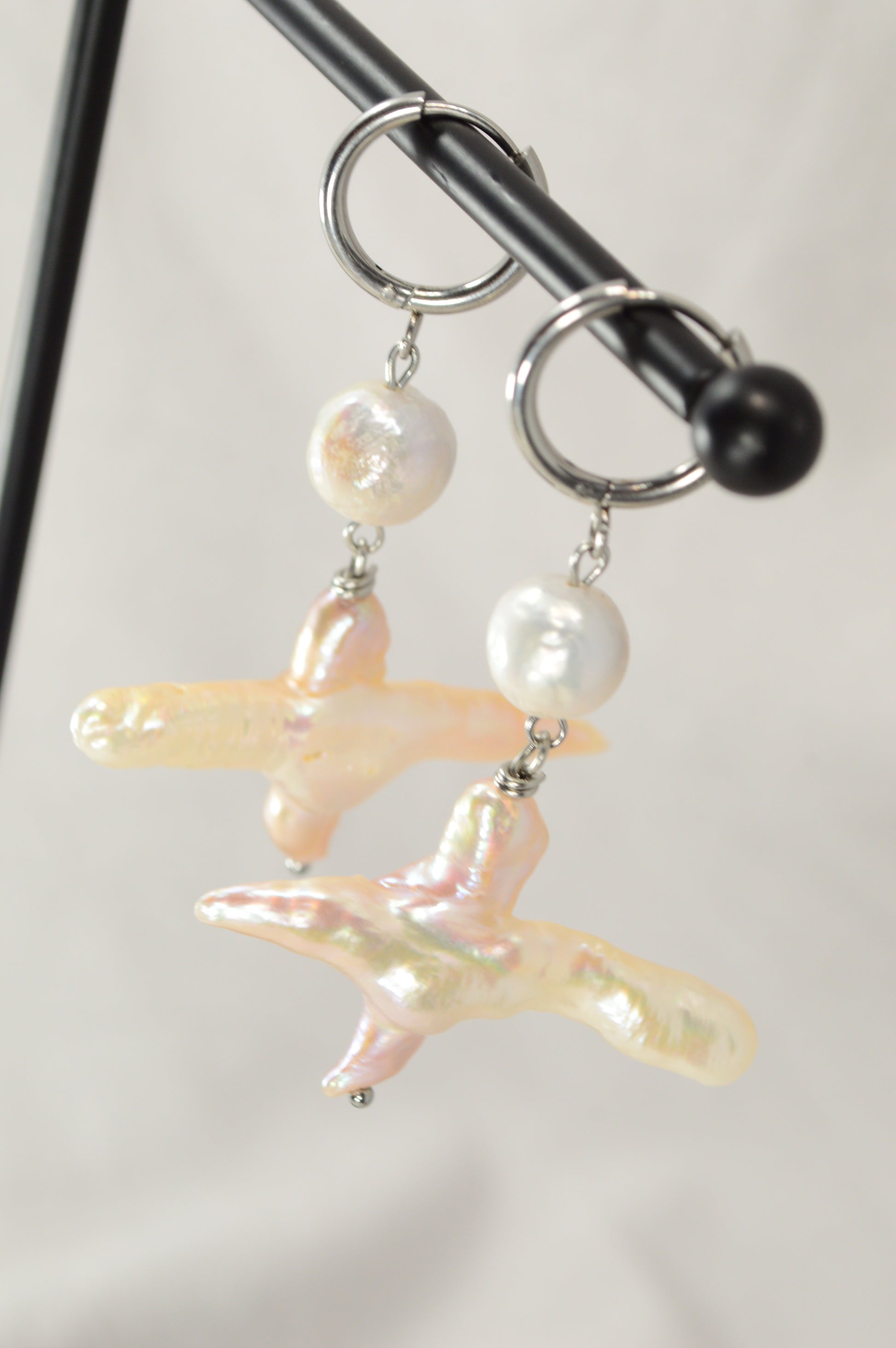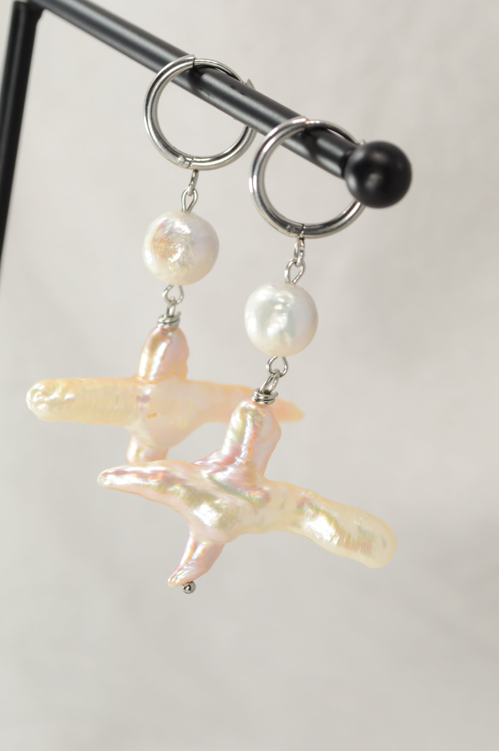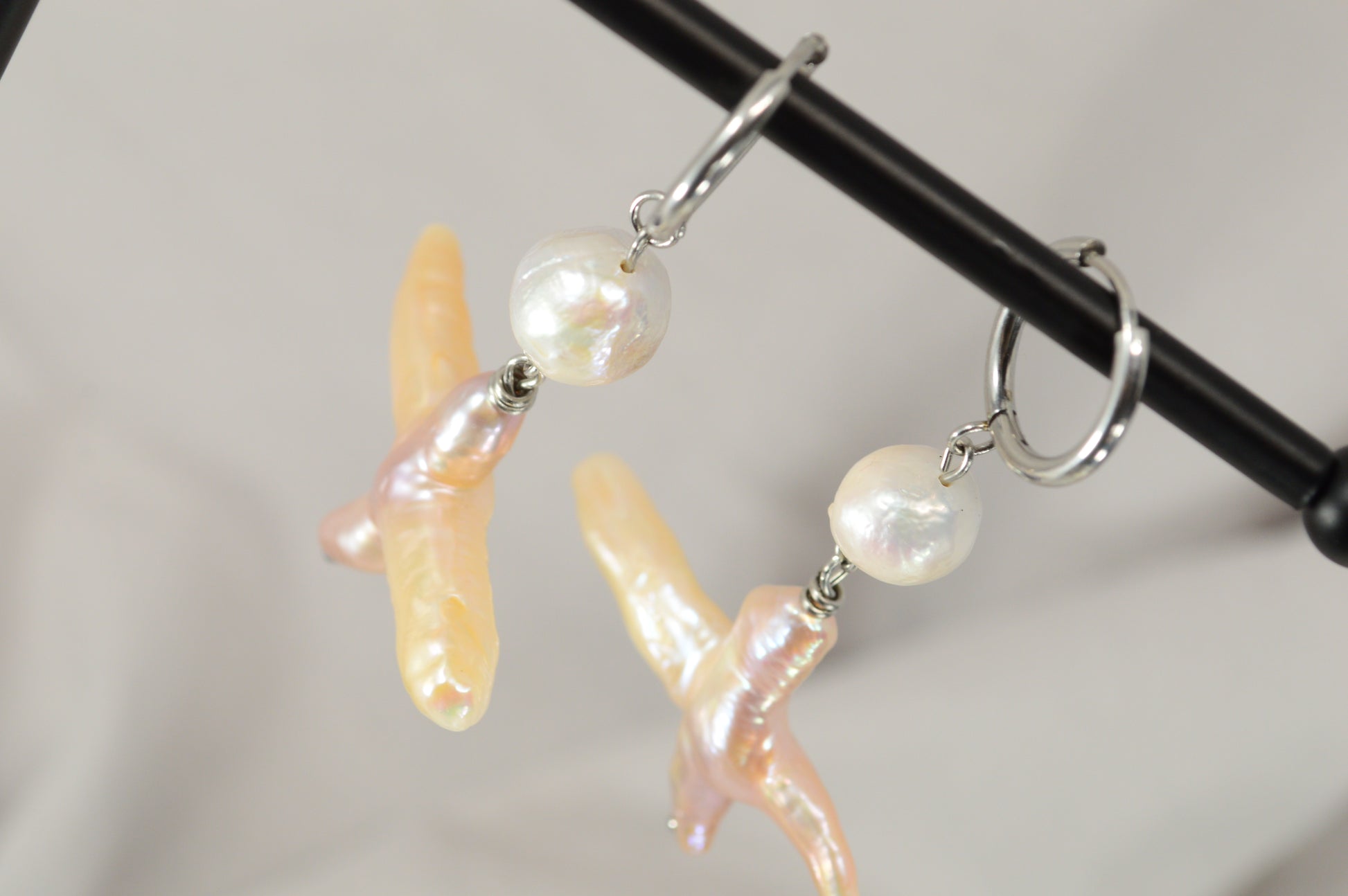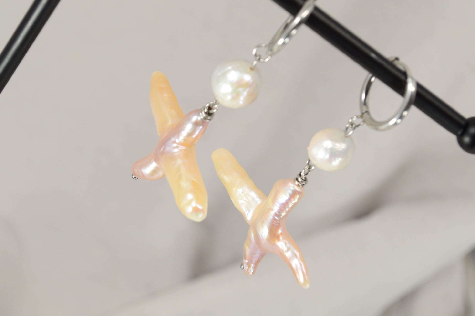 The organic cross-shaped pearl turns these earrings into a piece of wearable art — bold, original, and impossible to ignore. No two pearls are ever identical, making your pair as unique as you are.