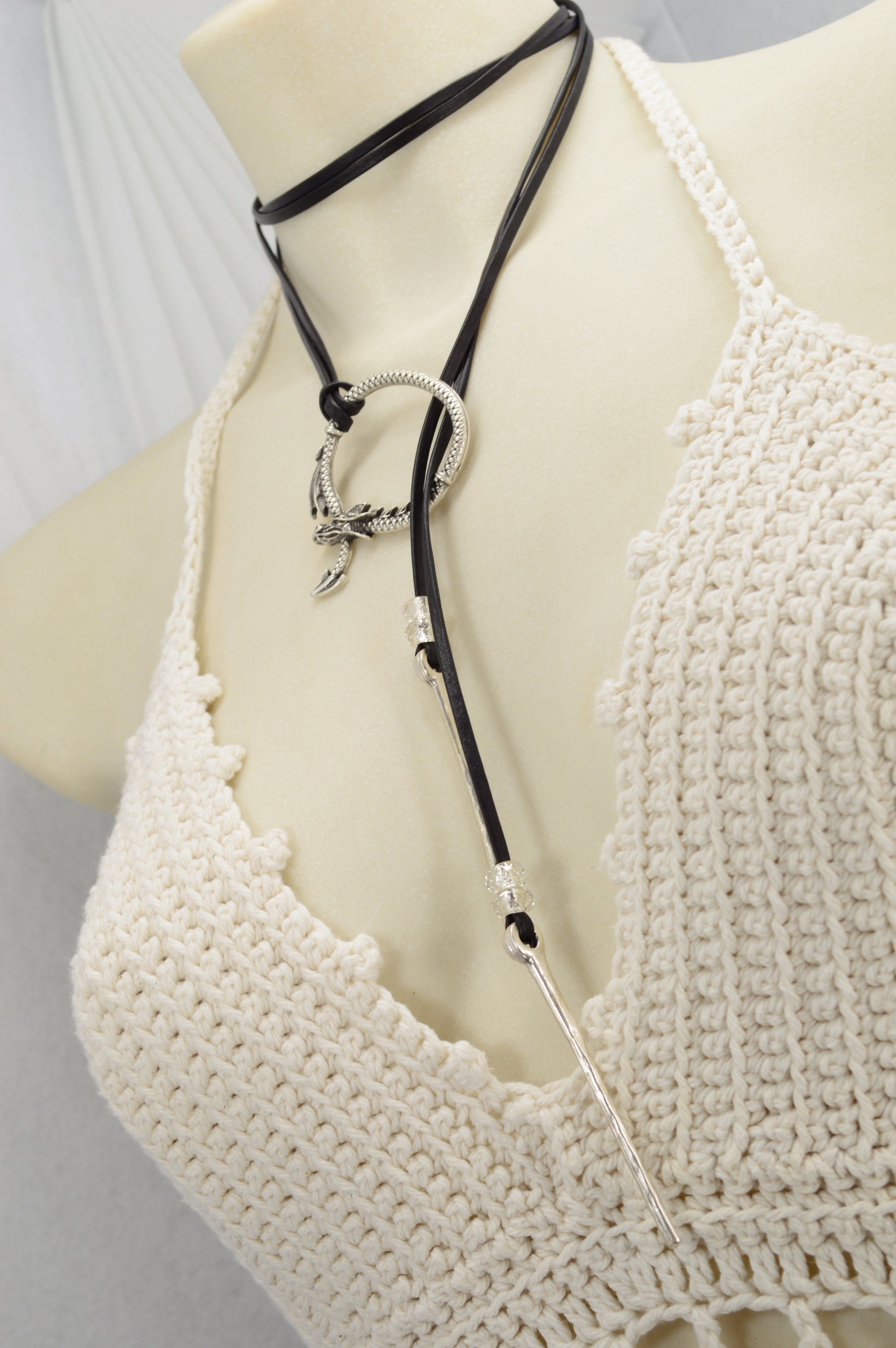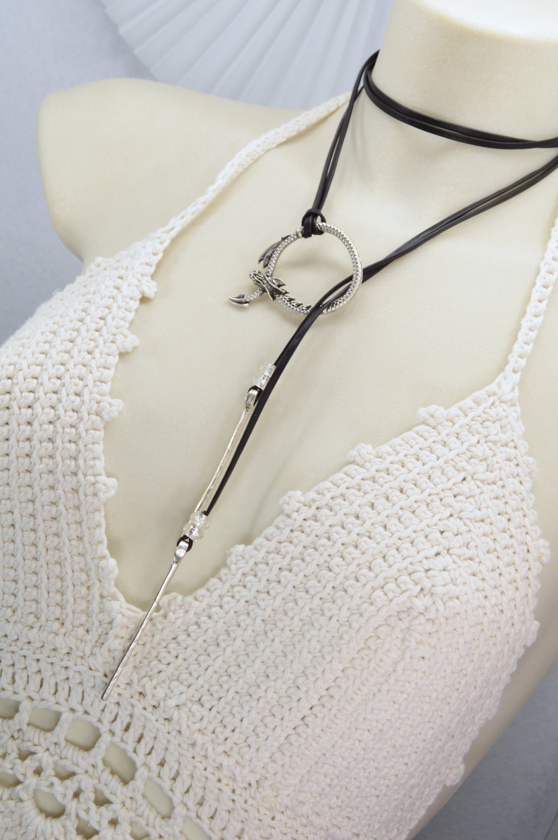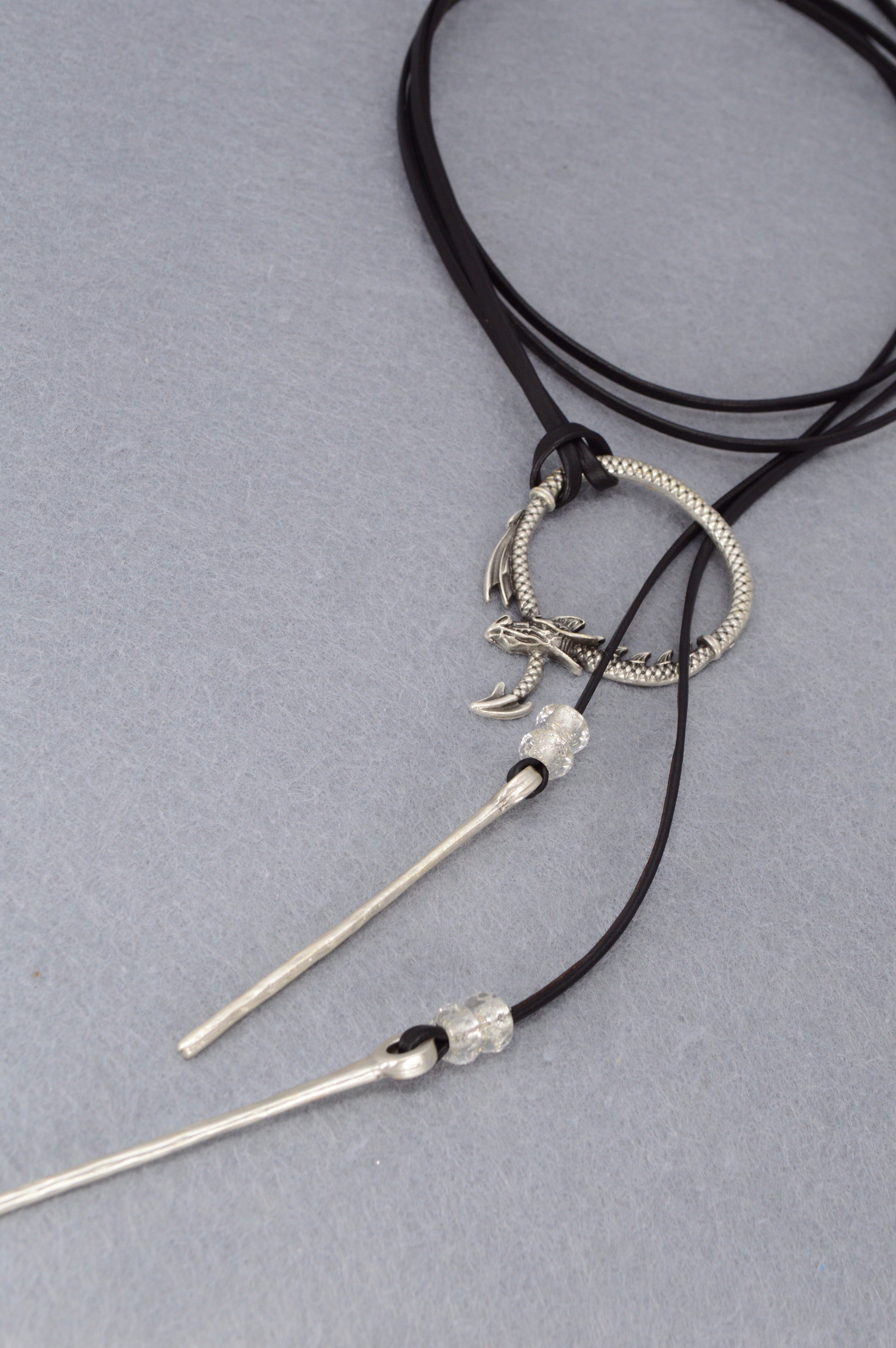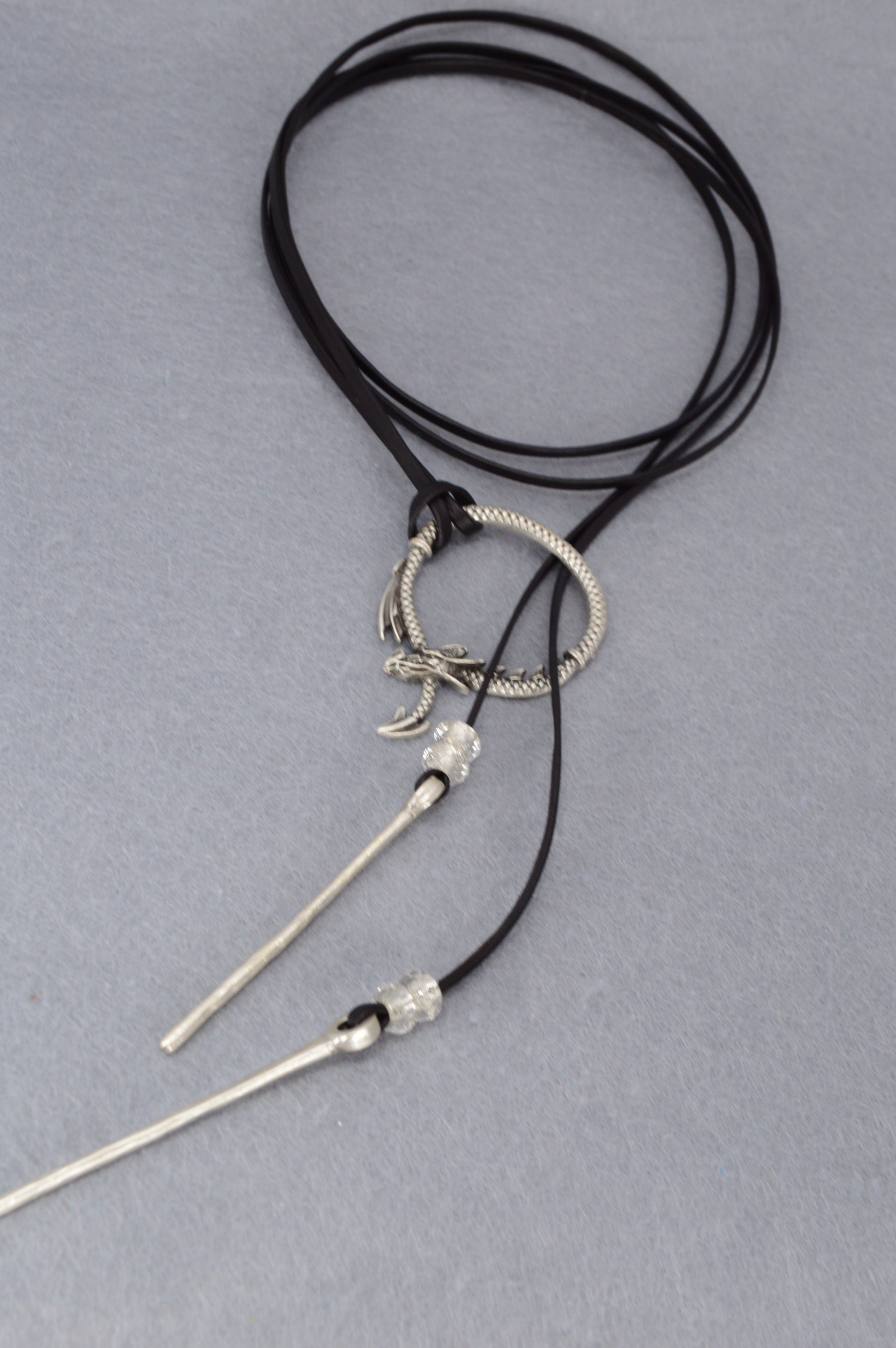 Dragon Circle Necklace | Boho Leather Choker with Silver Dragon Charm