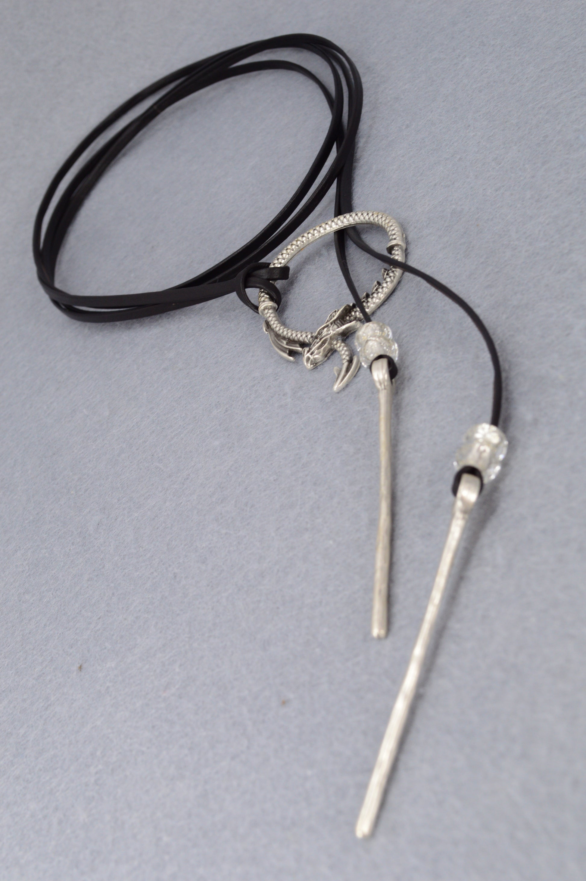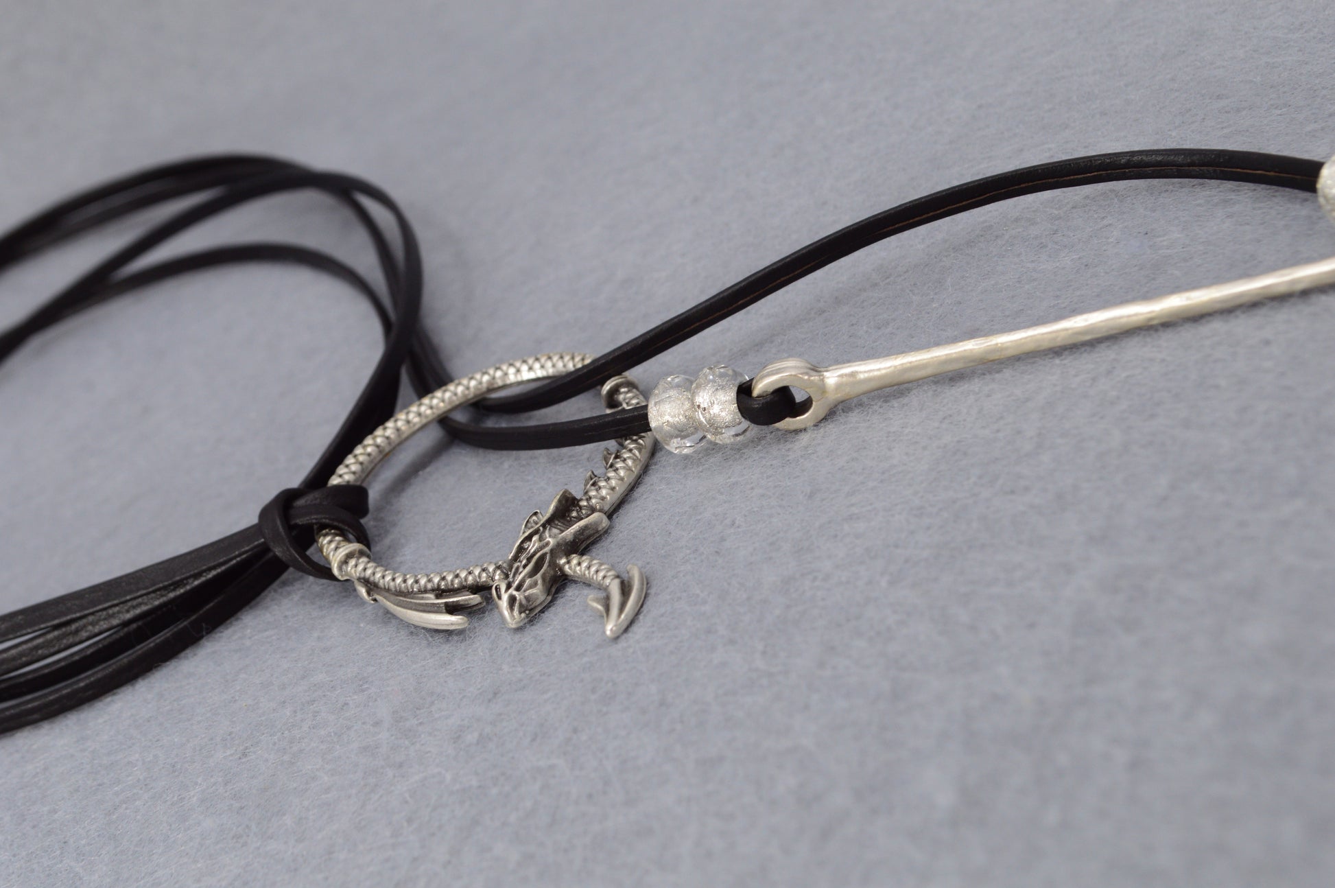 🖤 Handcrafted on sleek black leather cord, it combines boho chic with dark fantasy aesthetics.