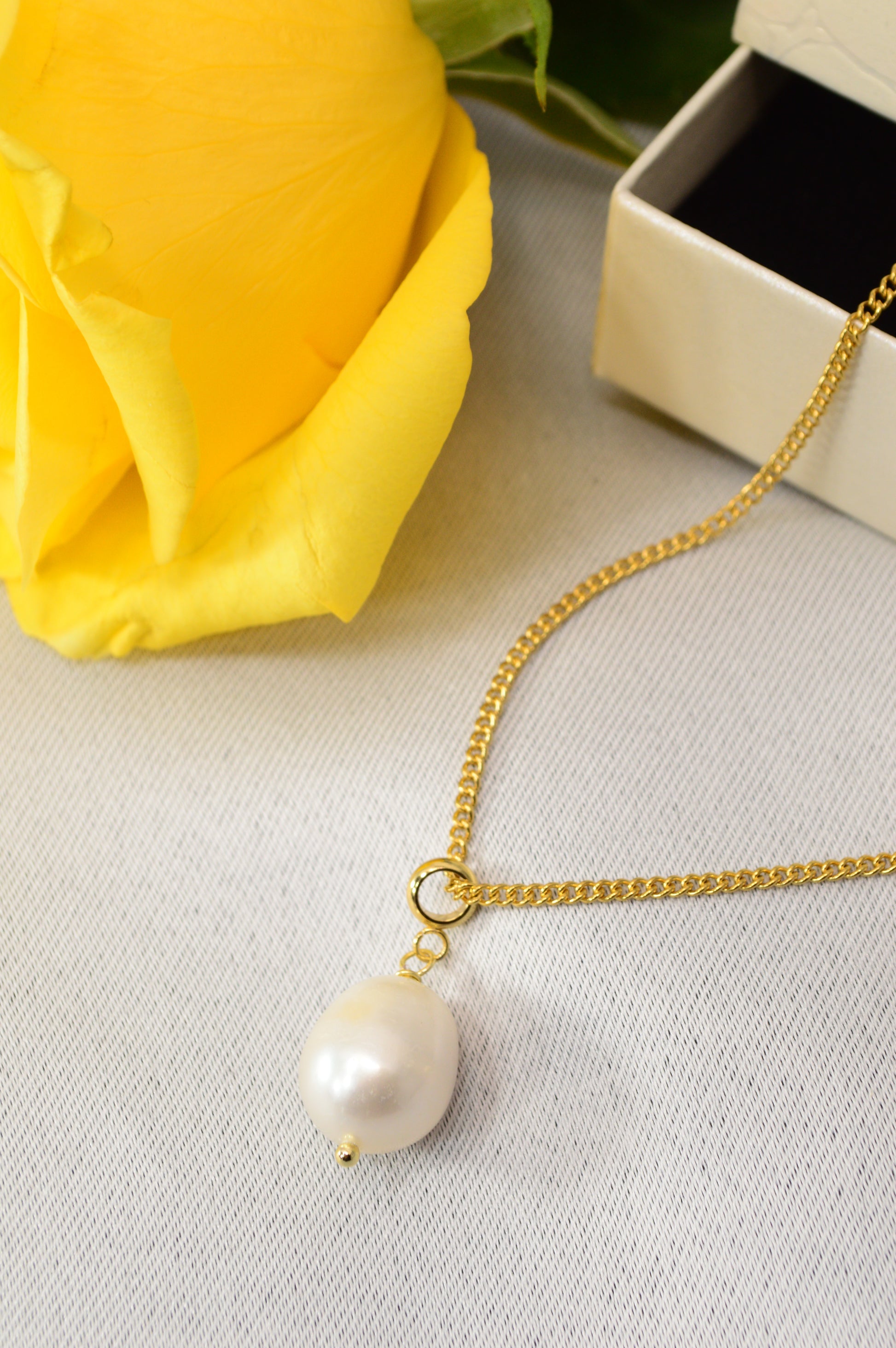 Freshwater Pearl Pendant Necklace – Gold Stainless Steel Chain, 3 Pearl Shapes