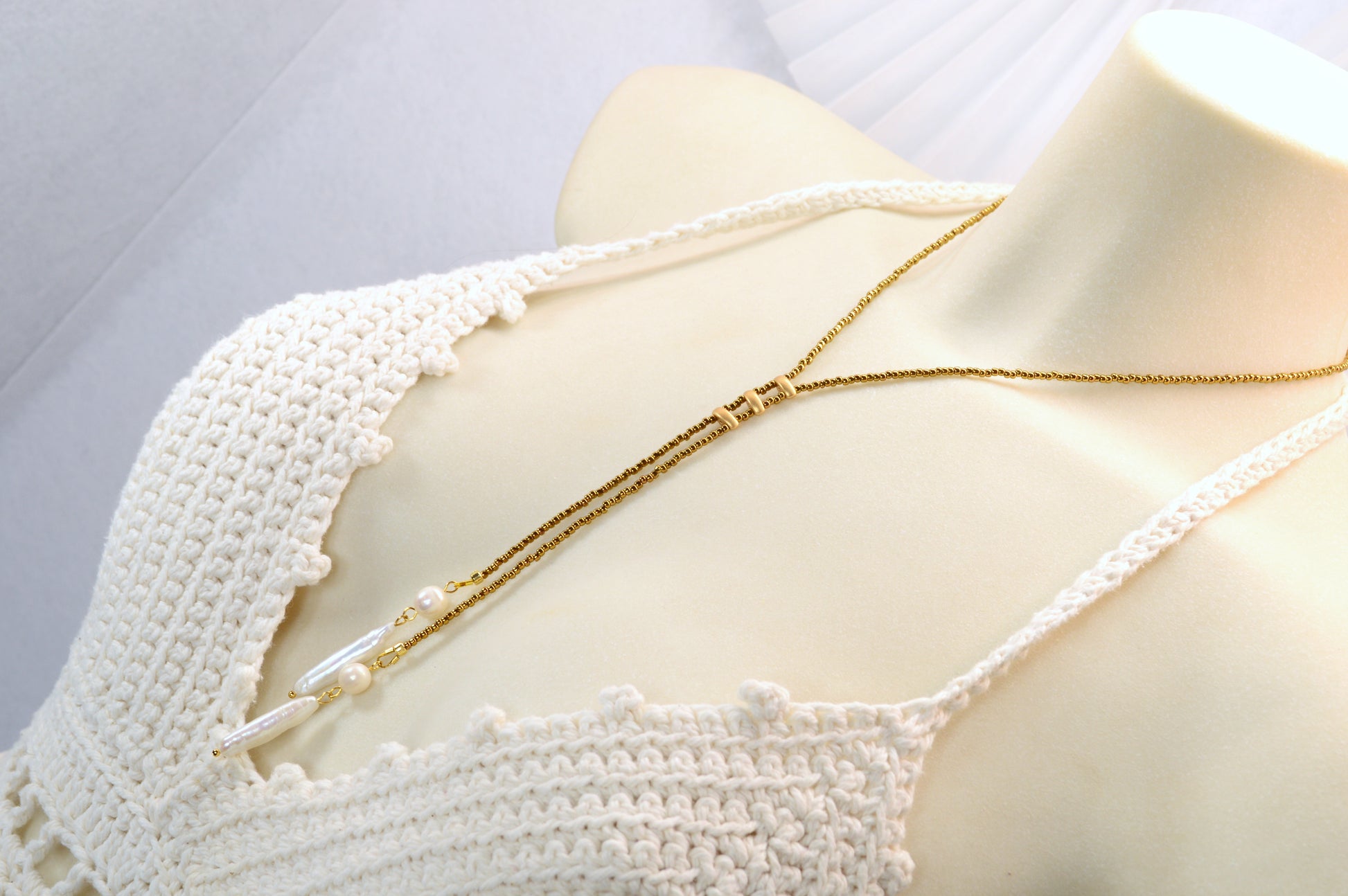 Gold Boho Pearl Lariat Necklace – Freshwater Stick Pearl Y Necklace