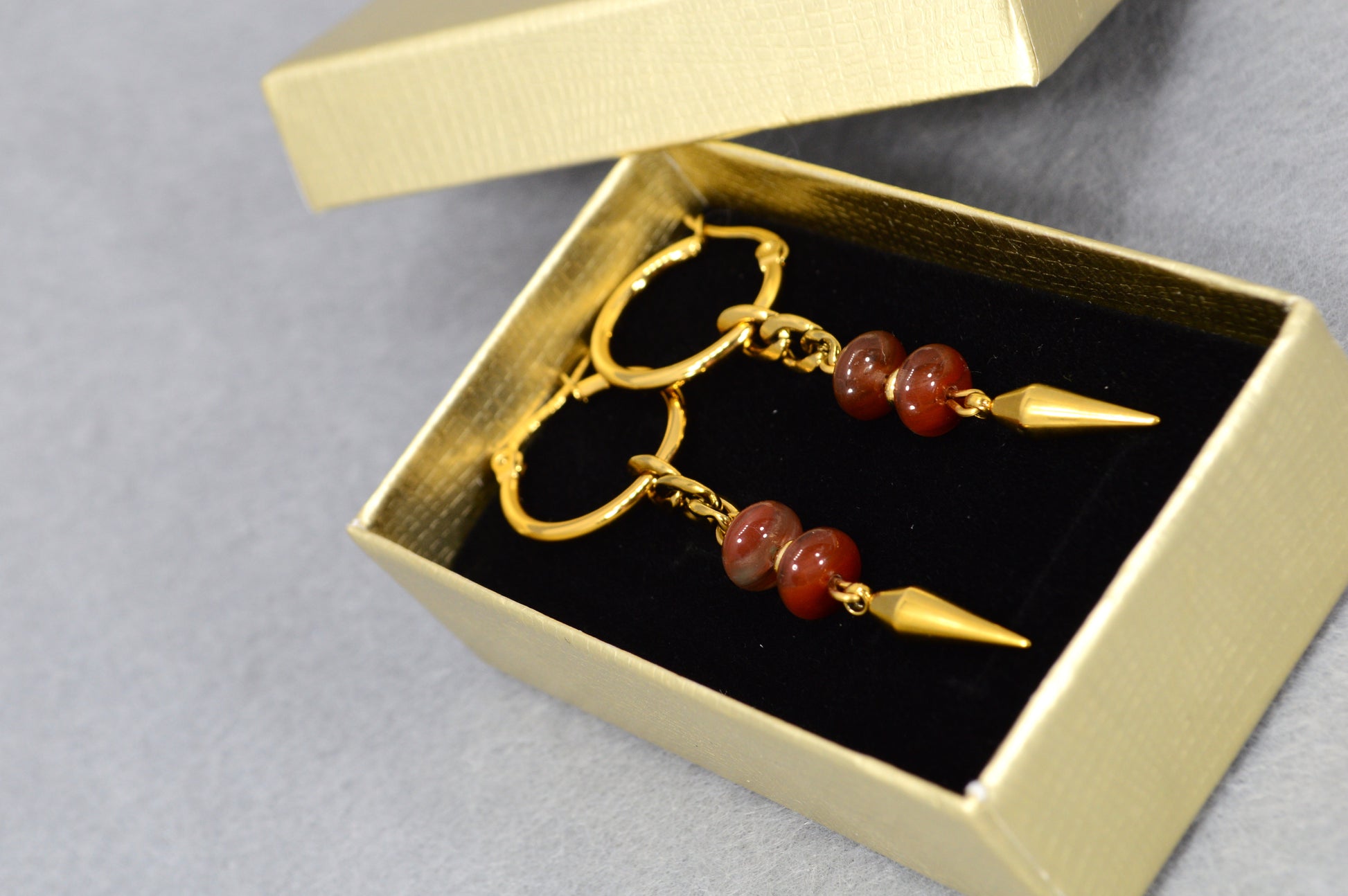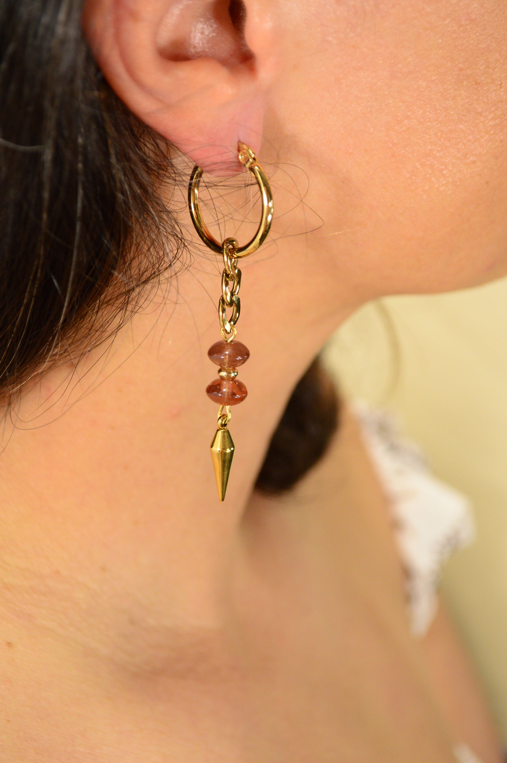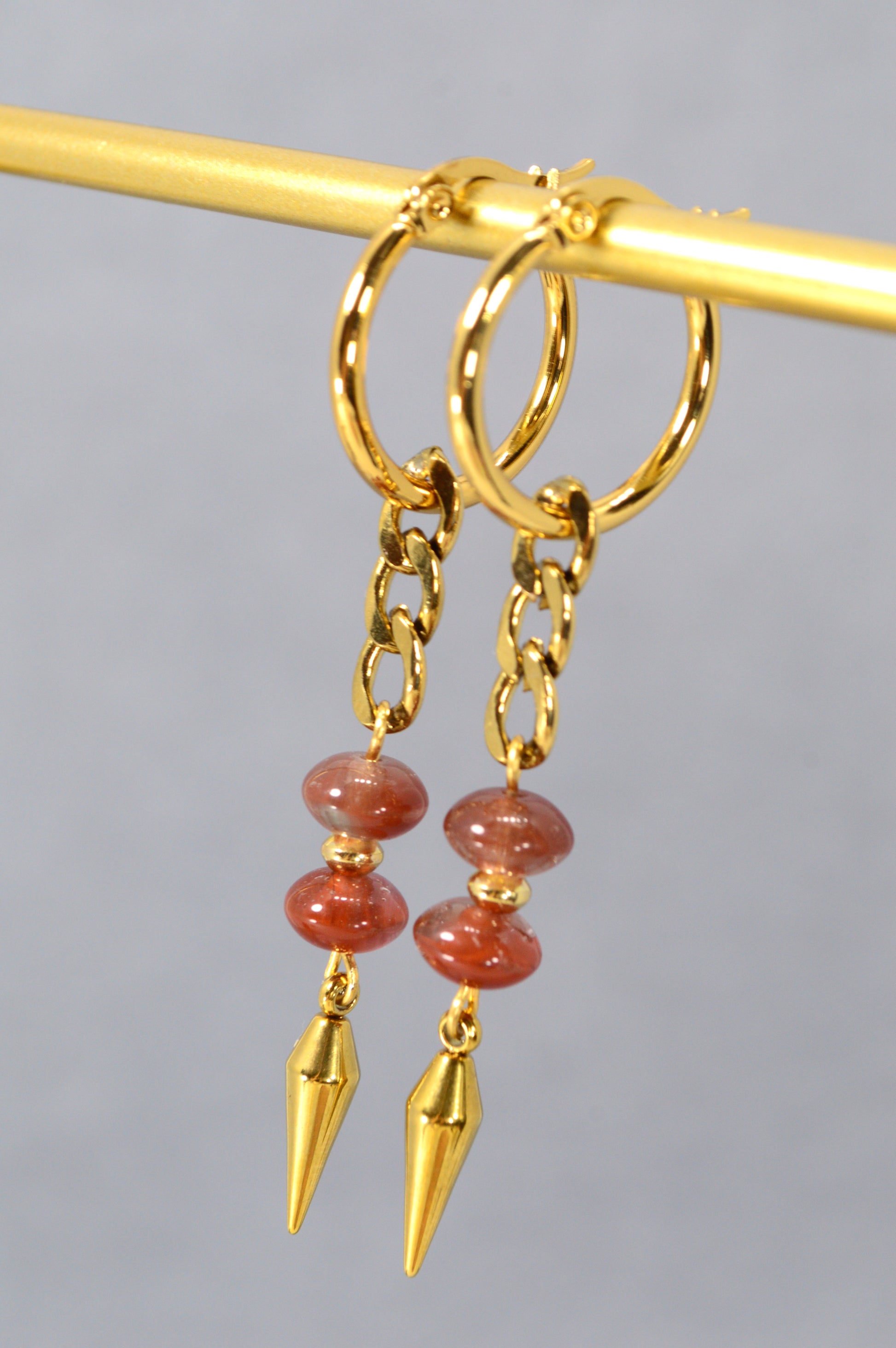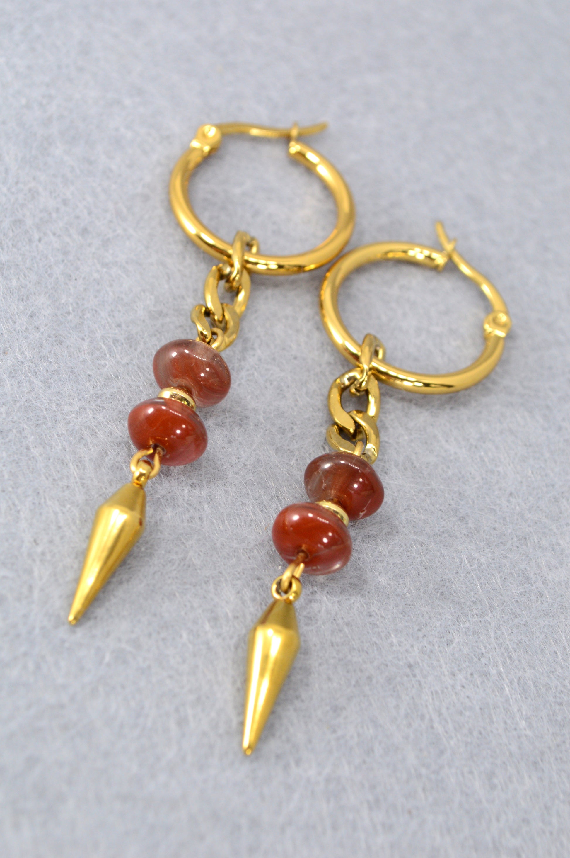 Add a bold statement to your style with these gold hoop drop earrings featuring premium Czech glass beads and a sleek stainless steel spike.
