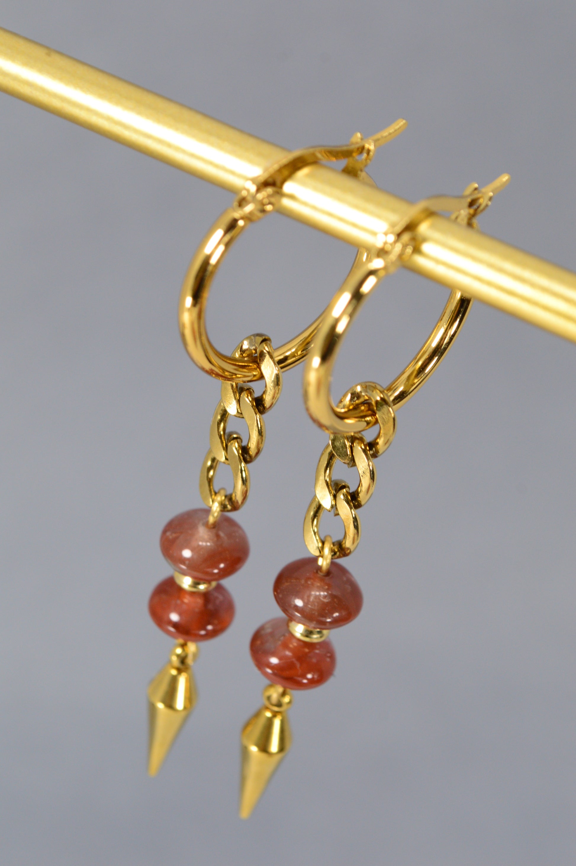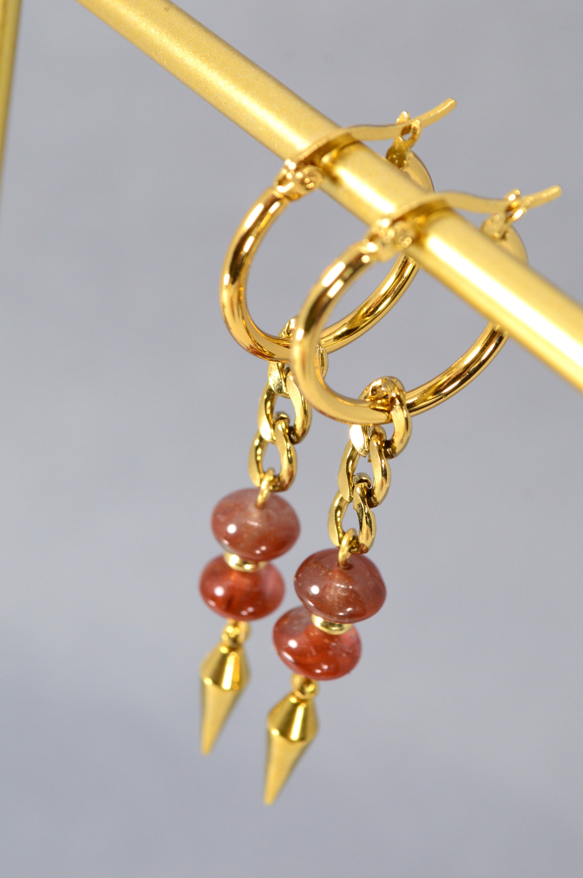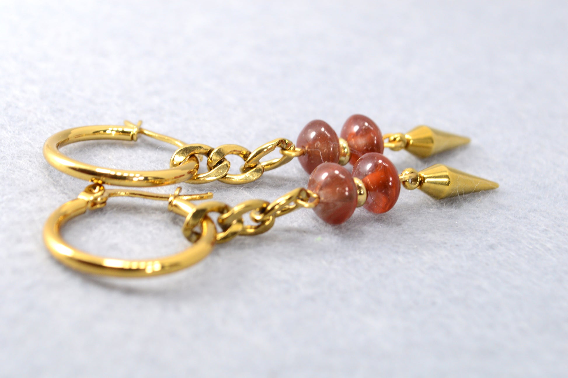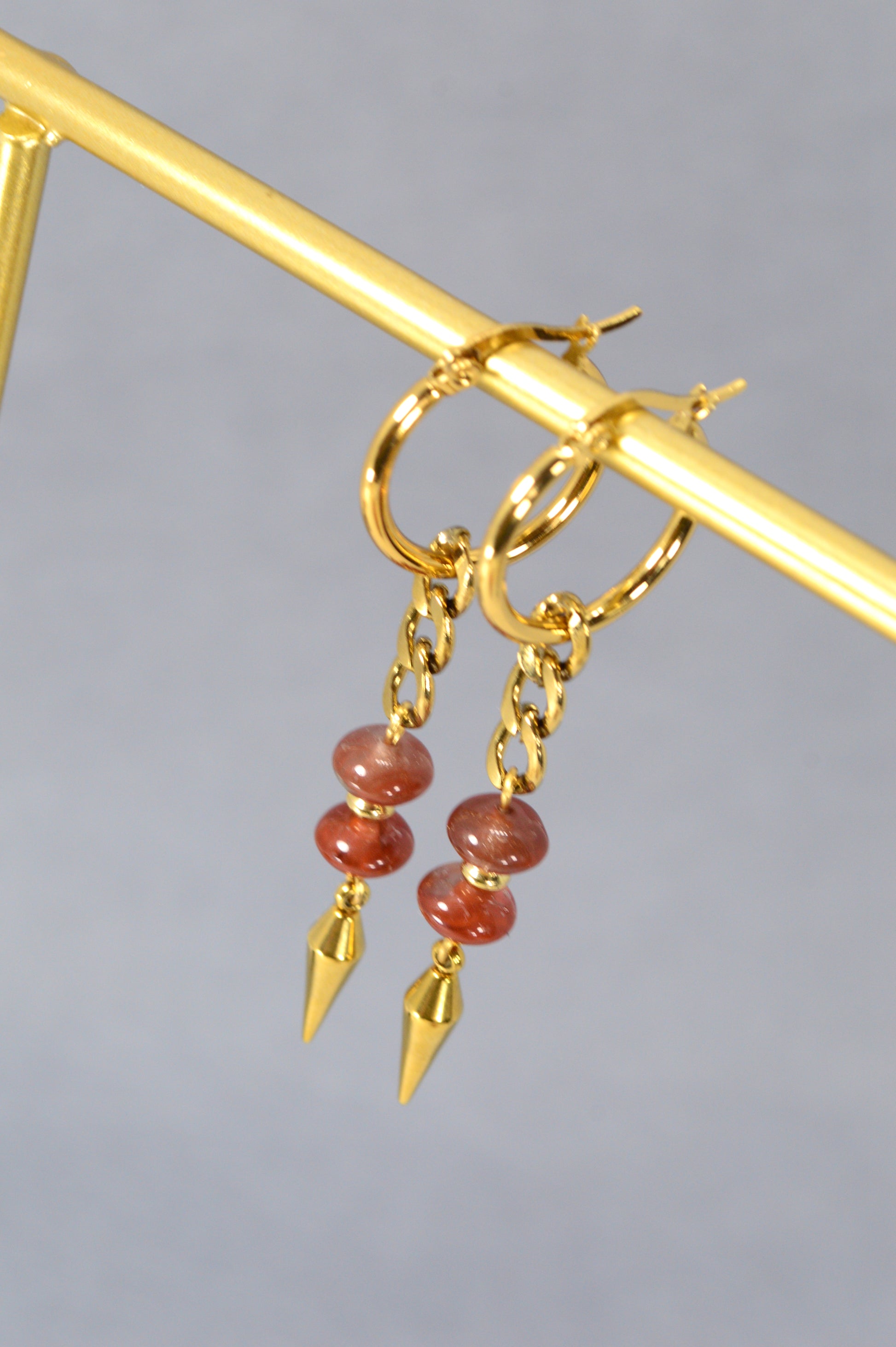 Add a bold statement to your style with these gold hoop drop earrings featuring premium Czech glass beads and a sleek stainless steel spike.
