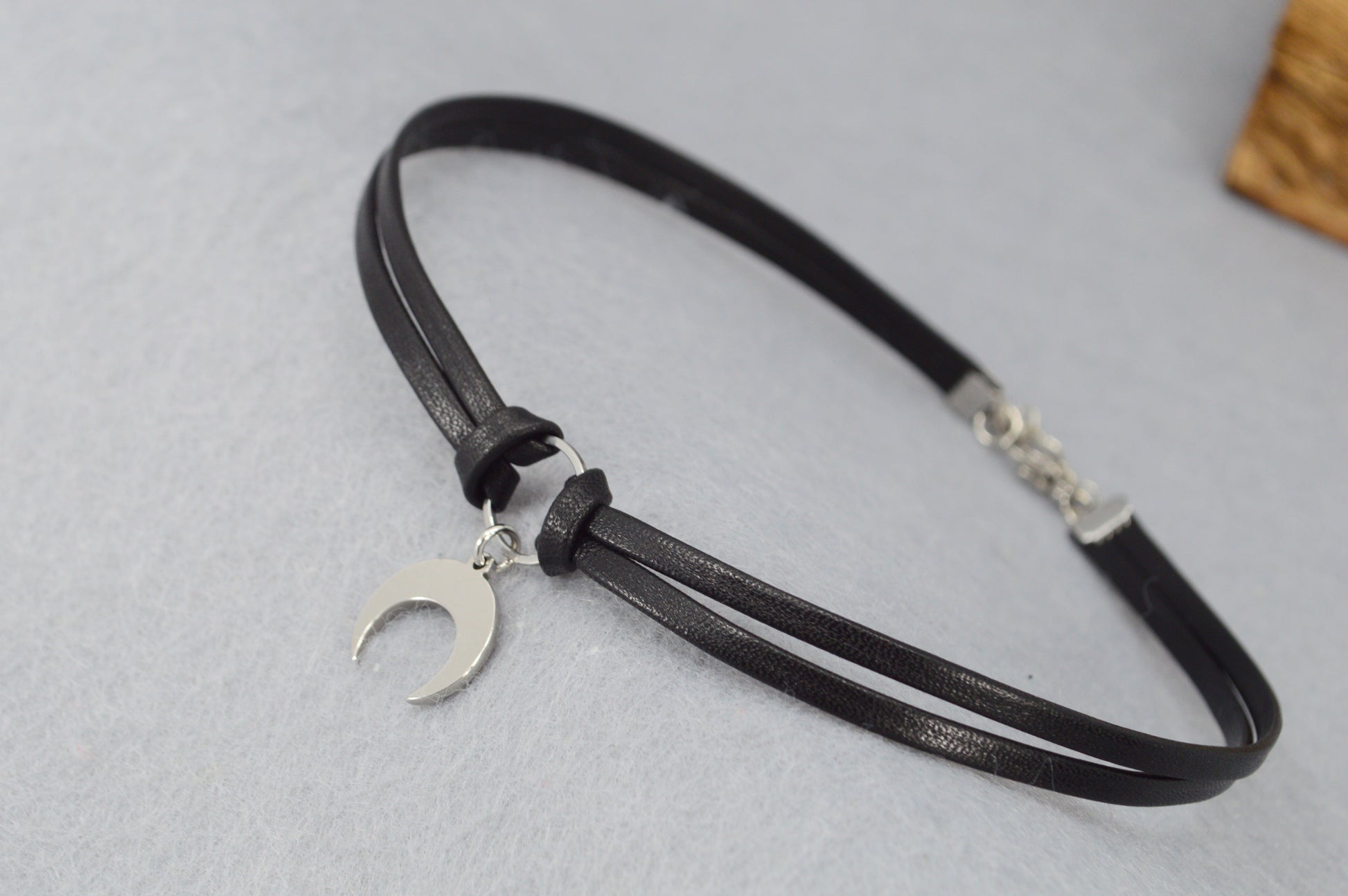 Minimalist Leather Choker Necklace – 5 Charm Options – Adjustable – Gothic, Punk, Boho, Pearl, Moon, Cross
