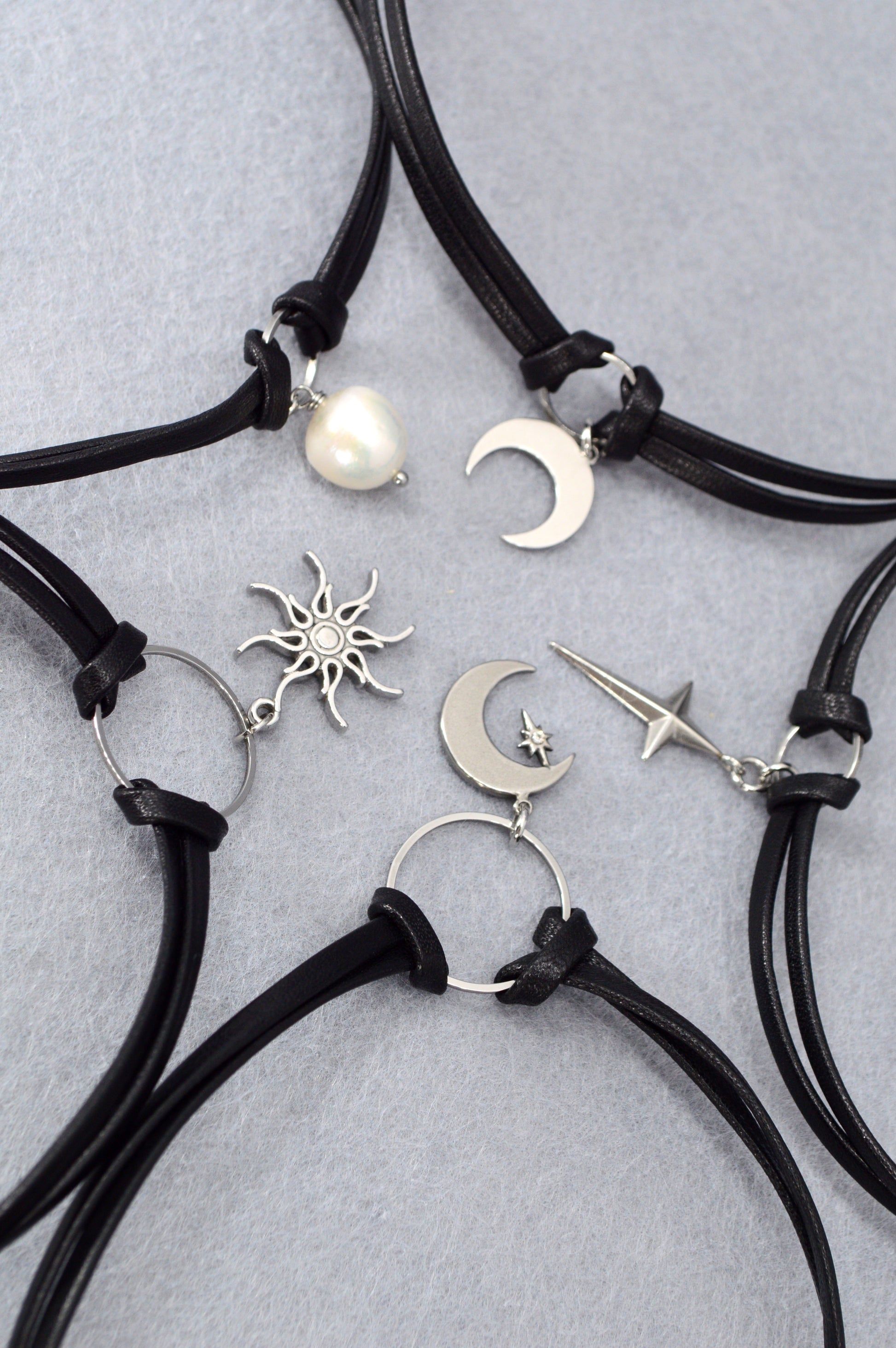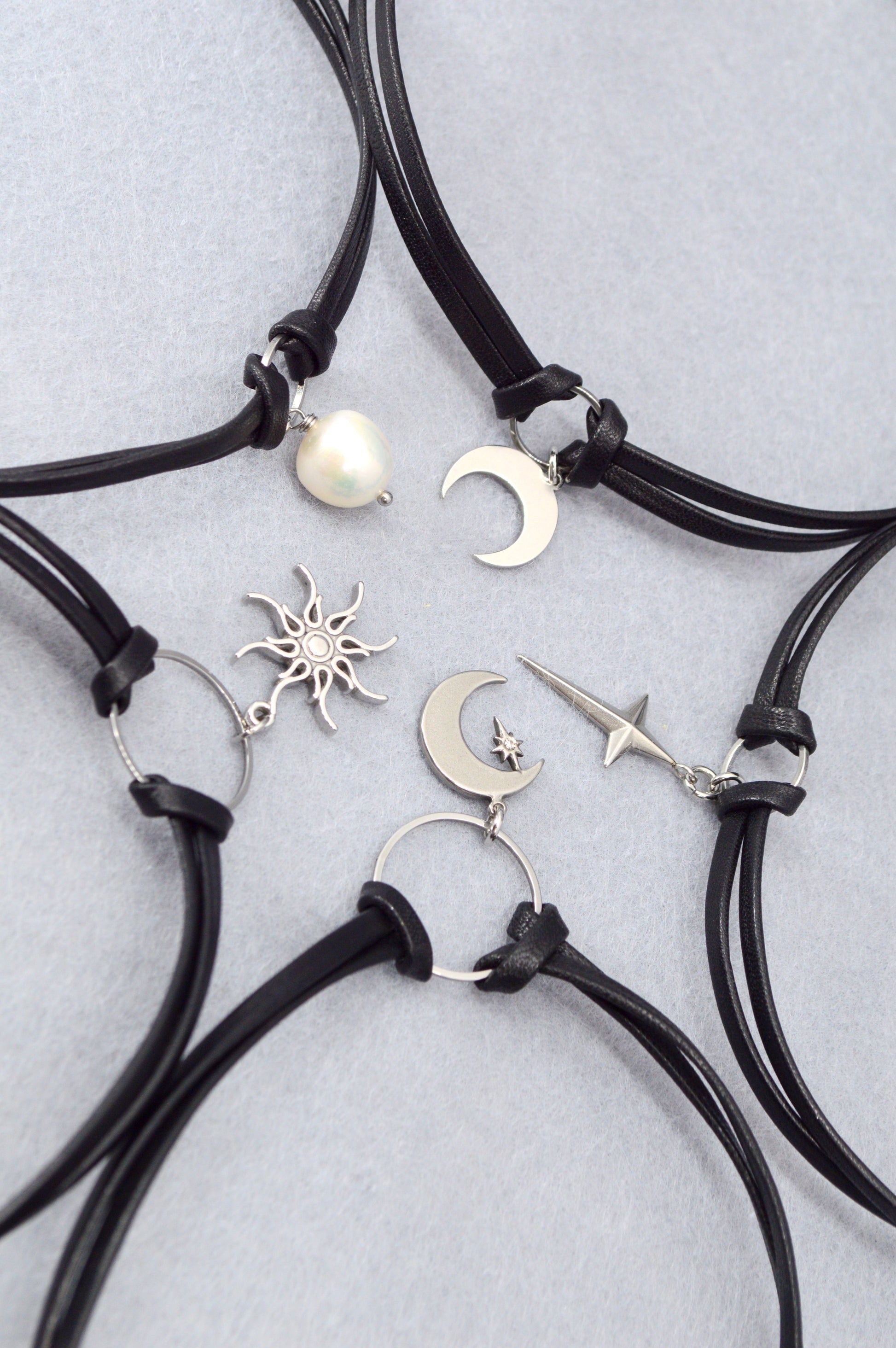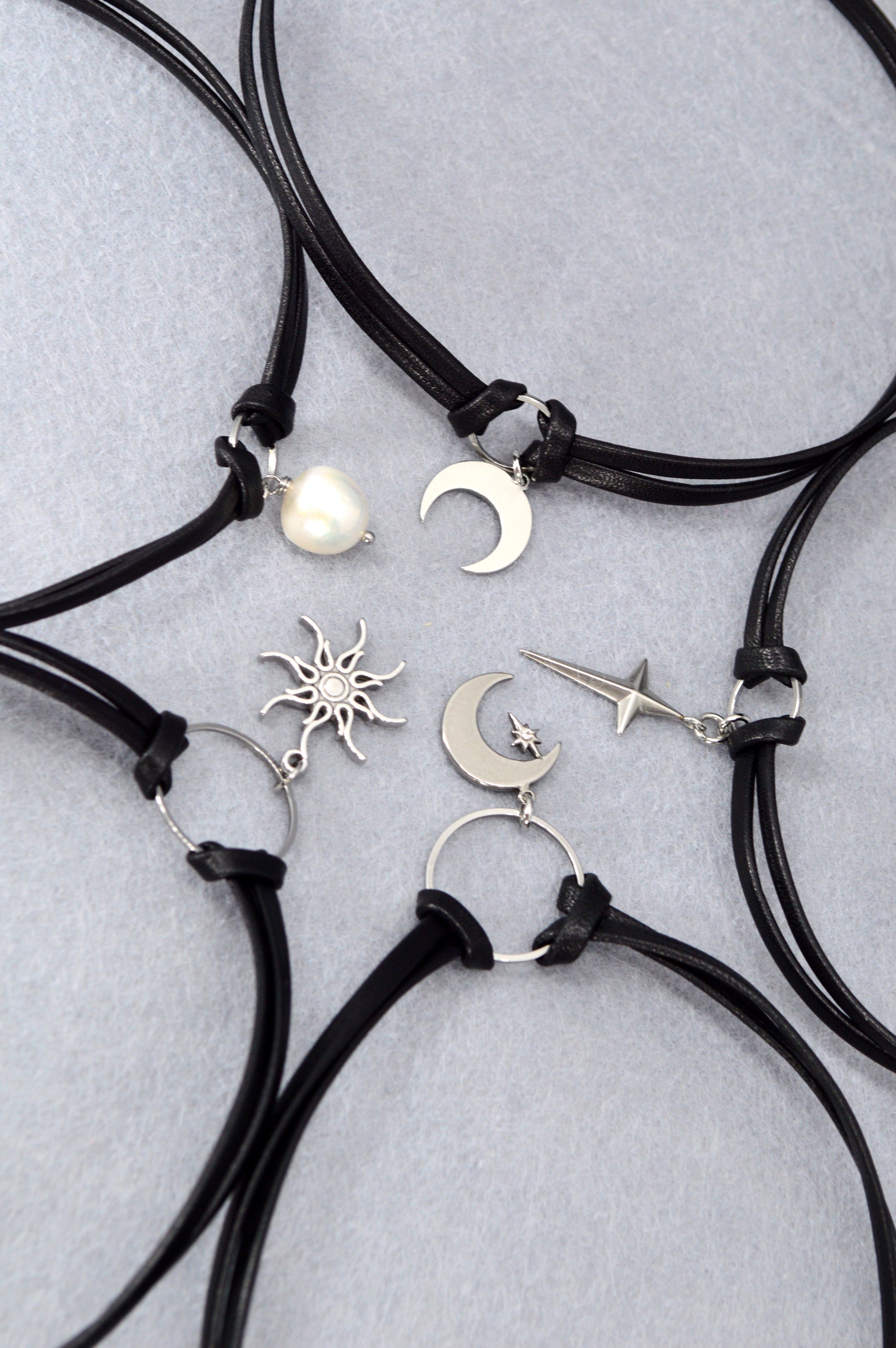 Elevate your everyday style with our handcrafted minimalist leather choker collection, featuring five unique charm options. Whether you're feeling celestial, edgy, or timeless, there's a charm for every mood and moment.