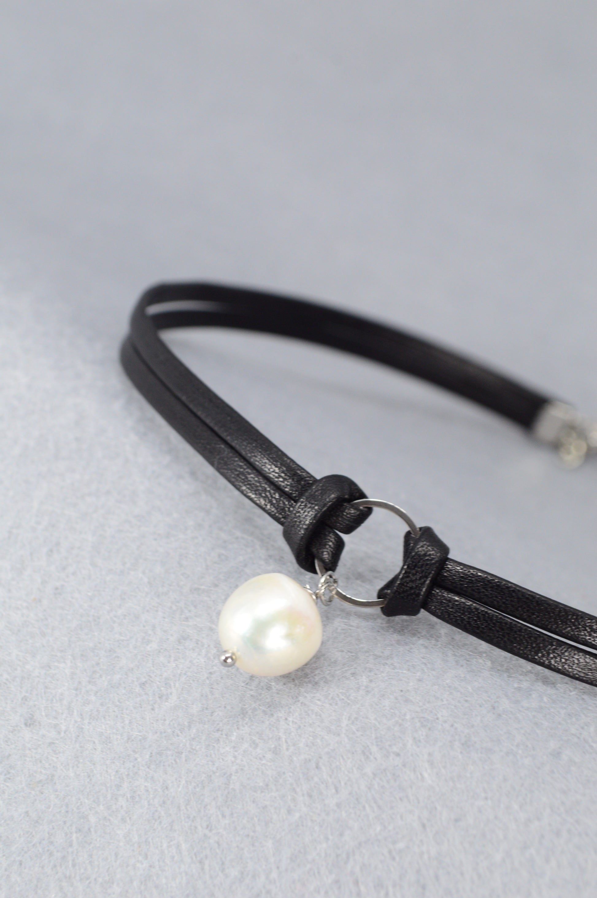 Materials: leather, stainless steel, freshwater pearl (for pearl option)