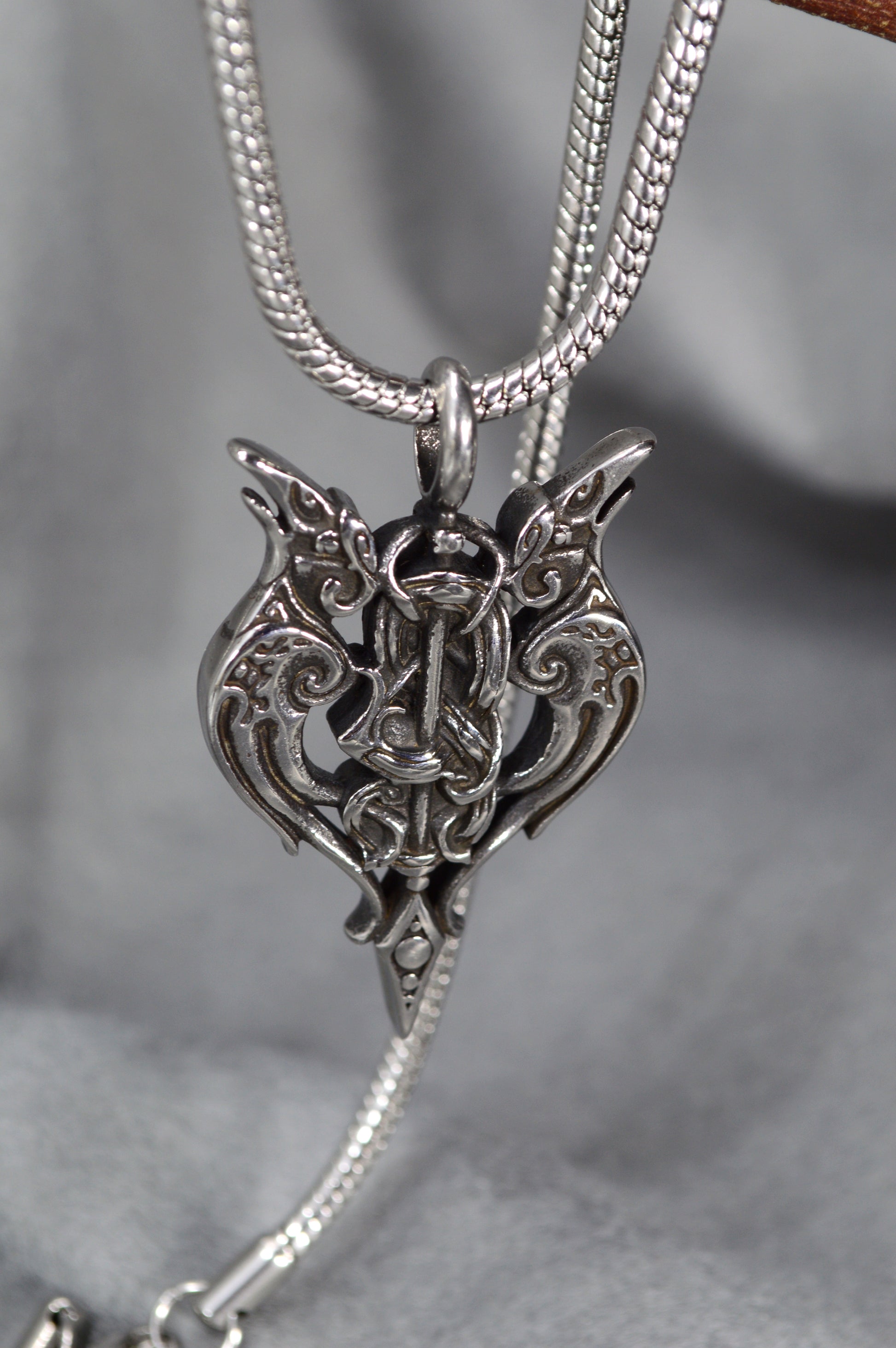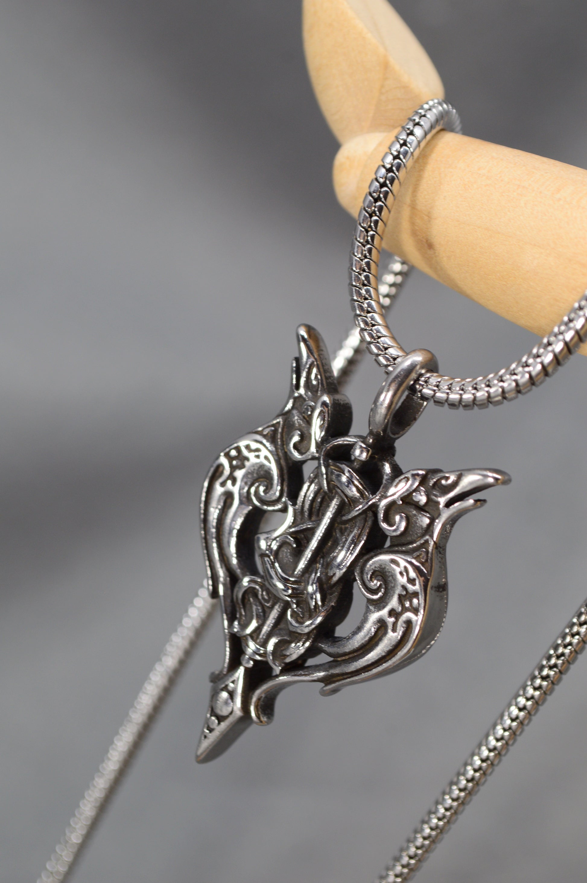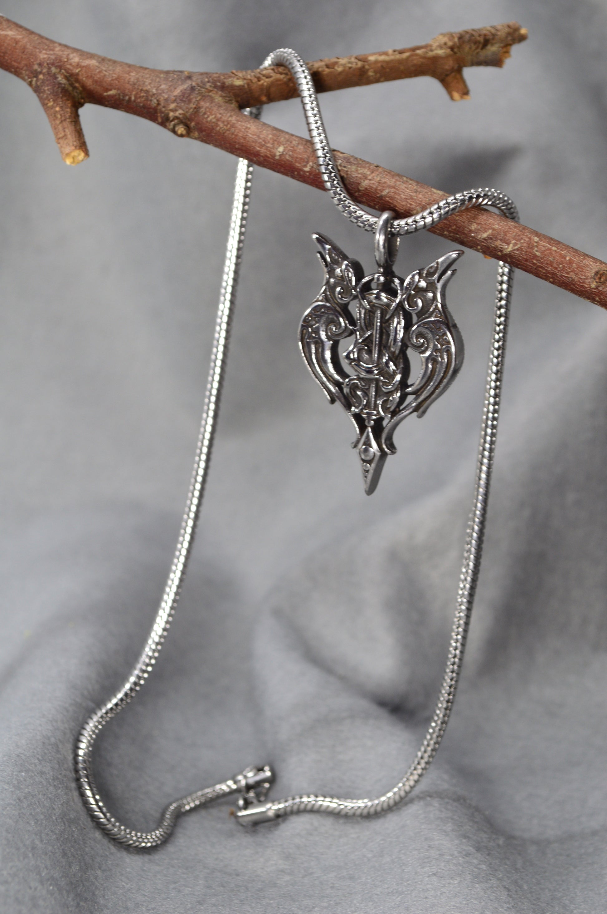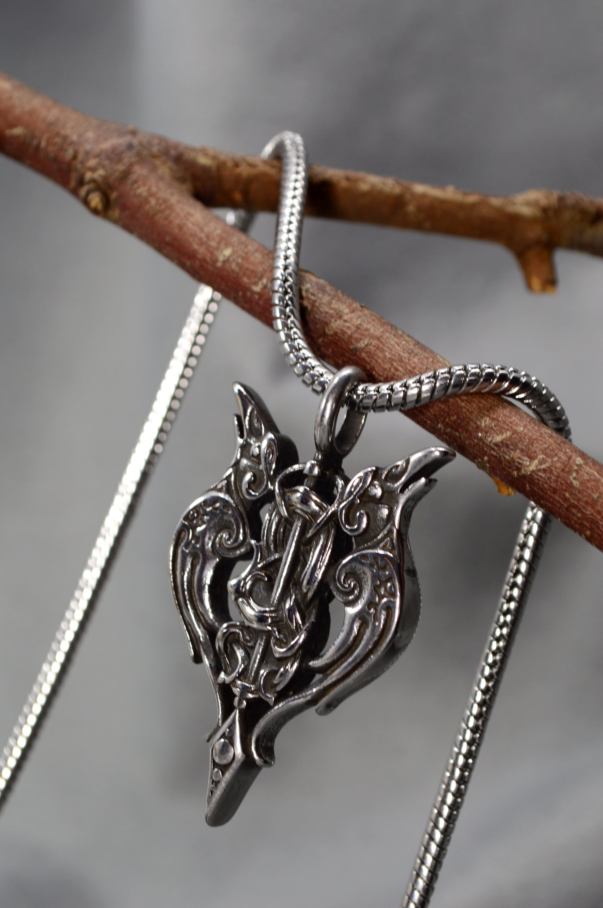 This statement pendant necklace features an intricate raven-inspired design with rich ornamental detailing and sculptural depth. The bold centerpiece creates a strong visual focus, combining flowing lines with sharp accents for a striking yet balanced look. Designed to stand out while remaining wearable, this necklace works beautifully with minimalist outfits, layered styling, and contemporary fashion. The detailed craftsmanship gives the piece a timeless, symbolic character, making it more than just an accessory. Ideal for those who appreciate expressive jewelry with personality, this necklace adds edge, meaning, and refinement to everyday and statement looks alike.