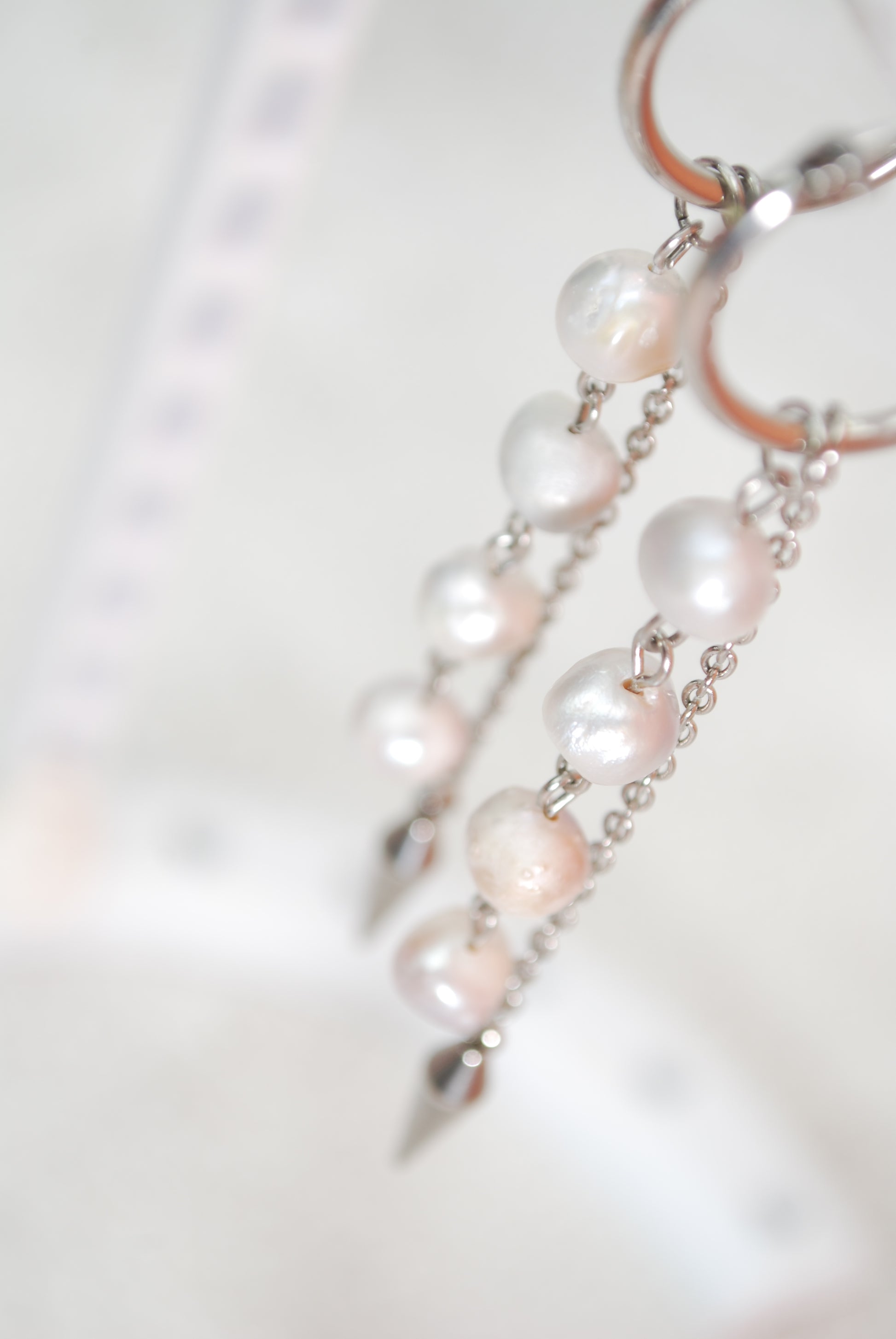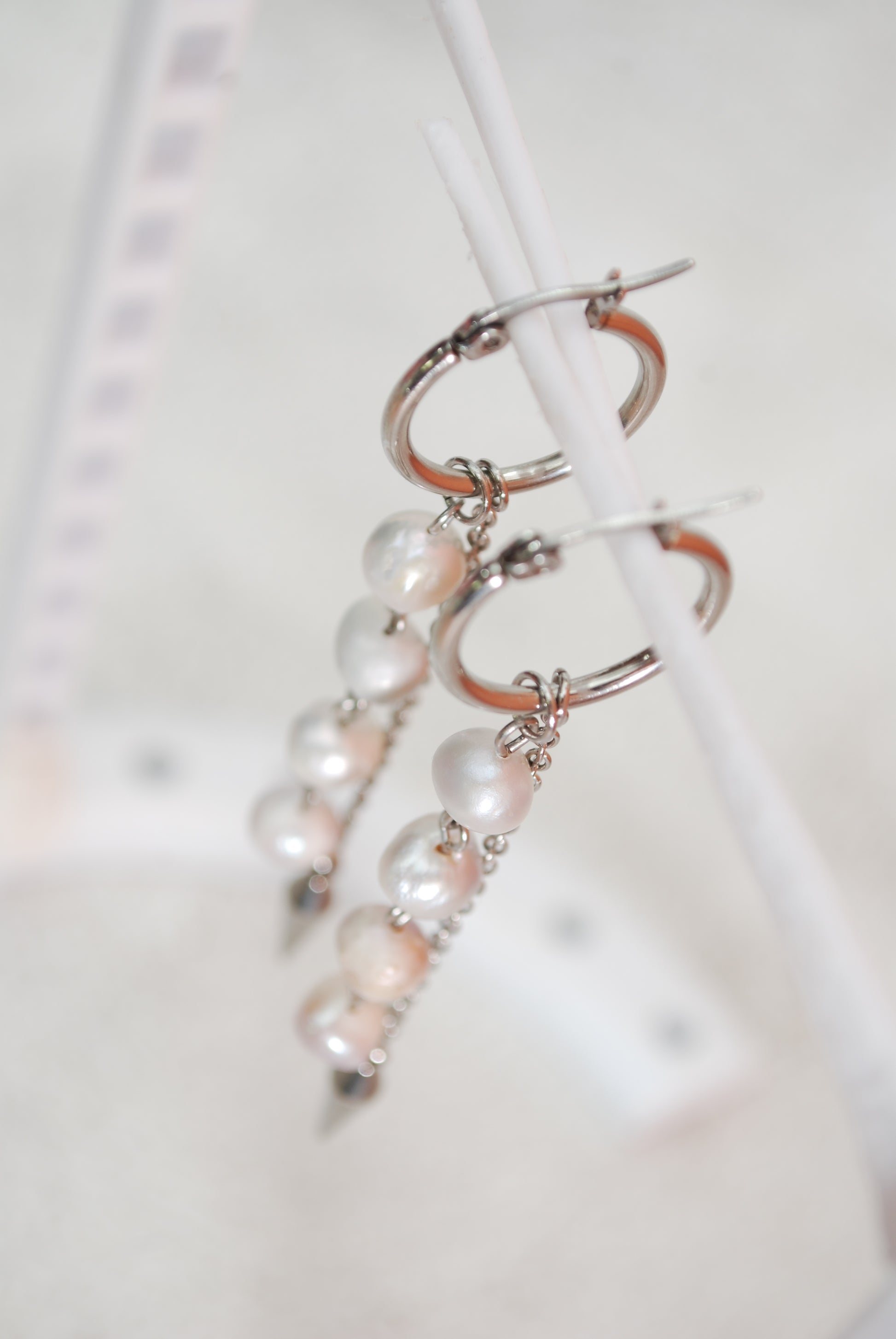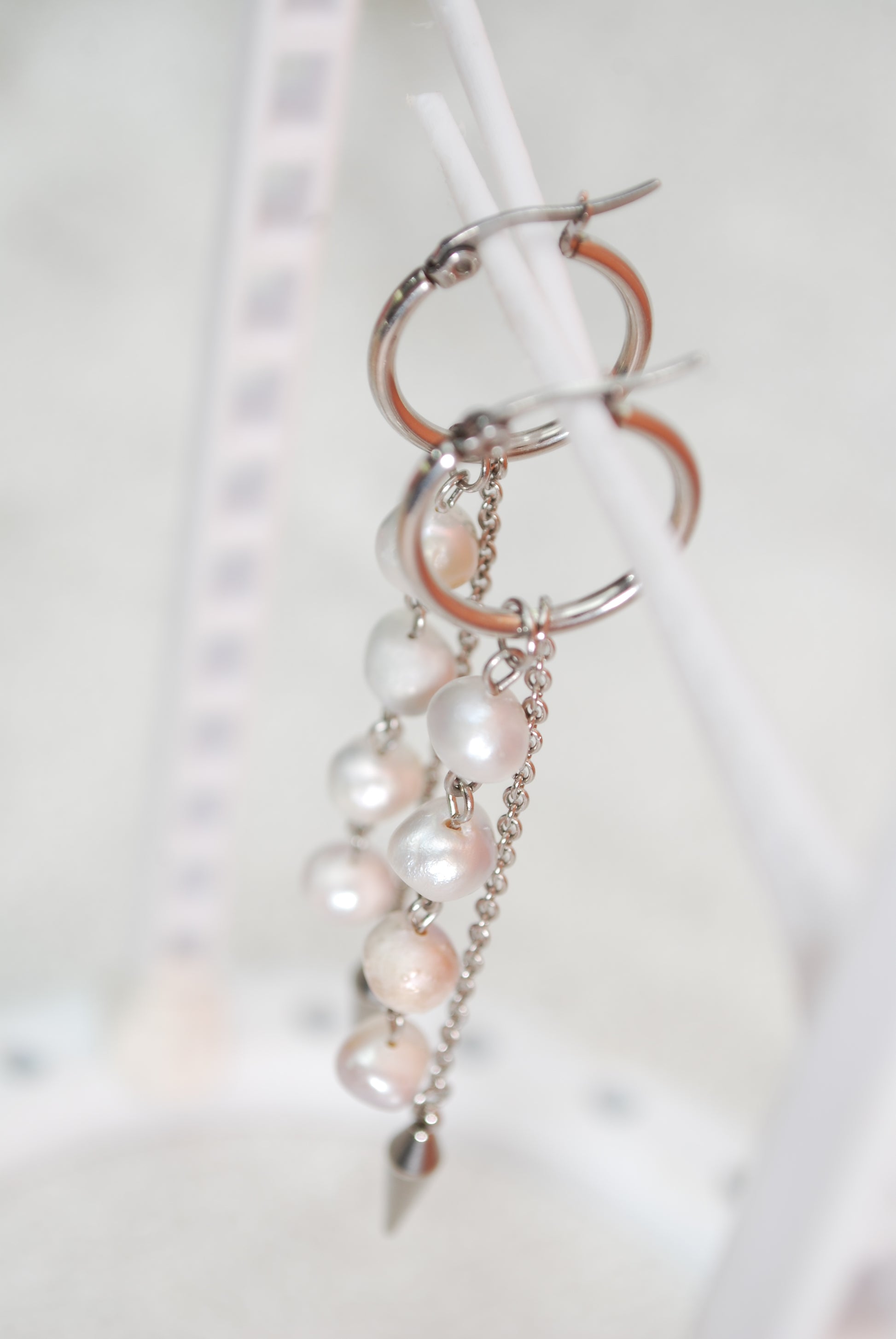 Make a graceful statement with these pearl drop hoop earrings, blending modern edge and timeless beauty. Featuring cascading natural freshwater pearls on delicate chains, these earrings bring effortless movement and light-catching shine to every outfit.
