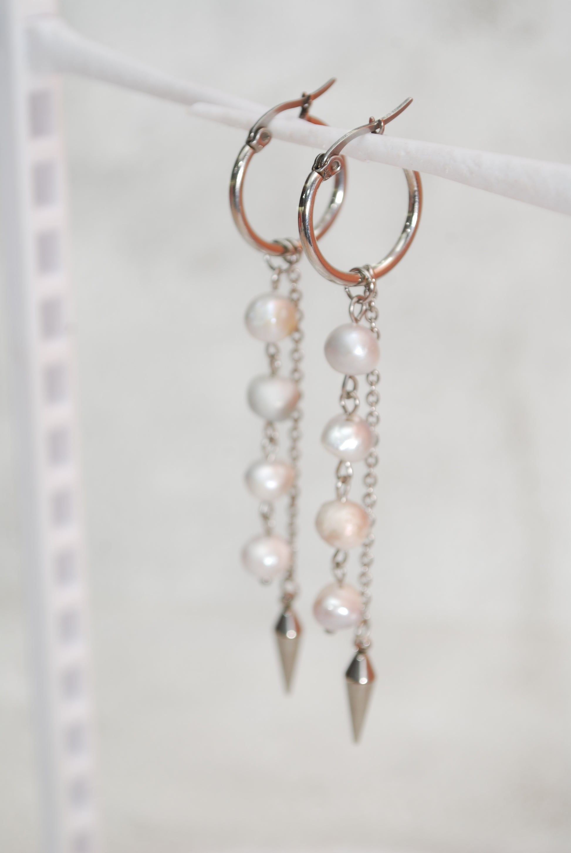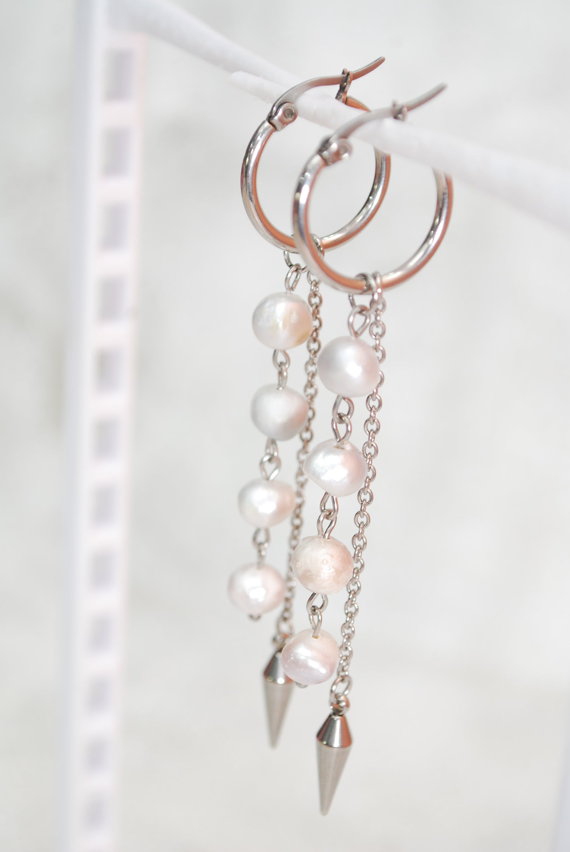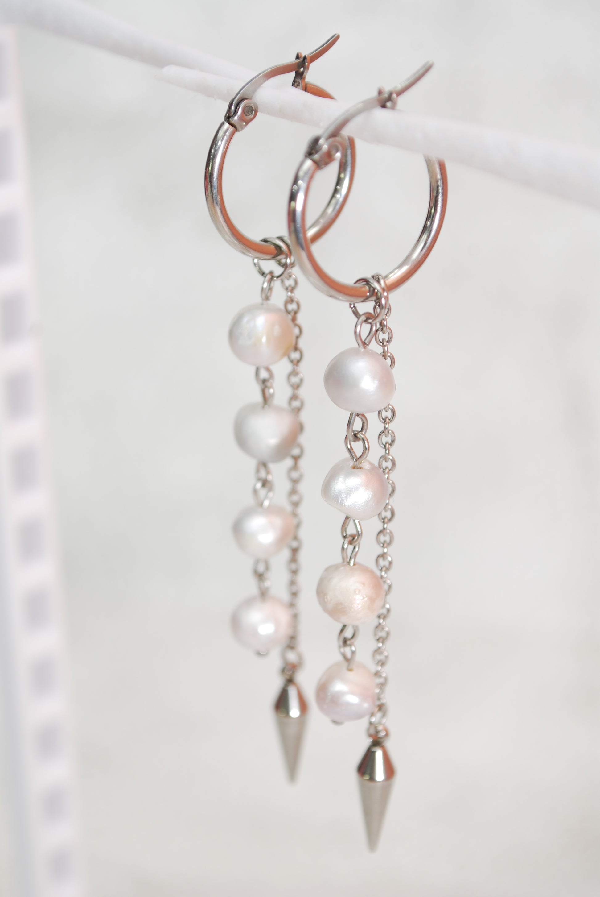 Make a graceful statement with these pearl drop hoop earrings, blending modern edge and timeless beauty. Featuring cascading natural freshwater pearls on delicate chains, these earrings bring effortless movement and light-catching shine to every outfit.