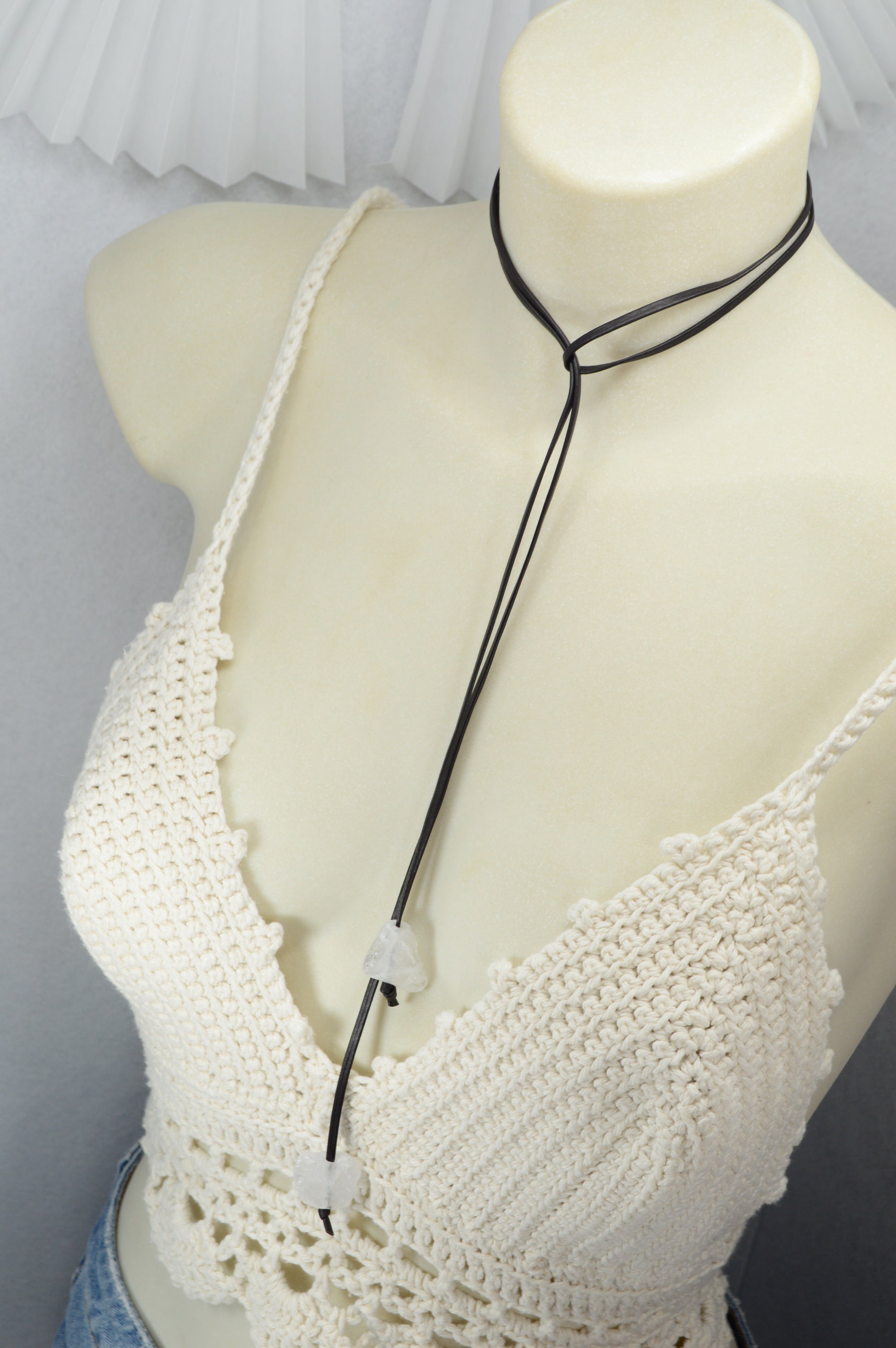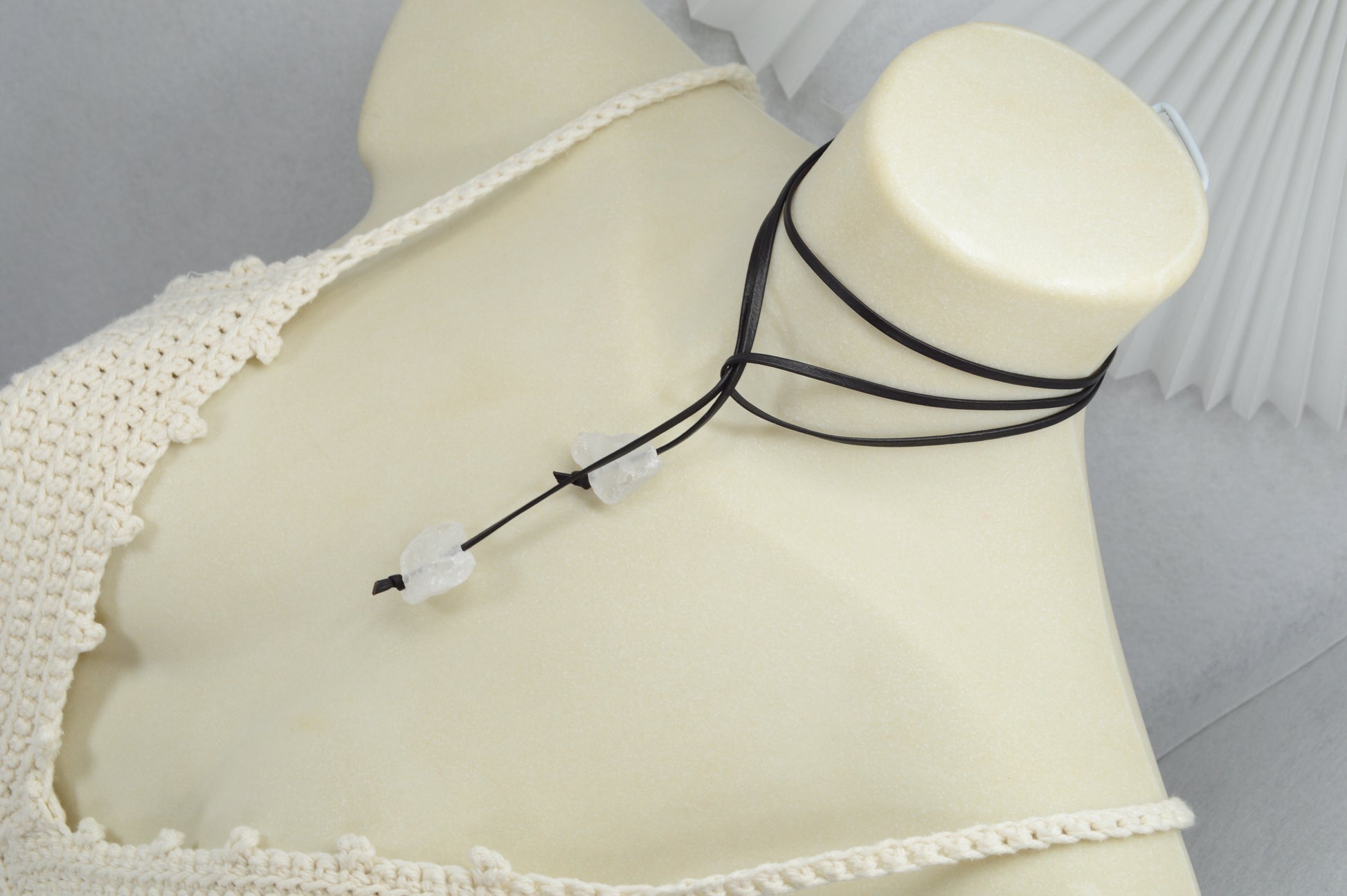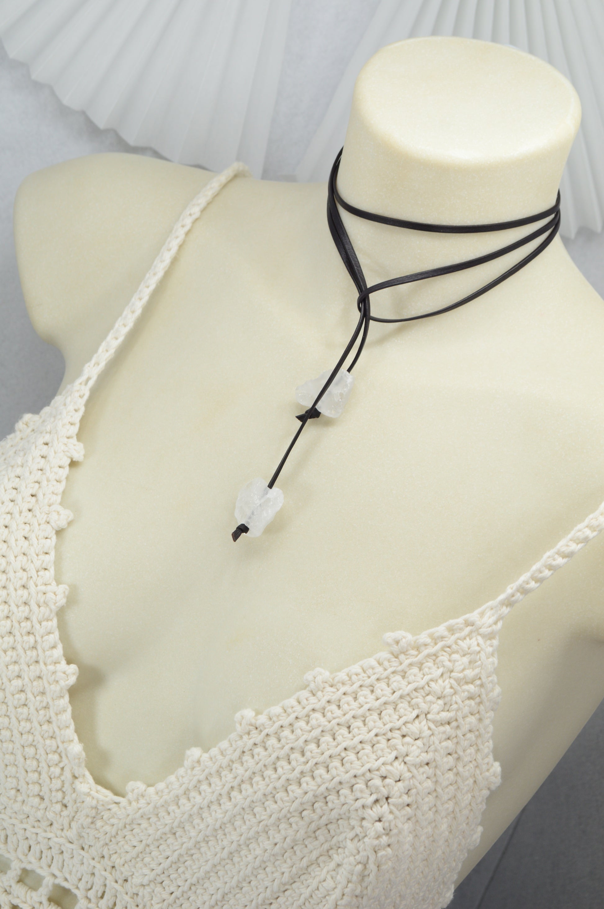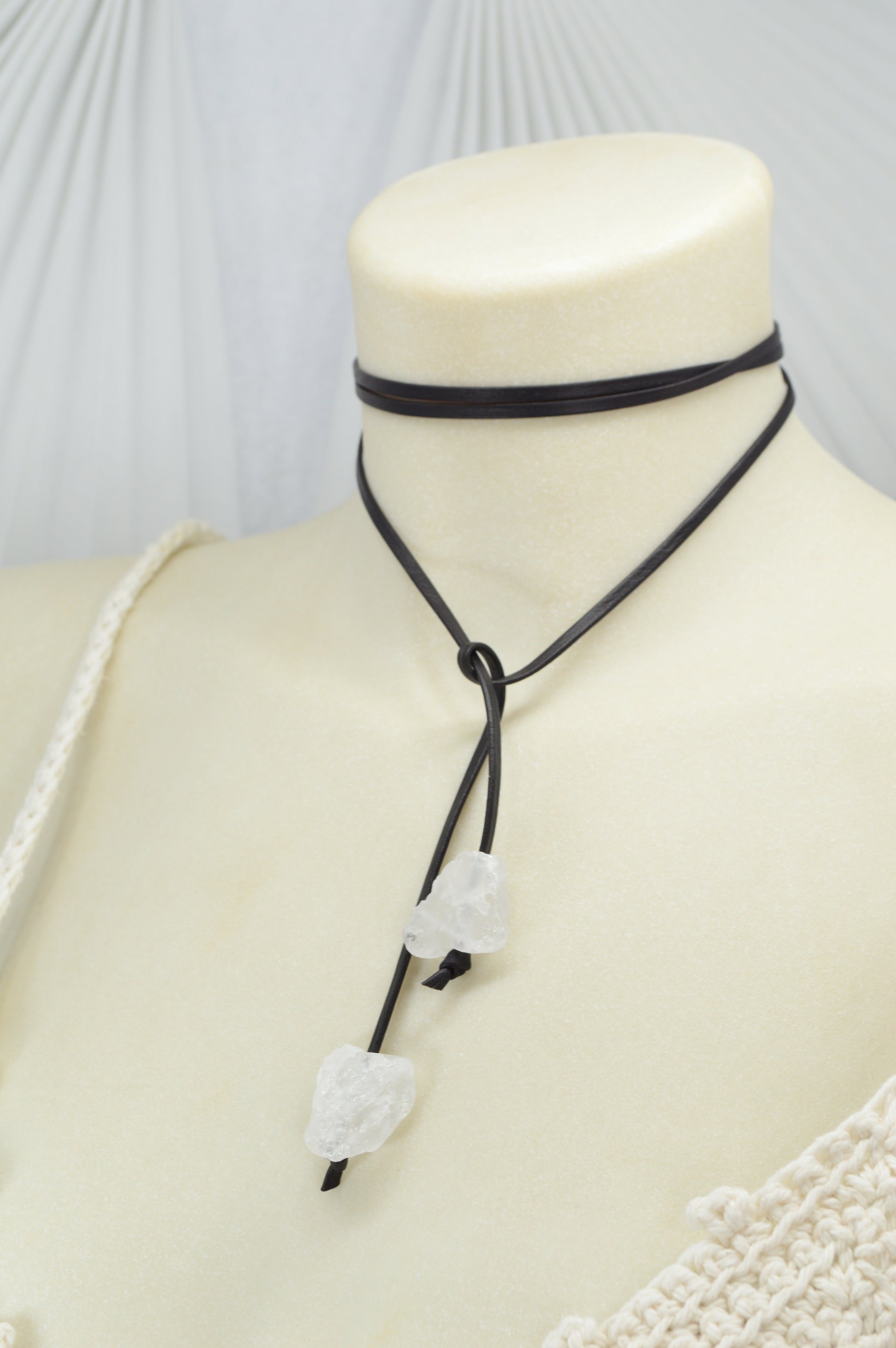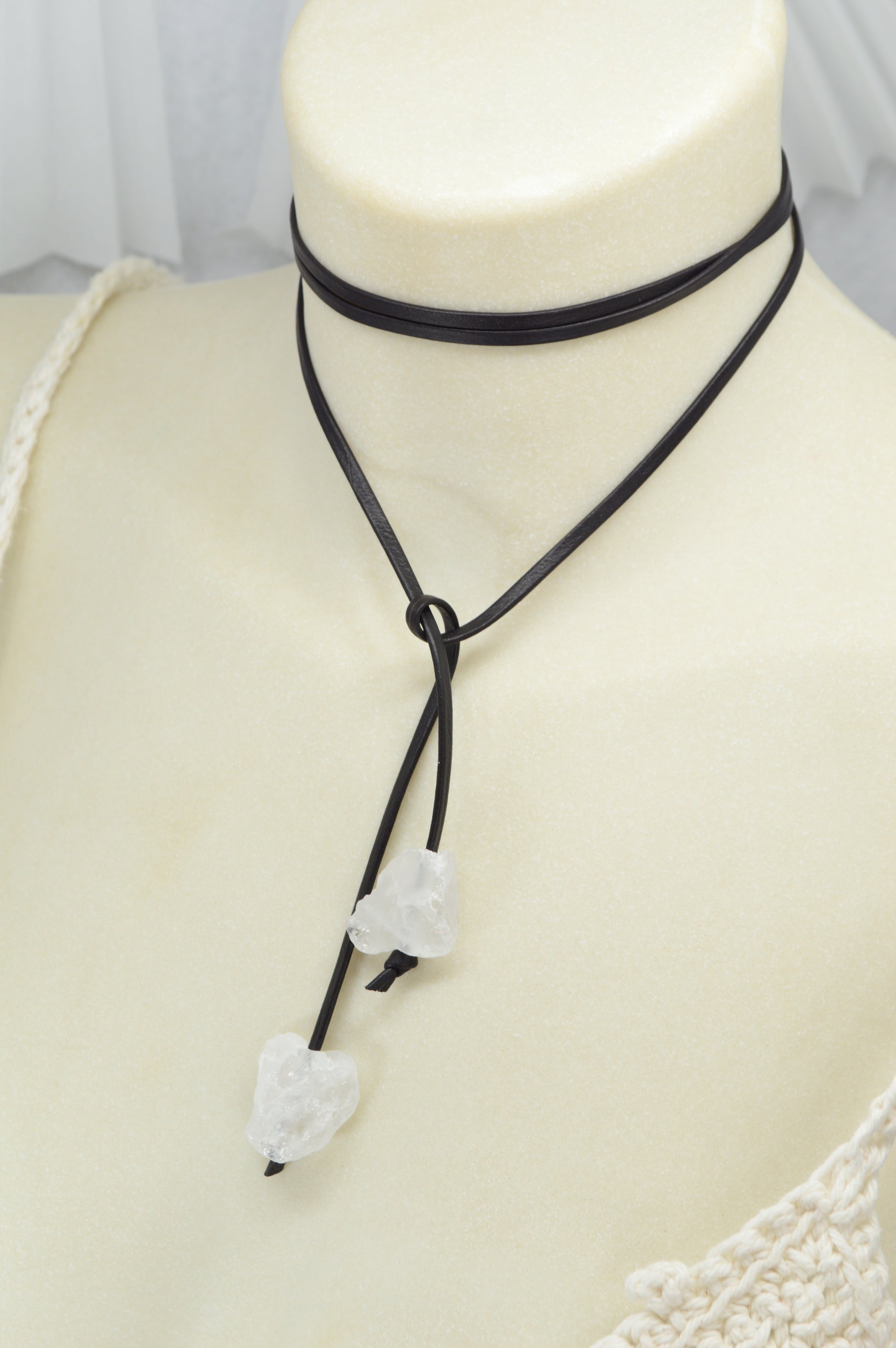 Dare to stand out with this Raw Quartz Crystal Choker Necklace – where raw earth energy meets modern fashion. Handcrafted with genuine natural quartz stones and a sleek black leather cord, this wrap necklace is not just jewelry – it’s a statement.