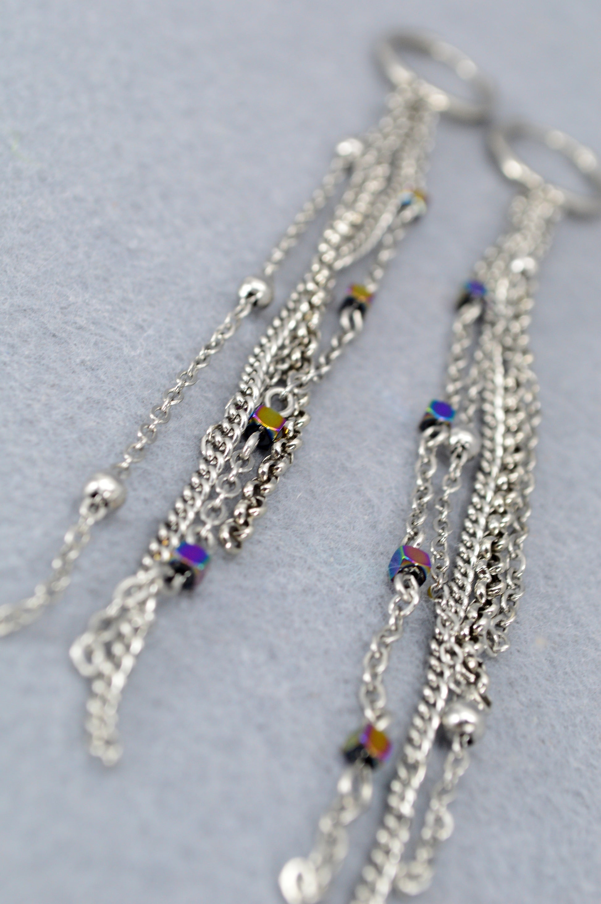 Silver Rainbow Chain Drop Earrings β 12 cm / 5" Statement Earrings