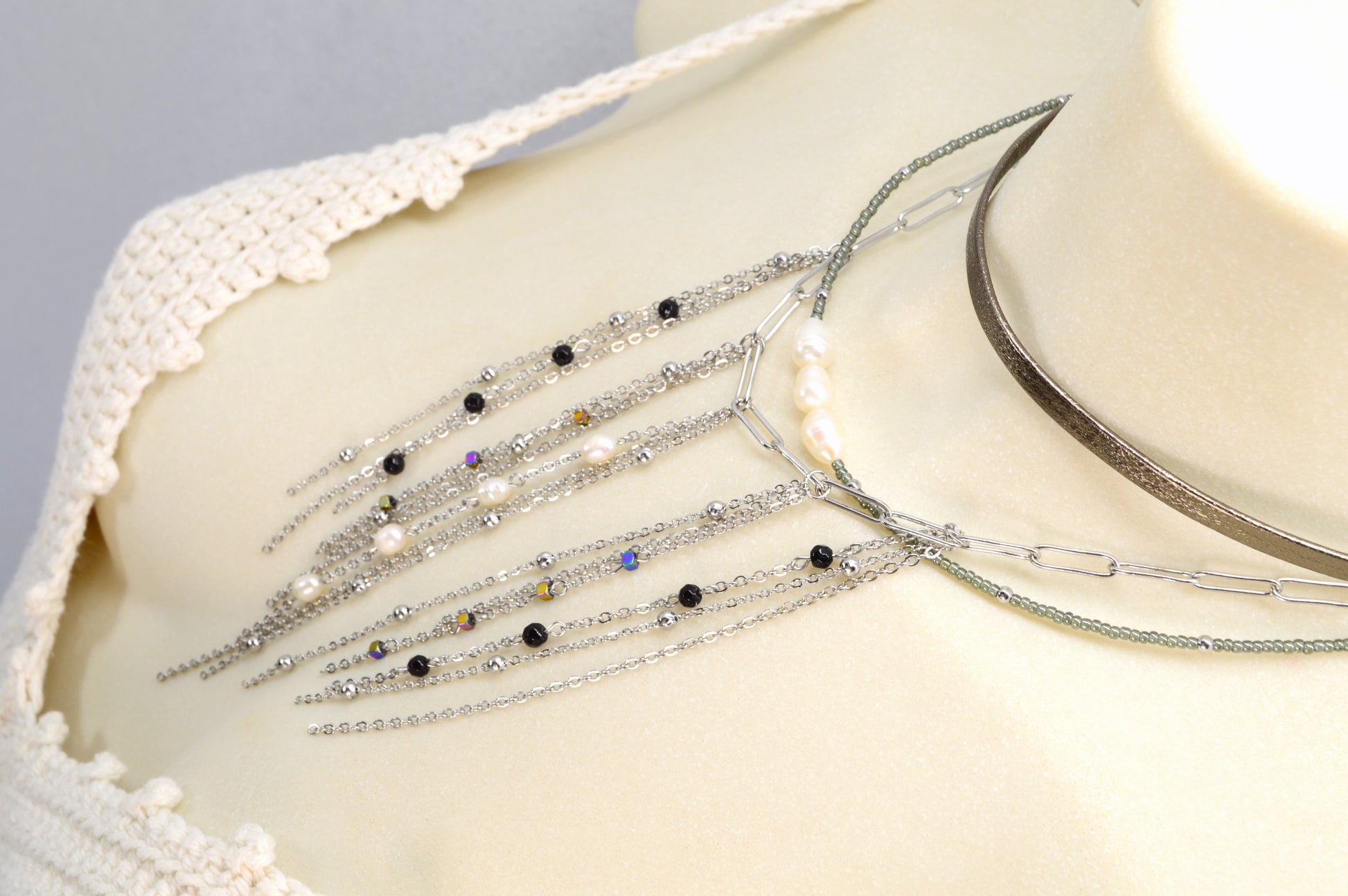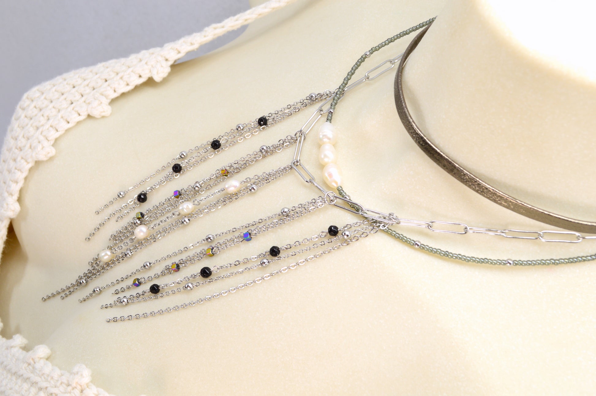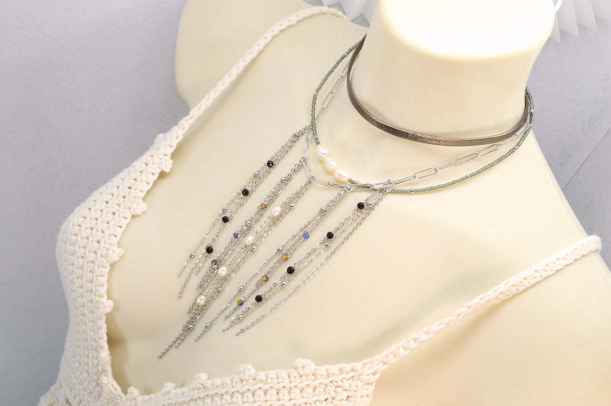 Statement Layered Fringe Necklace – Stainless Steel, Pearls & Gemstones | Fall 2025 Must-Have