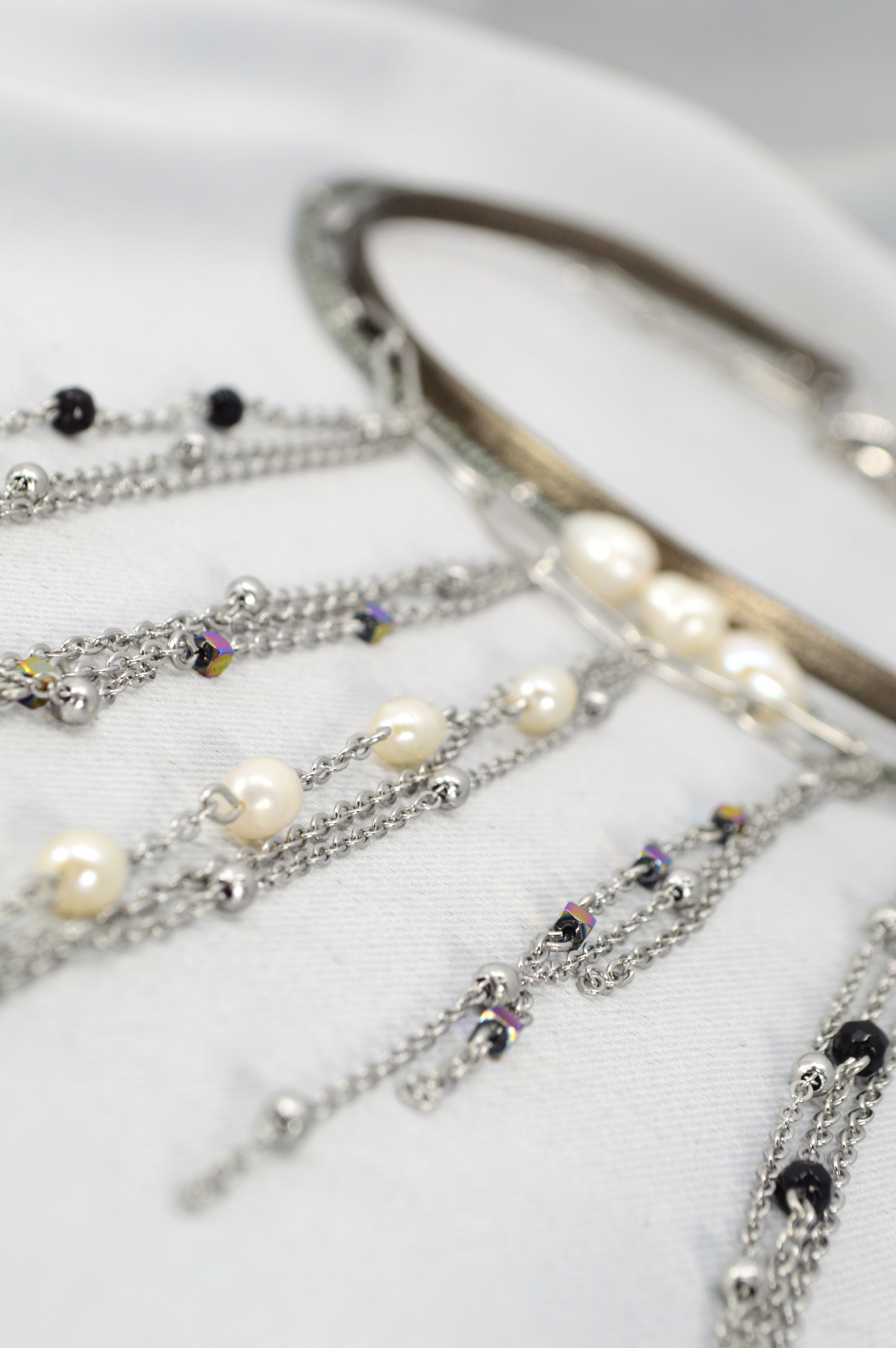 Freshwater pearls & onyx beads – elegant yet fierce, a mix of soft femininity and rock-chic vibes.