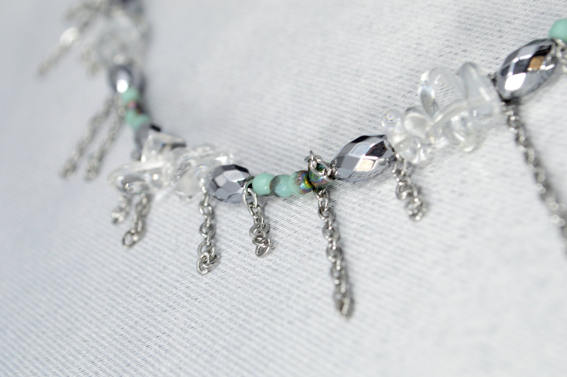 Trendy Mixed Stone & Glass Choker with Stainless Steel Chains